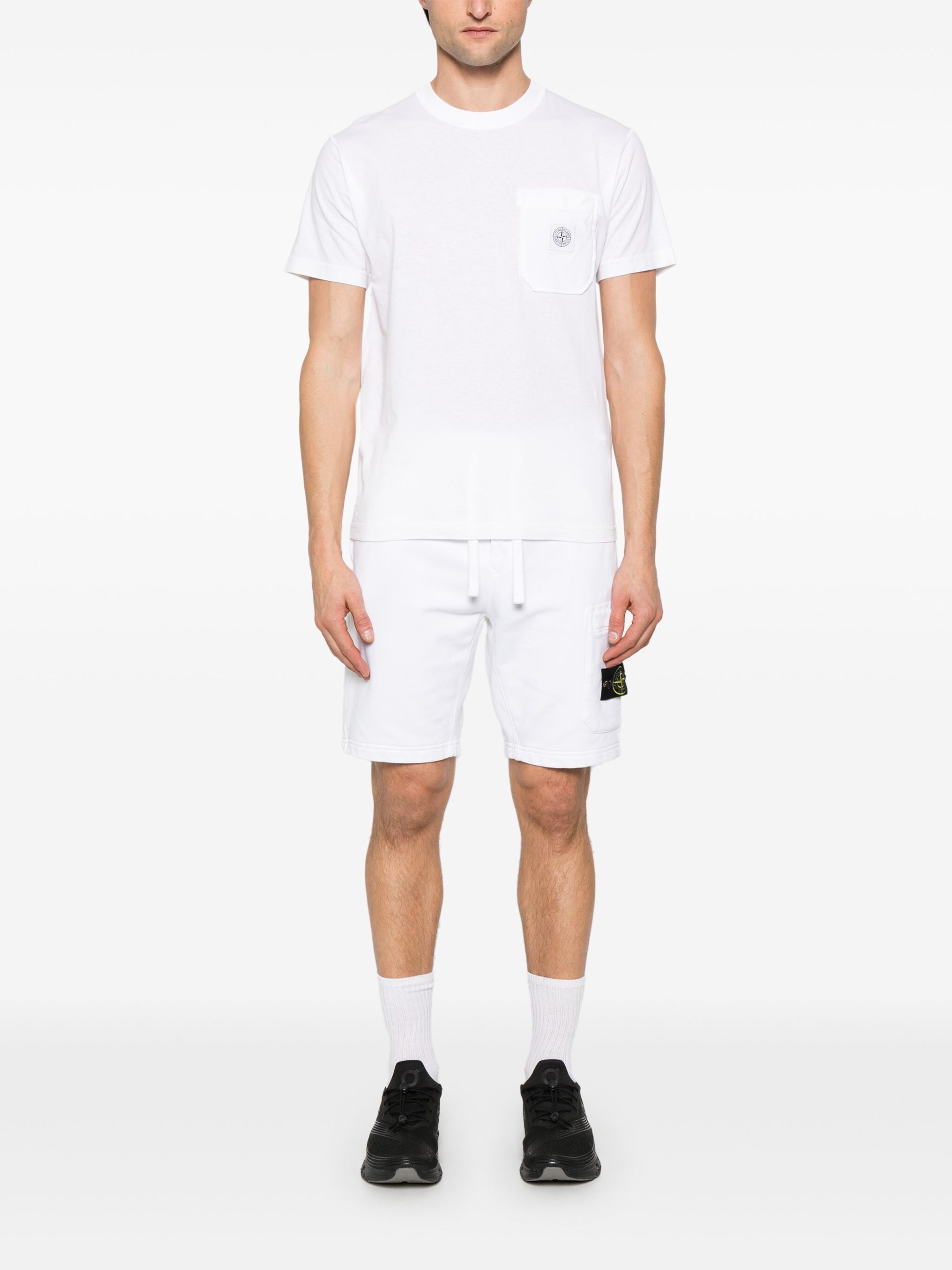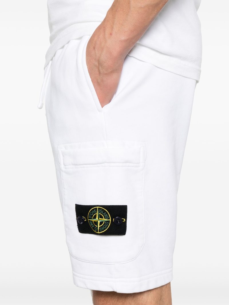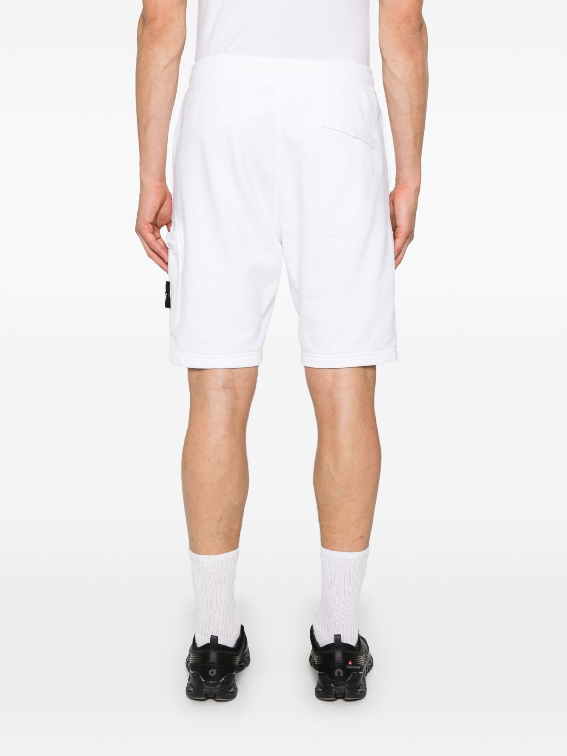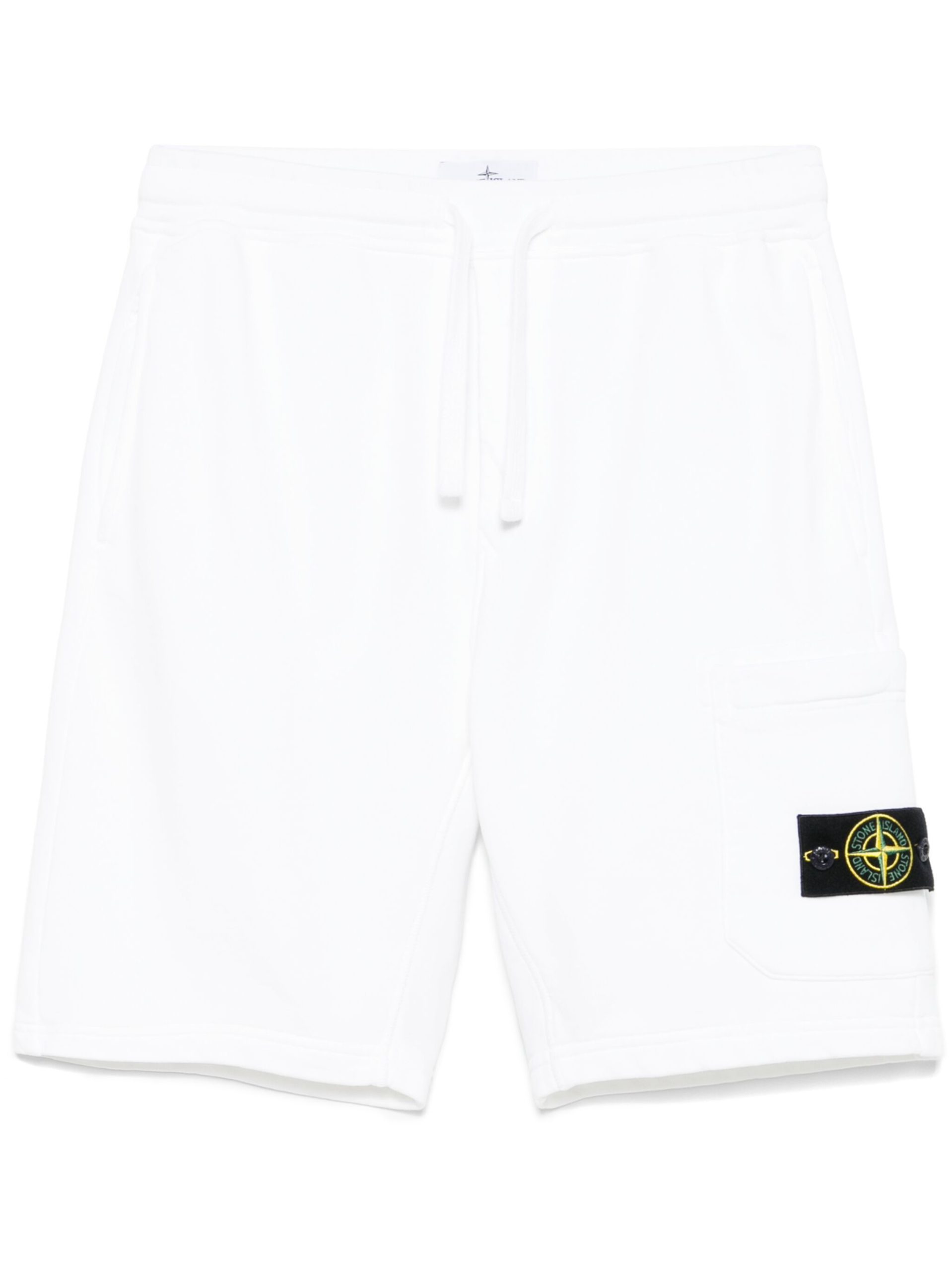 Pantaloni scurti Stone Island albi din bumbac, inchidere cu snur, buzunar lateral, logo cusut pe partea laterala si tiv drept.100% bumbac
