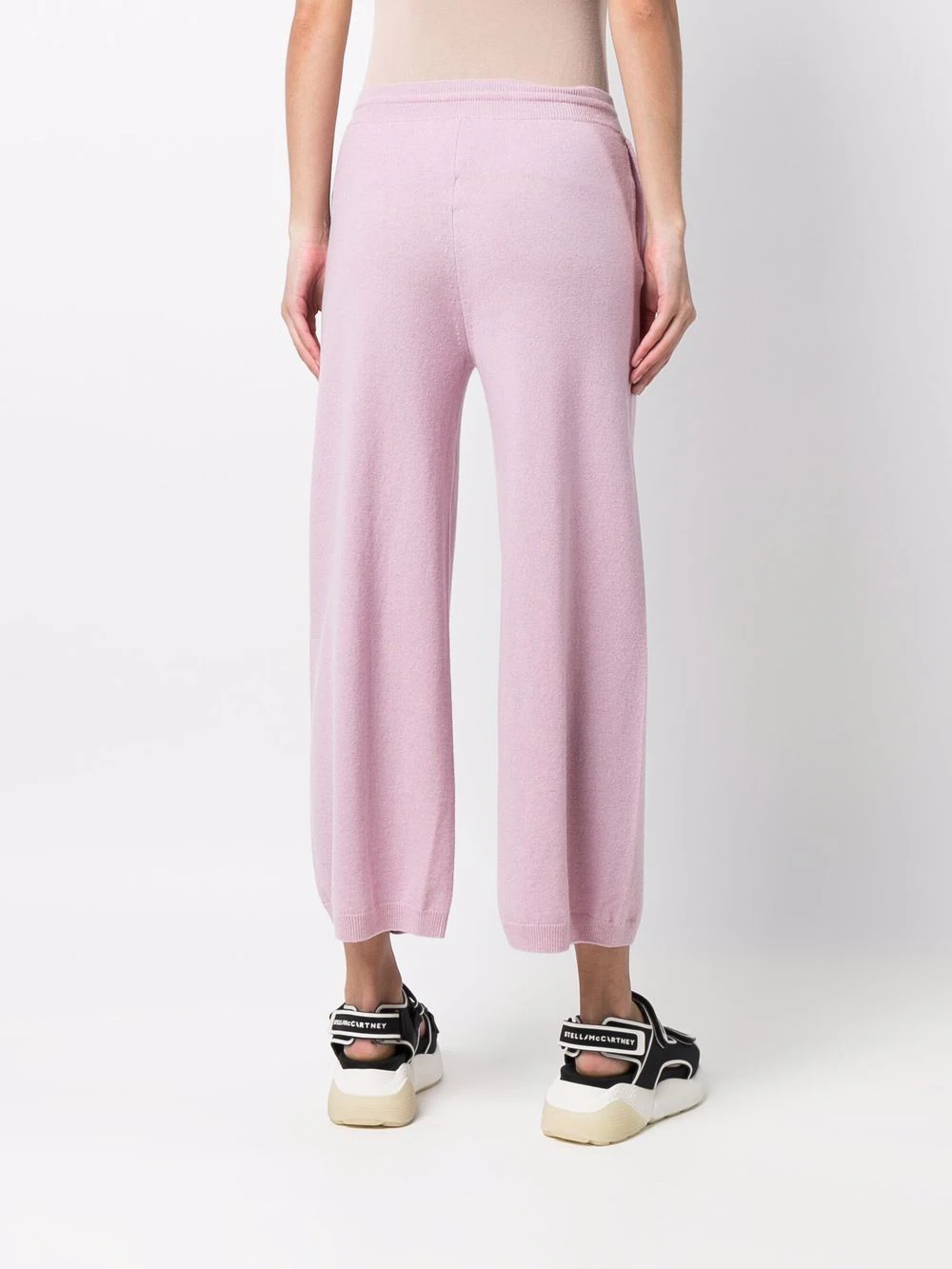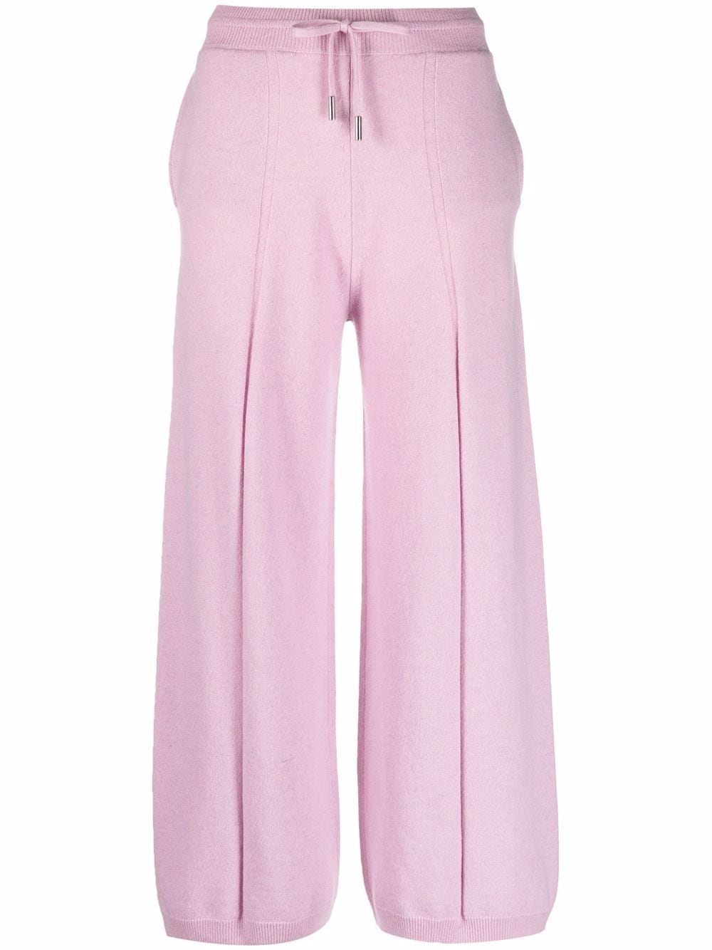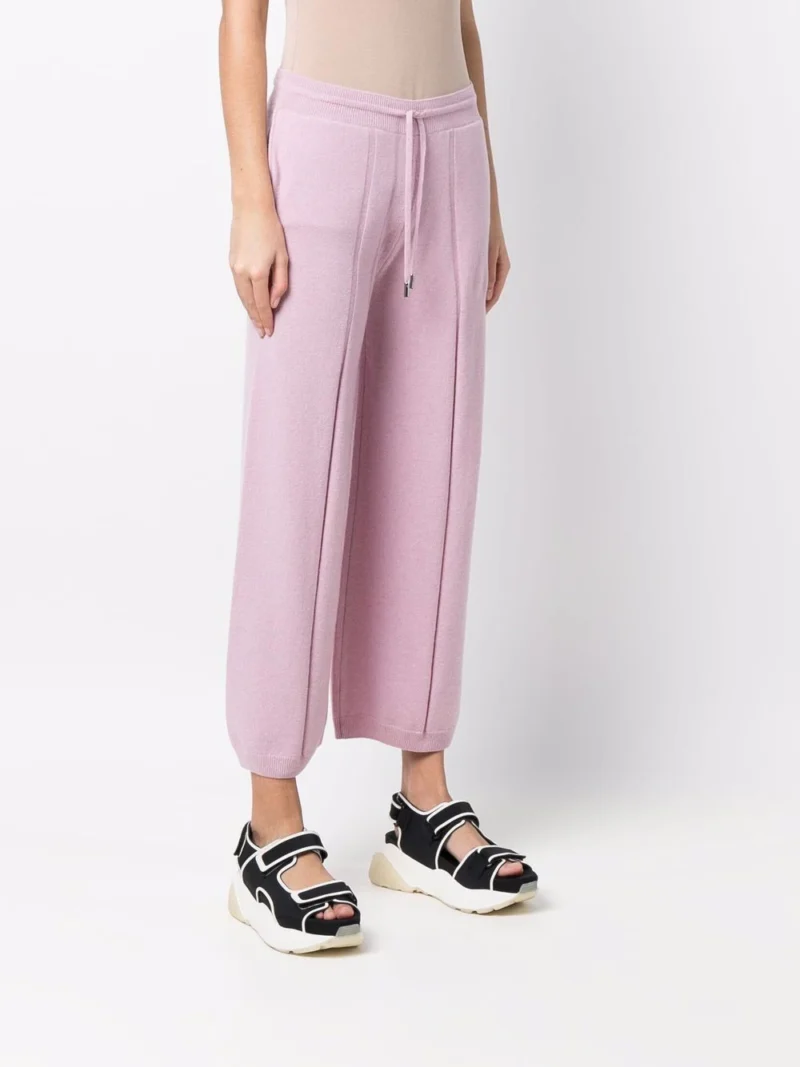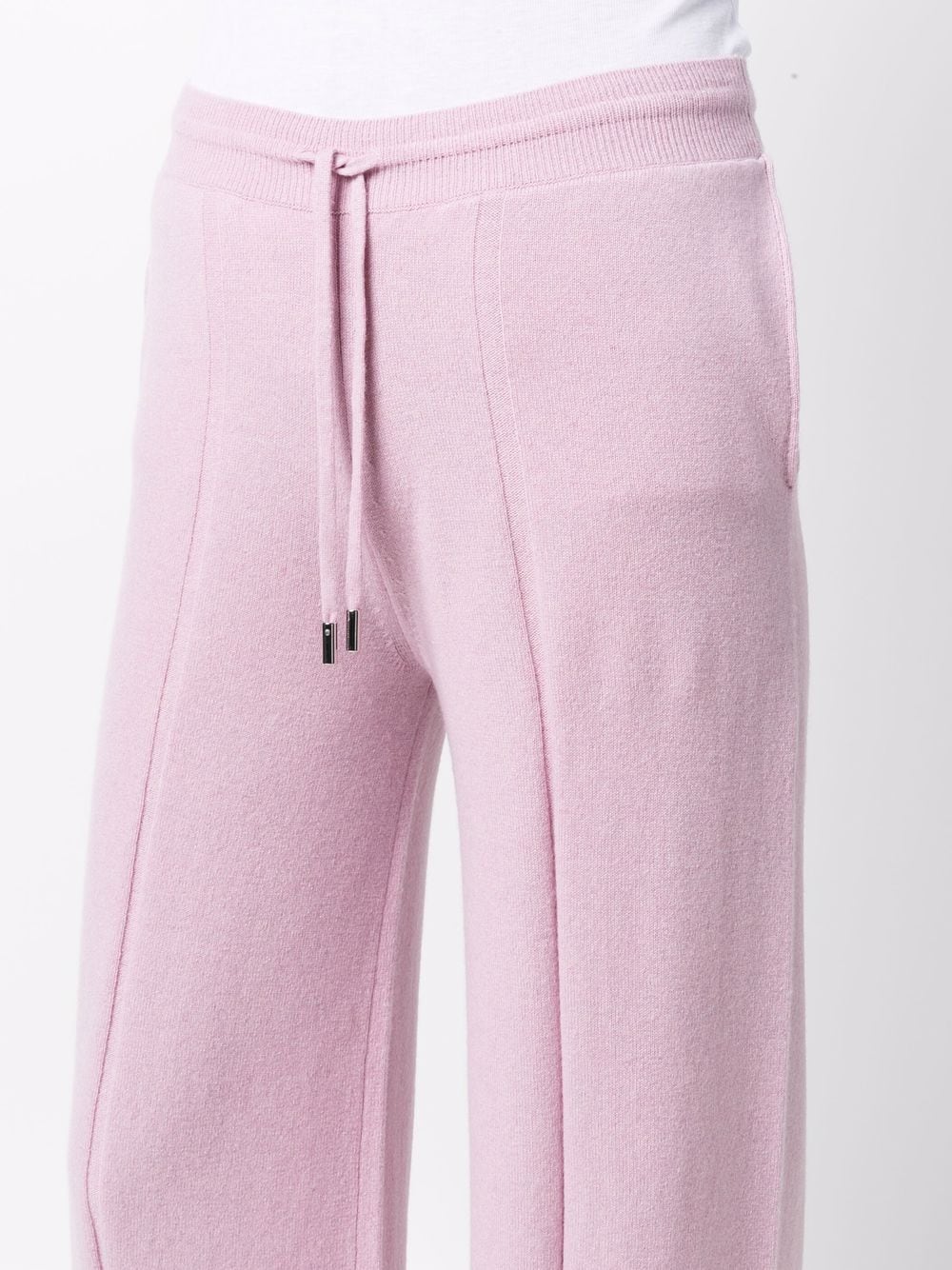 Pantaloni roz din casmir si lana, cu inchidere banda elastica si snur, dunga verticala, croi relaxat si tiv drept. Potriviti pentru sezonul primavara/vara. 75% casmir; 25% lana.
