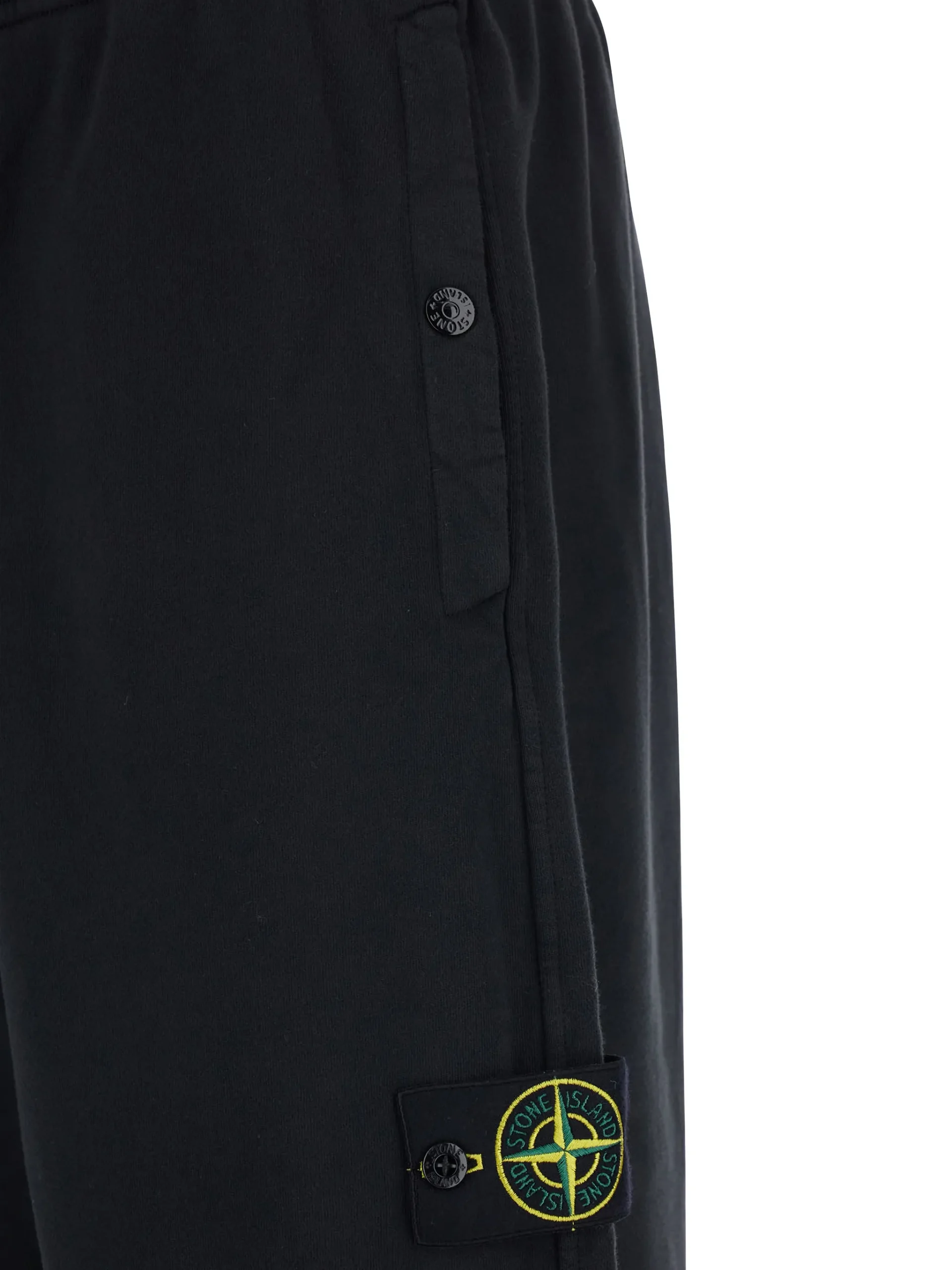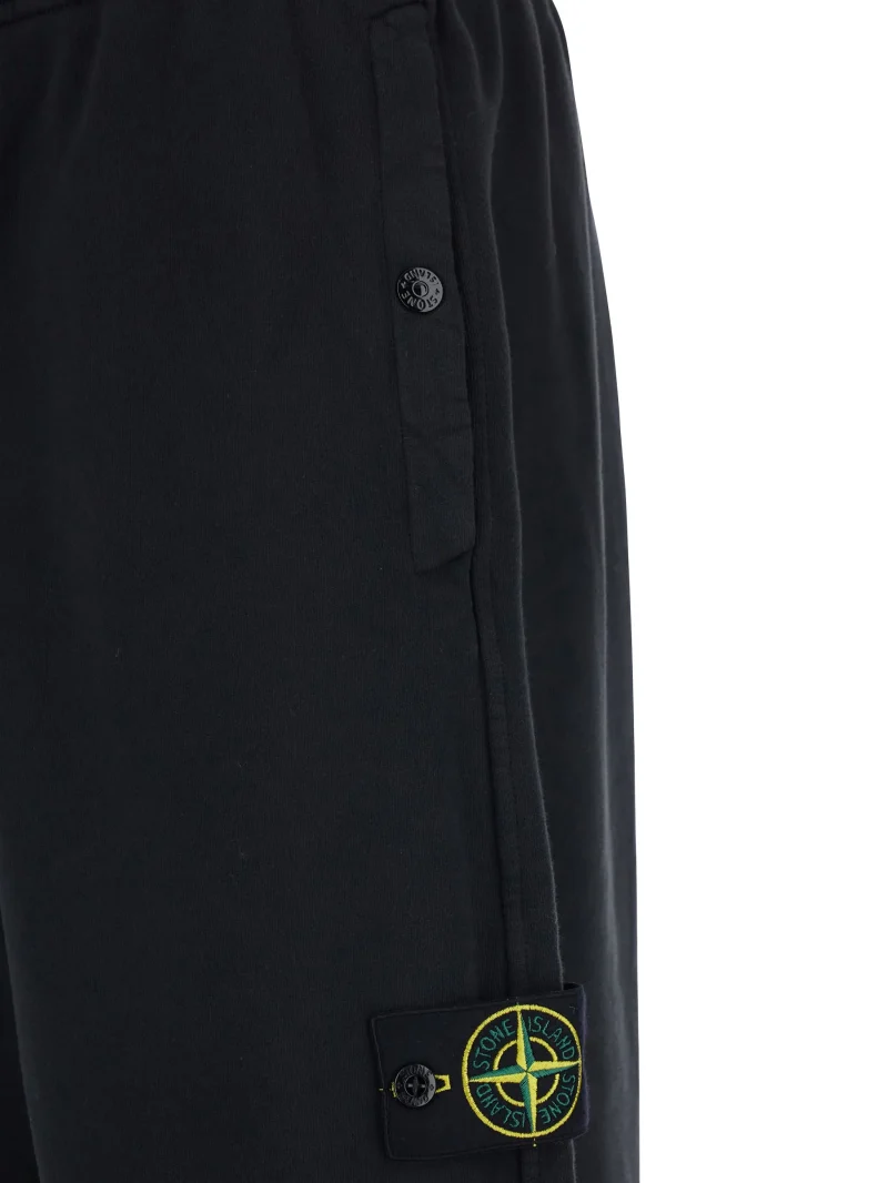 Pantaloni Stone Island Badge Detail Track negru, sport, cu talie elastica, buzunare laterale, buzunar aplicat la spate, logo Compass Badge aplicat si tiv elastic drept. Potriviti pentru sezonul primavara/vara. 100% bumbac.