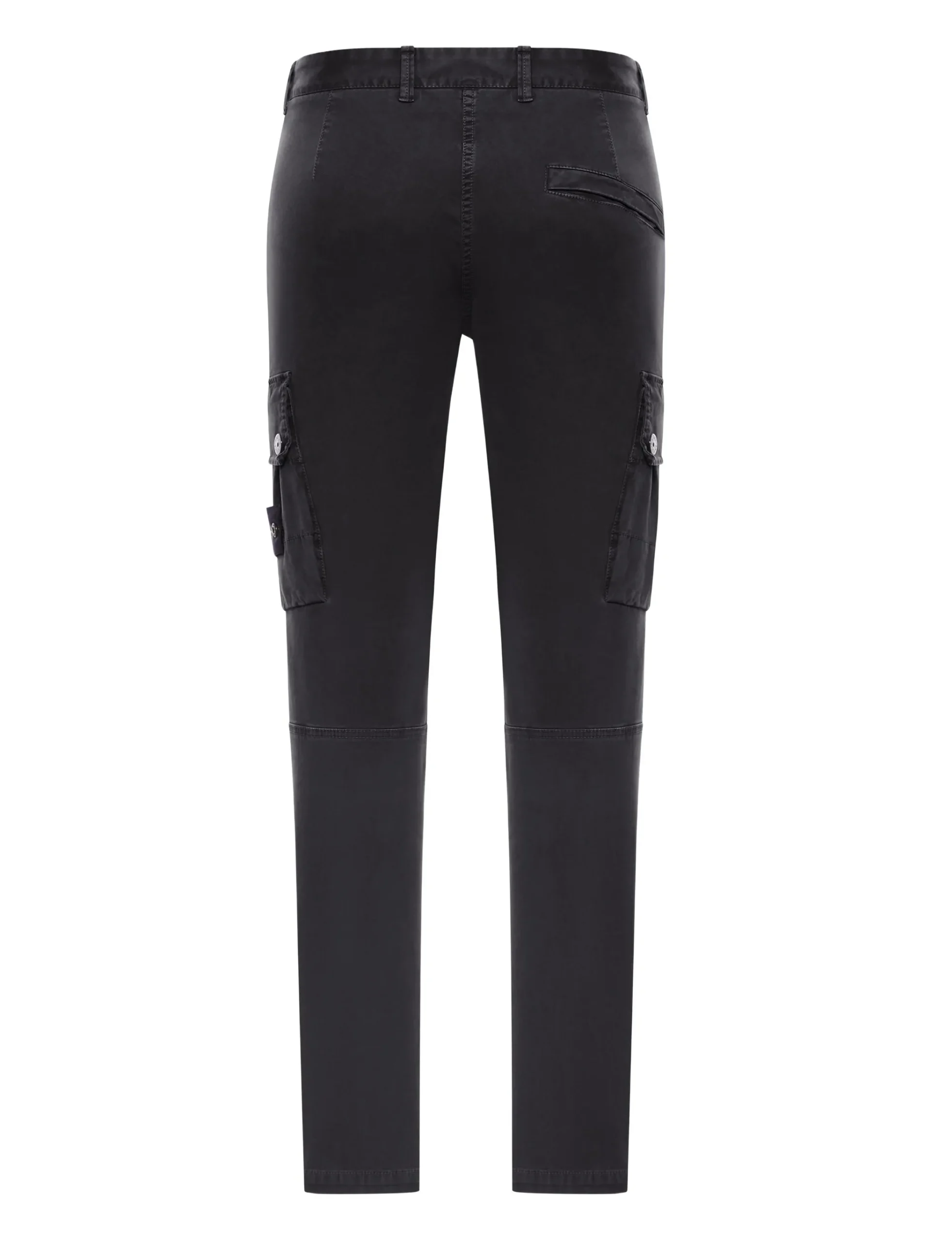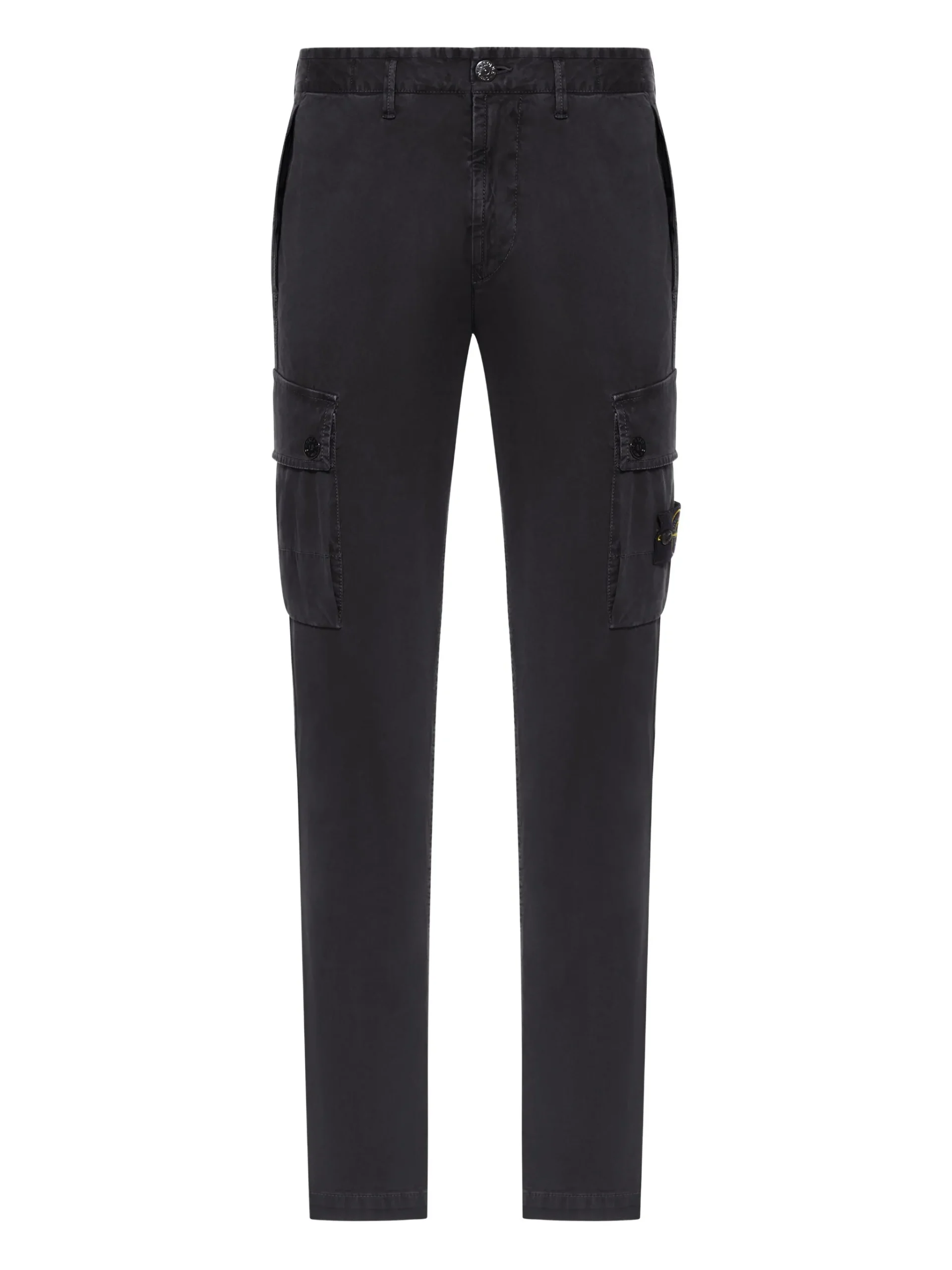 Pantaloni Stone Island cargo-pocket negru, buzunare cargo, inchidere cu nasturi, logo Stone Island pe un buzunar. 97% bumbac 3% elastan