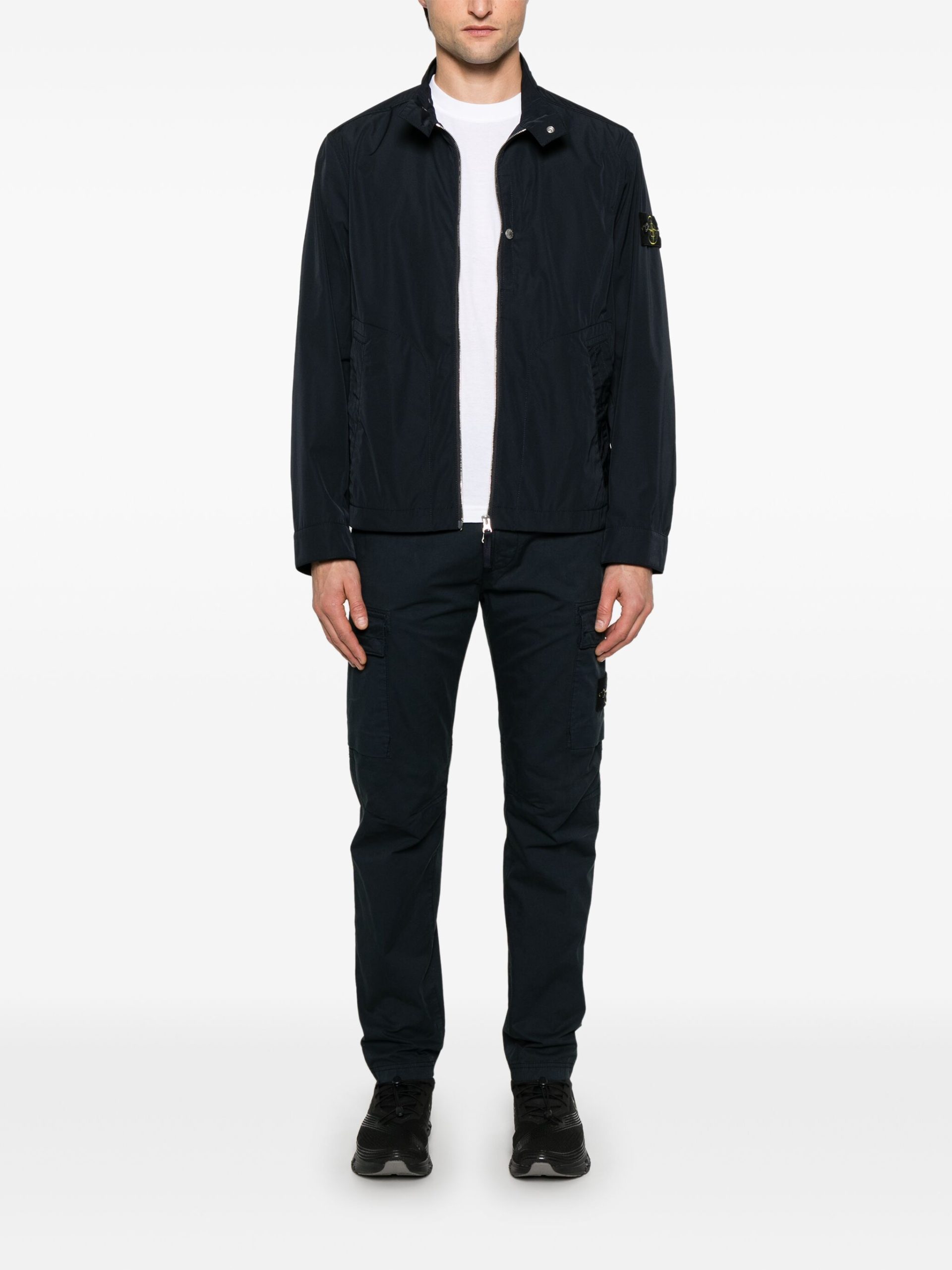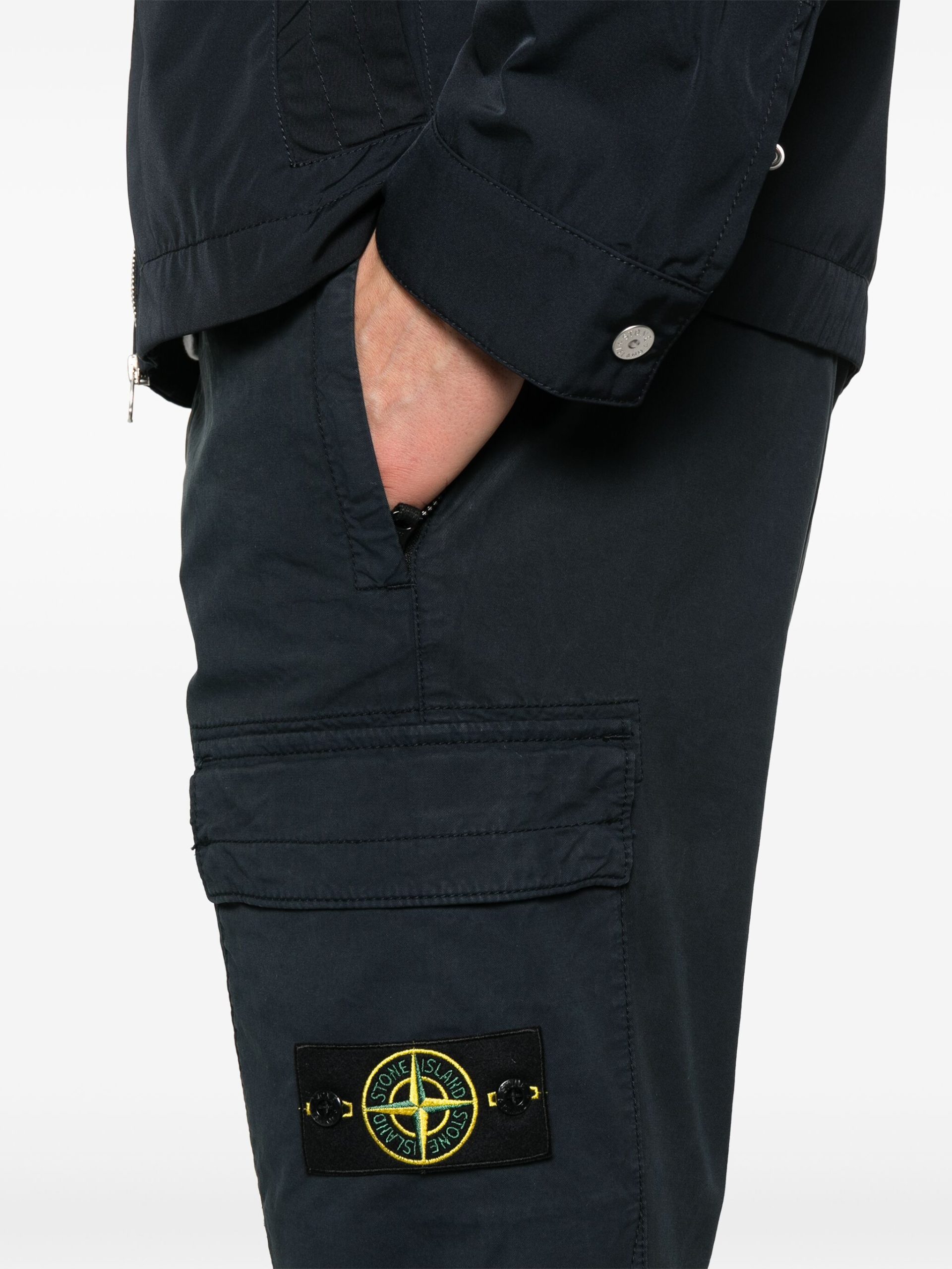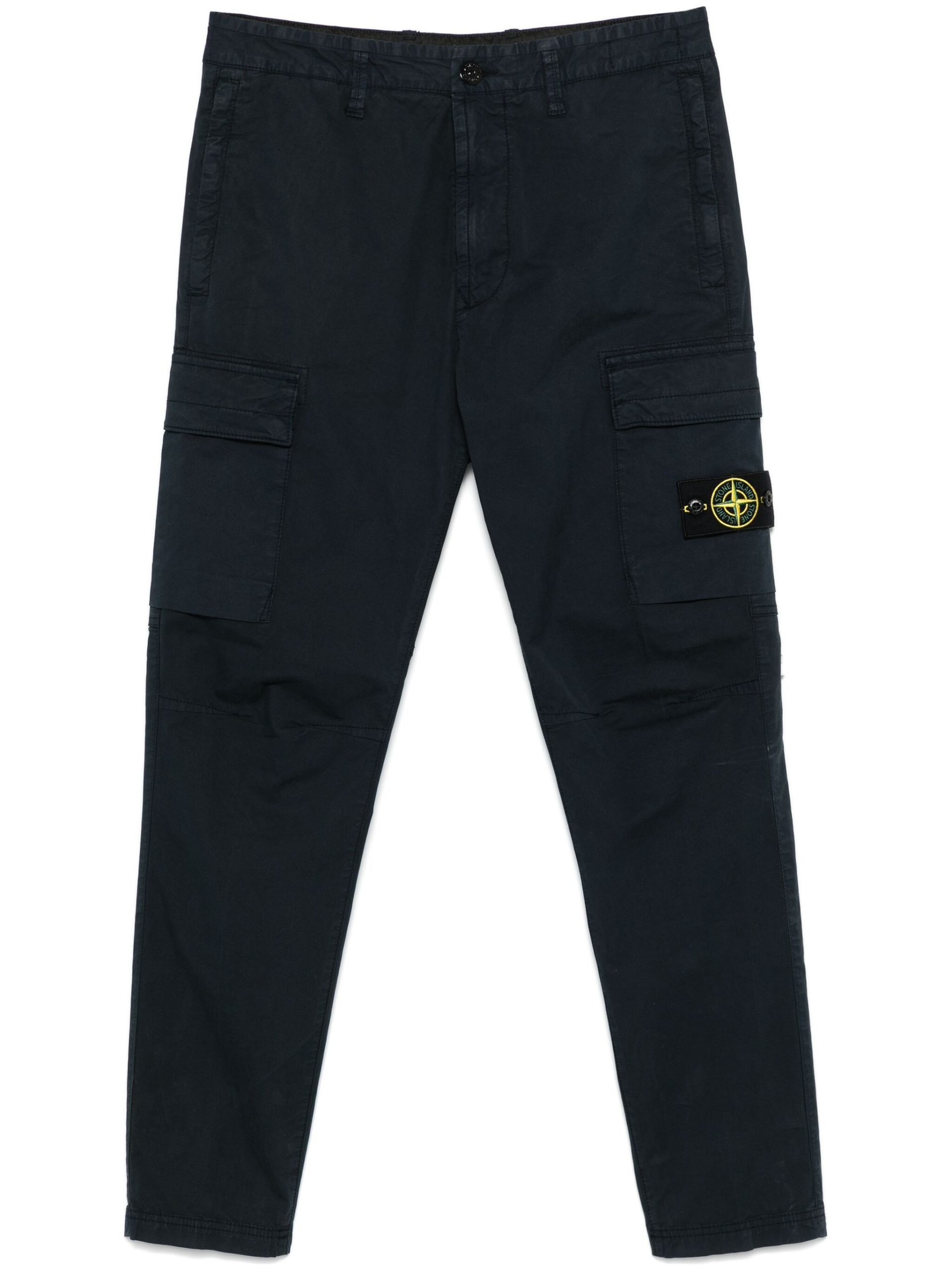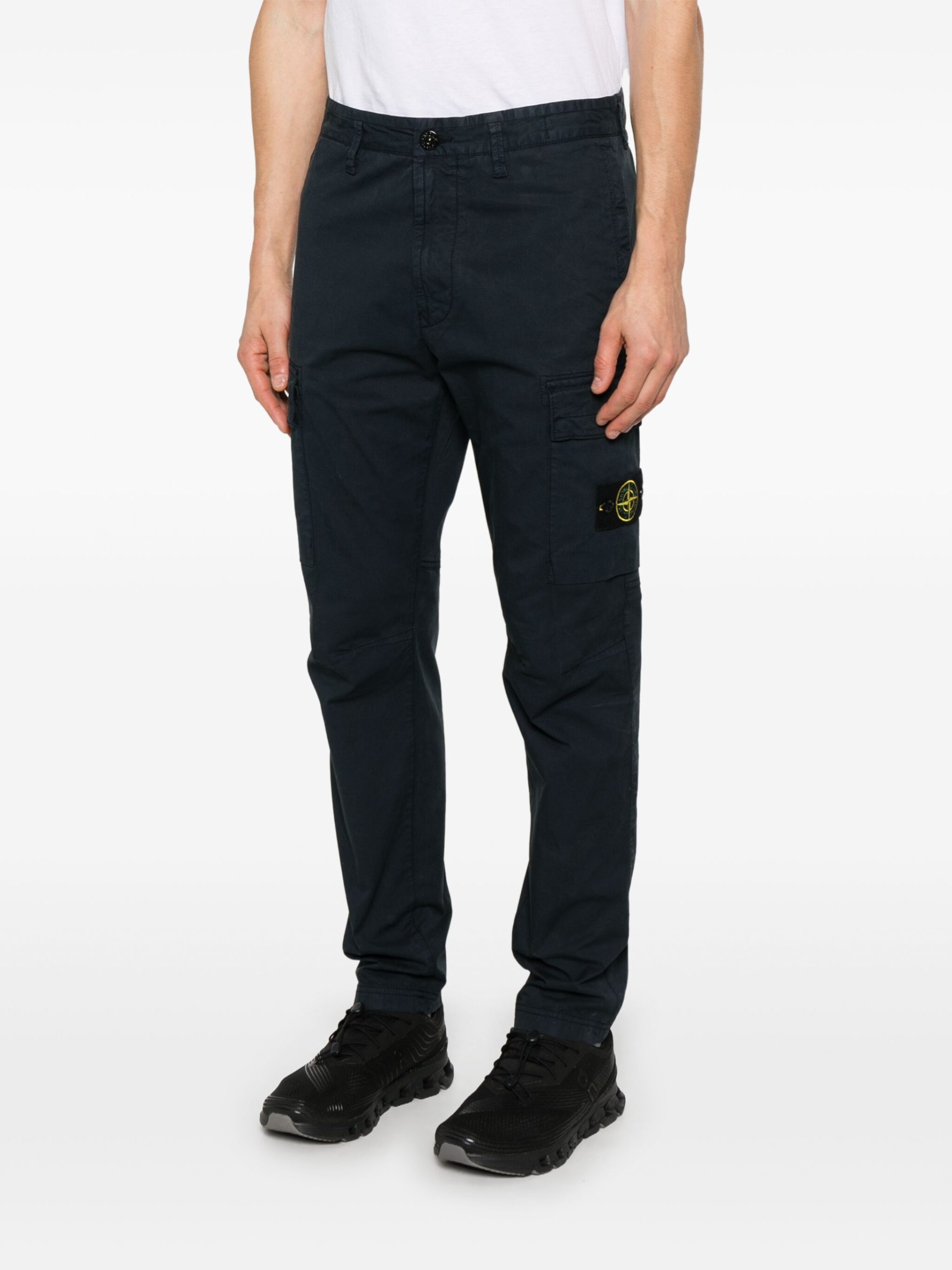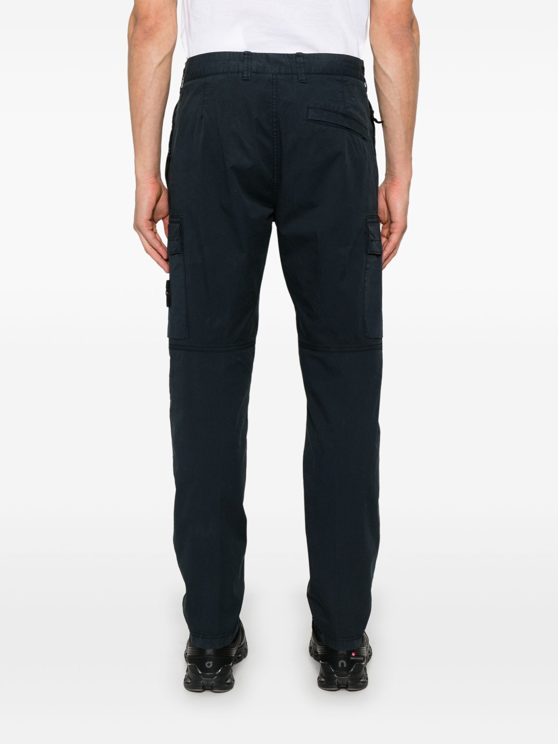 Pantaloni Stone Island Compass-badge negri, din bumbac, cu inchidere nasture si fermoar, buzunare laterale, buzunare tip cargo, buzunar tip welt la spate, eticheta Compass Badge detasabila, croiala conica si tiv drept. Potriviti pentru sezonul toamna/iarna. 97% bumbac 3% elastan