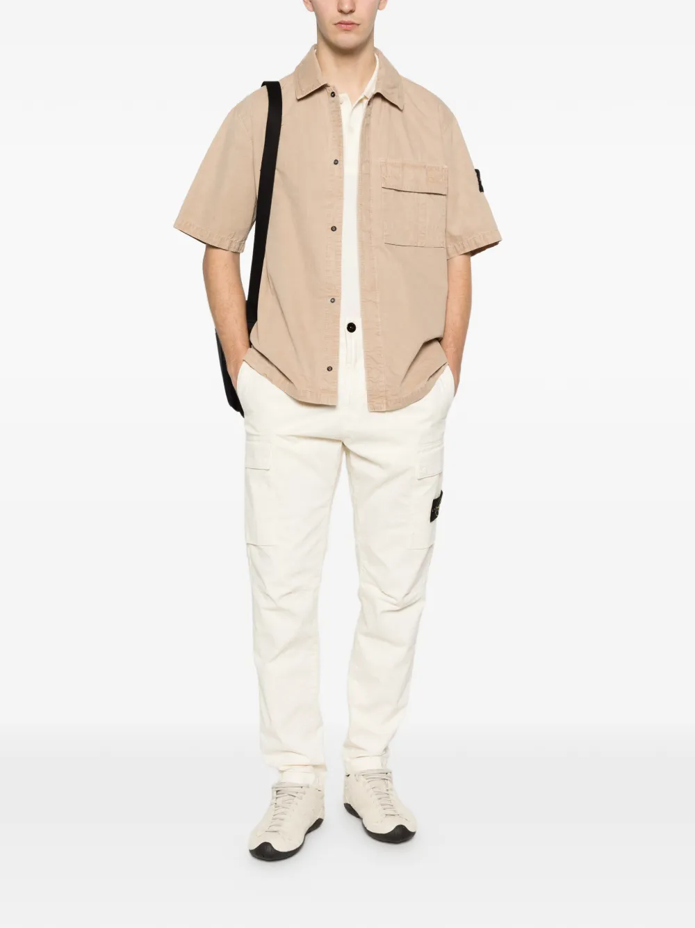Pantaloni Stone Island Patch-Detail Cargo bej, realizati din bumbac, cu inchidere nasture si fermoar, buzunare multiple, logo Compass Badge detasabil si tiv drept. Potriviti pentru sezonul primavara/vara. 97% bumbac; 3% elastan.