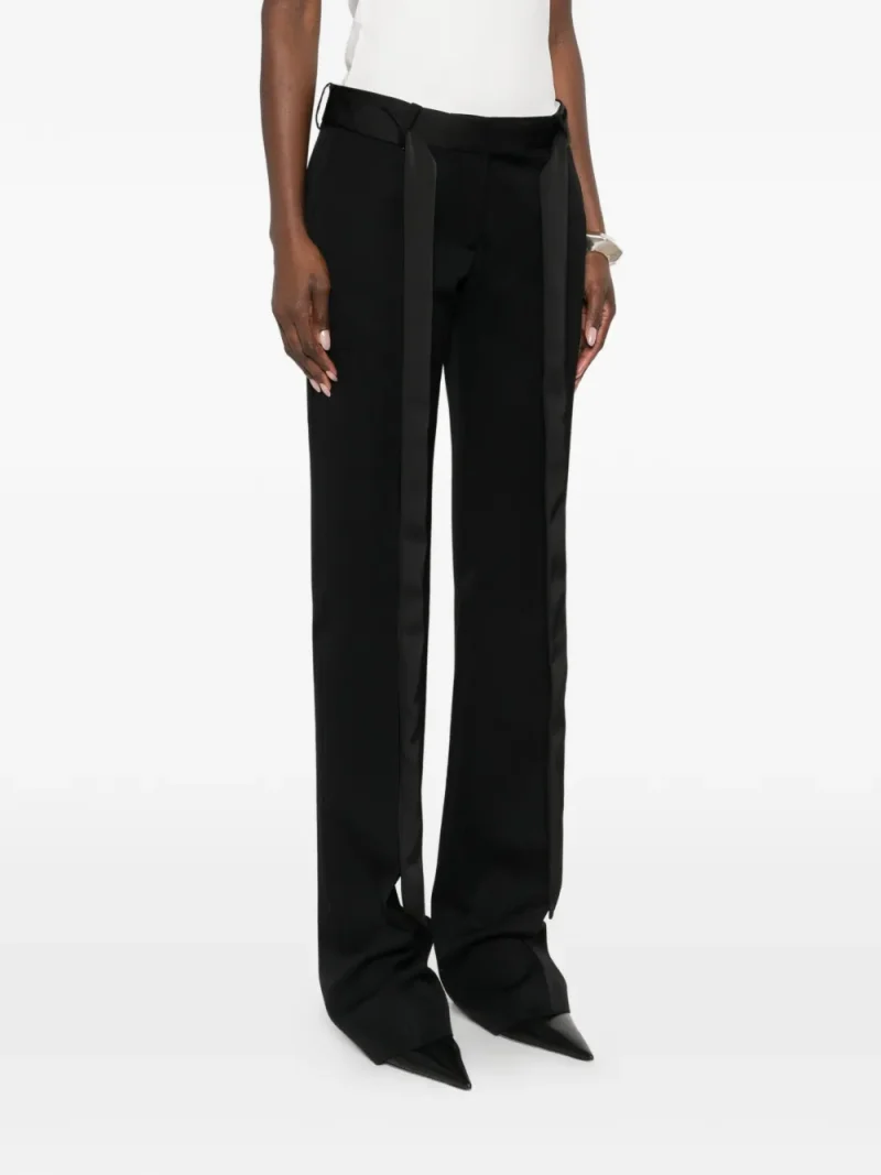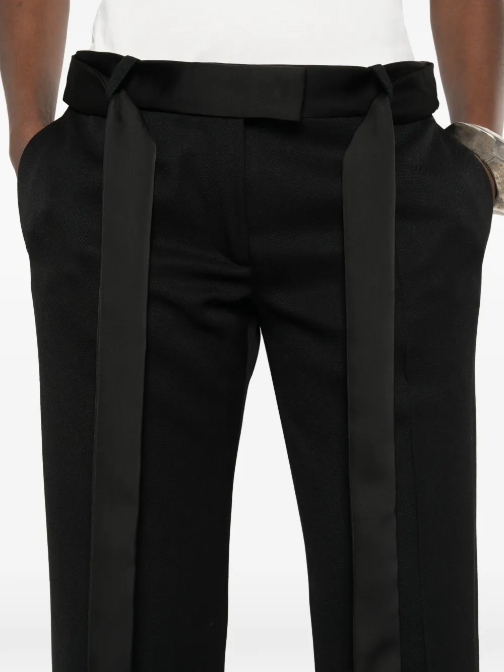 Pantaloni The Attico Tie-Waist negru, straight-fit, realizati din lana, cu inchidere clasica, buzunare laterale, buzunar welt la spate, cordon textil in jurul taliei si tiv drept. Potriviti pentru sezonul primavara/vara. 100% lana.