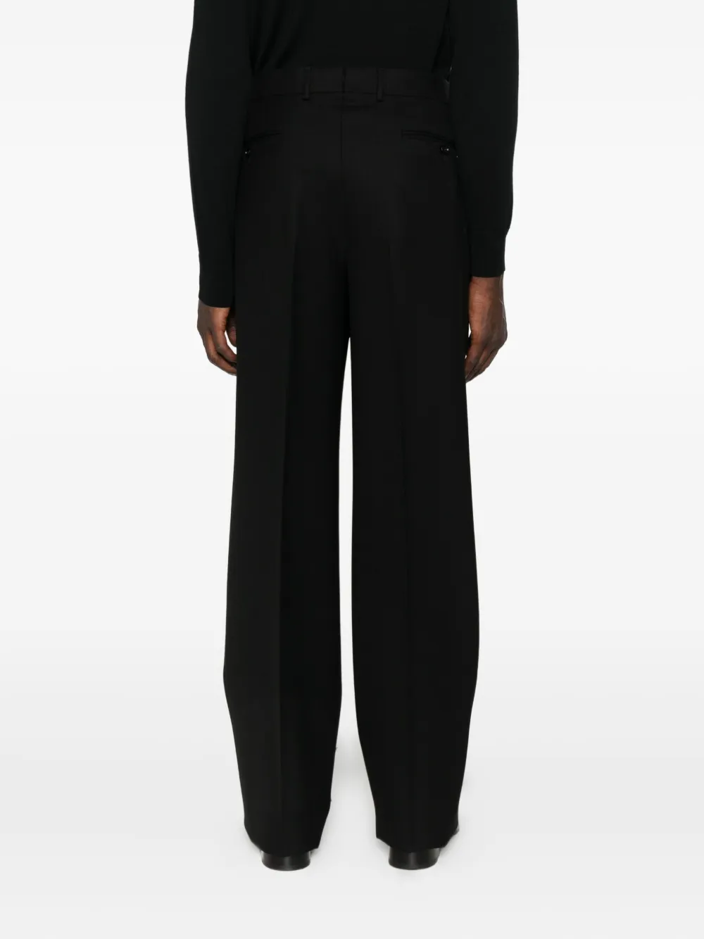 Pantaloni TOM FORD Pleated-Front negru, din lana, cu croiala straight-leg, realizati din lana, cu inchidere nasture si fermoar, buzunare laterale, buzunare welt la spate, detalii plisate si tiv drept. Potriviti pentru sezonul toamn/iarna. 100% cupro; 70% bumbac; 20% viscoza; 10% modal; 100% lana.