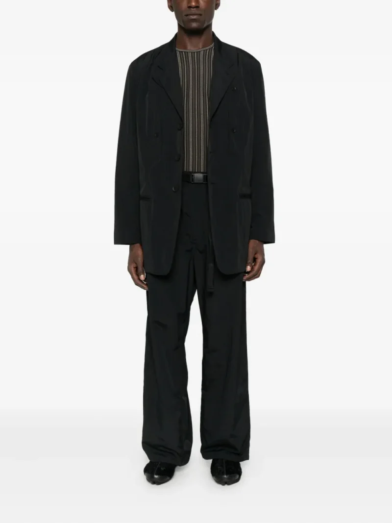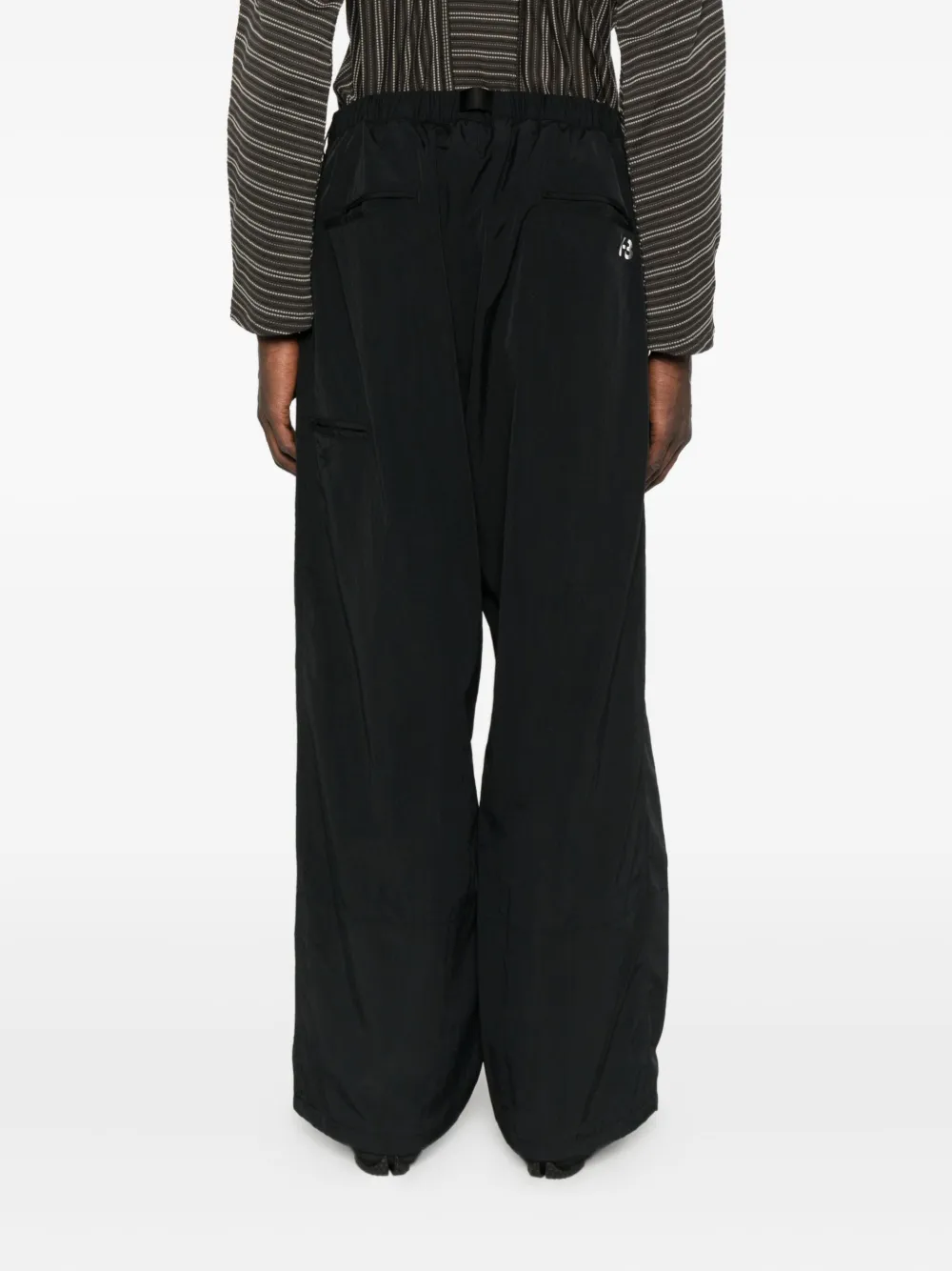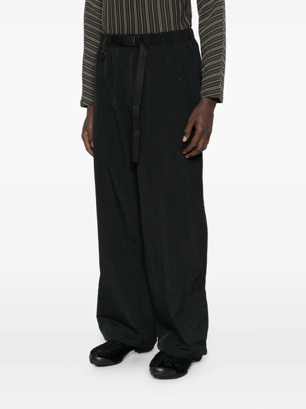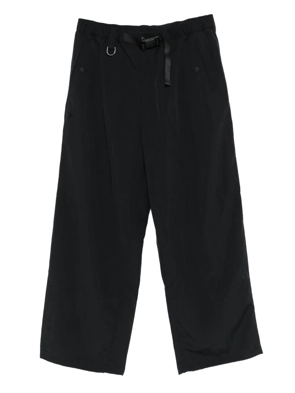 Pantaloni Y-3 Buckle-Fastening Pocket negru, wide-fit, cu inchidere nasturi, buzunare diagonale si welt la spate, curea textila in jurul taliei, logo Y-3 imprimat la spate si tiv drept. Potriviti pentru sezonul toamna/iarna. 100% poliamida; 100% bumbac.