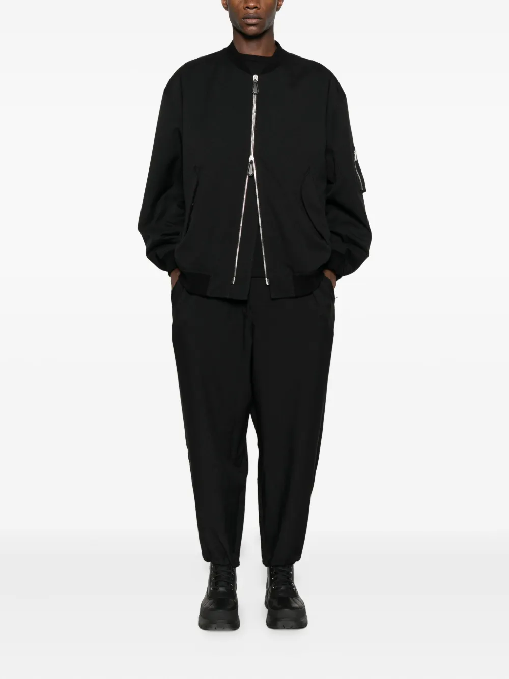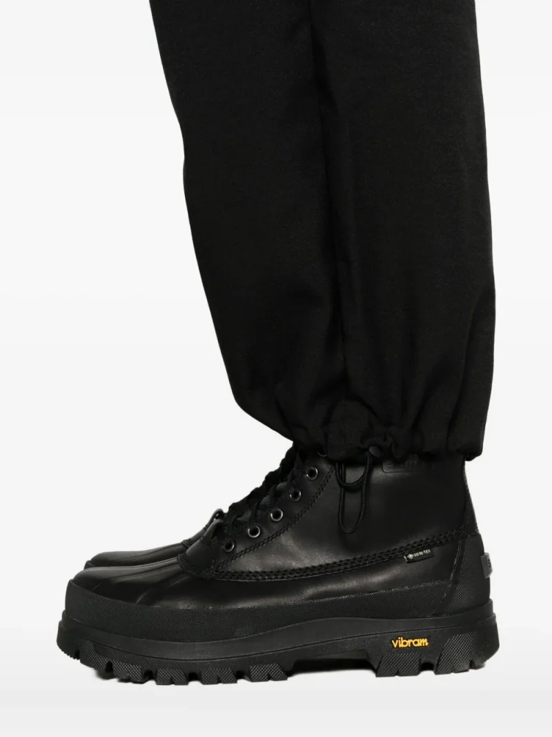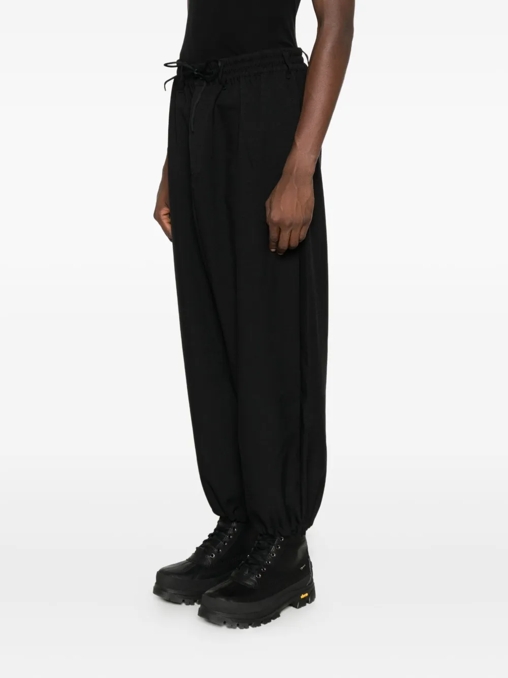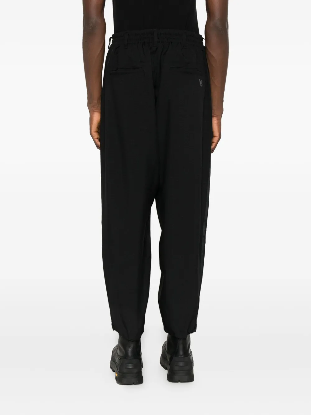 Pantaloni Y-3 Drawstring-Waist negru, cu talie elastica, si inchidere snur, buzunare diagonale, buzunare welt lsi ogo Y-3 imprimat la spate, tur lasat si tiv cu elastic. Potriviti pentru sezonul toamna/iarna. 100% poliester.