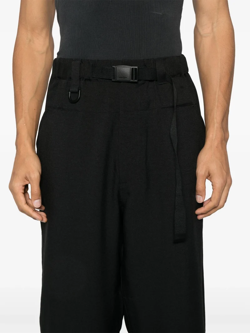 Pantaloni Y-3 Sport Uniform negru cu brau in talie, inchidere cu nasture si catarama, buzunare la spate si tiv drept. Potriviti pentru sezonul primavara/vara.100% polietilena