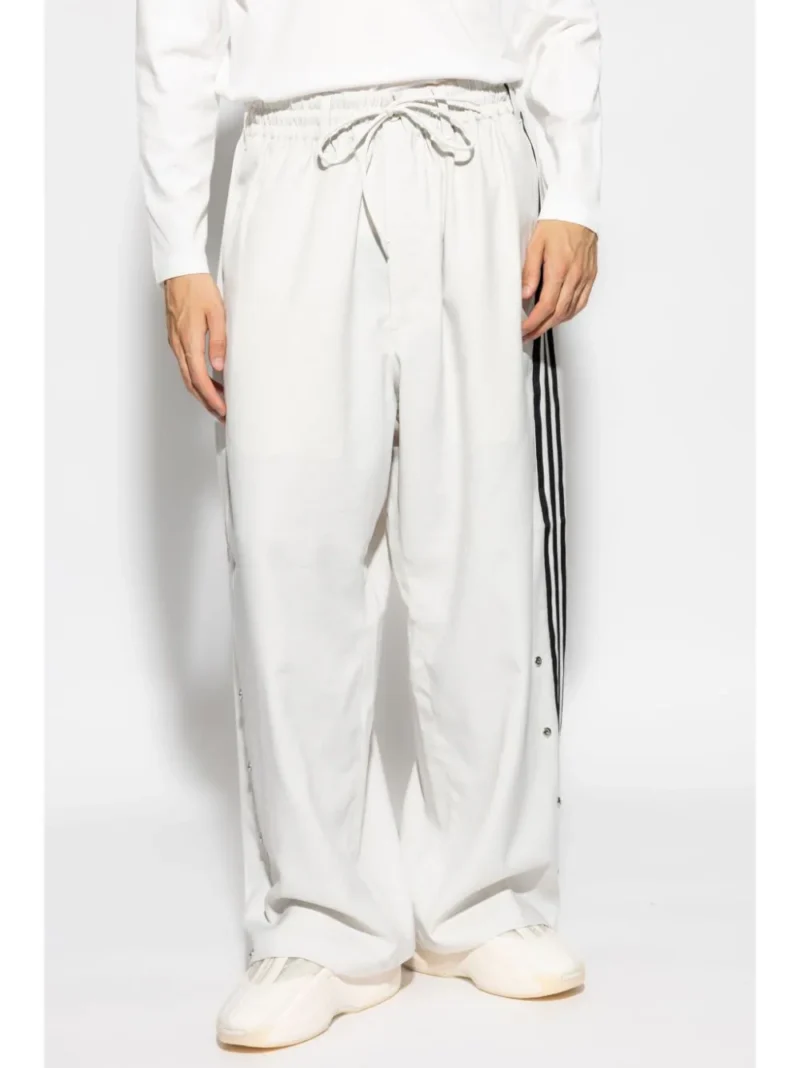 Pantaloni Y-3 Uniform Track gri, din poliester reciclat, cu inchidere banda elastica si snur, semnatura logo 3-Stripes si inchidere capse pe lateral, buzunare laterale, buzunare tip welt la spate, croiala larga si tiv drept. Potriviti pentru sezonul primavara/vara. 100% poliester reciclat.