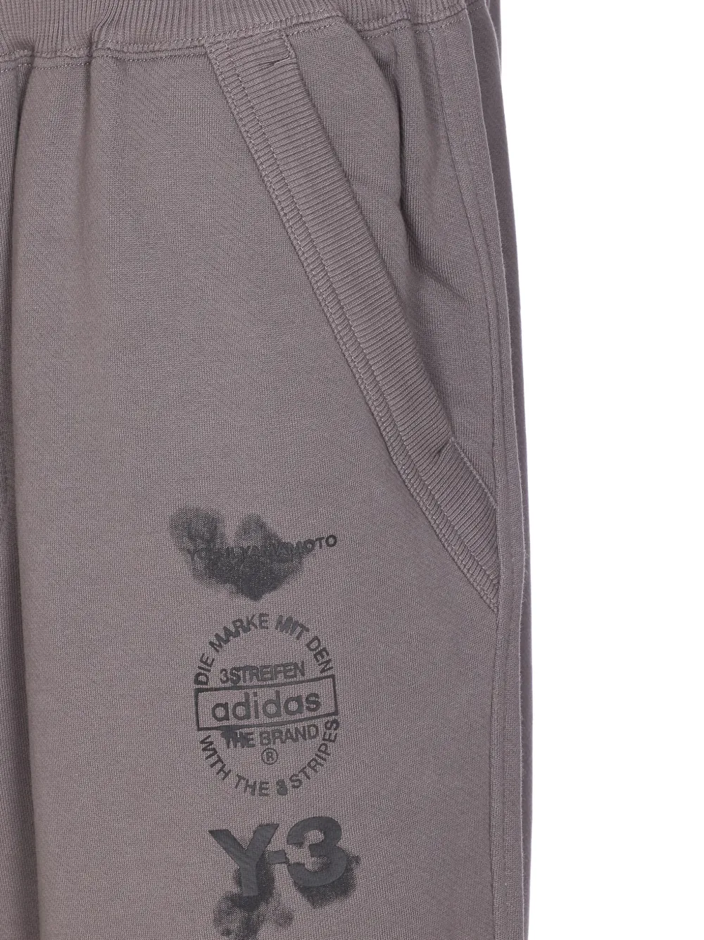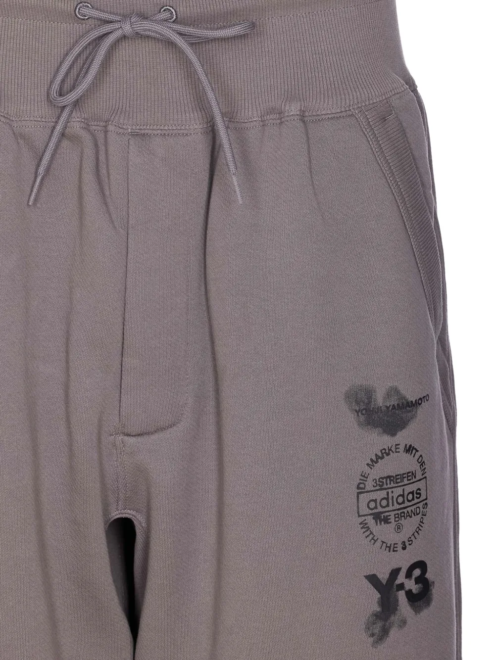 Pantaloni Y-3 Y-3 x Adidas Cuffed Track gri, cu talie elastica si inchidere snur, buzunare laterale, grafica Y-3 imprimata si tiv elastic drept. Potriviti pentru sezonul toamna/iarna. 99% bumbac; 1% elastan.