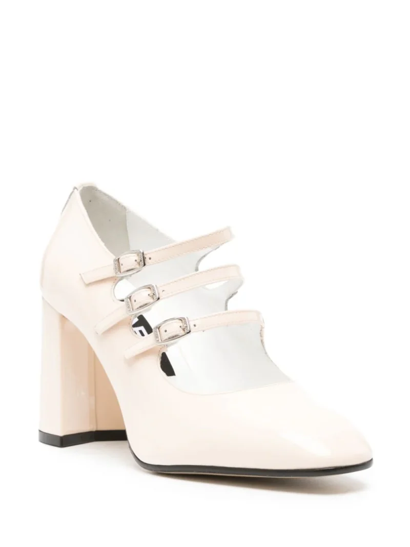 Pantofi bej din piele naturala, tip Mary Jane, cu finisaj lacuit, inchidere curele si catarame, brant din piele cu eticheta logo CAREL Paris cusuta, captuseala din piele, bot rotunjit, talpa inclinata din piele cu logo CAREL gravat si toc de 8.5 cm. 100% piele de vitel; 100% piele de vitel.