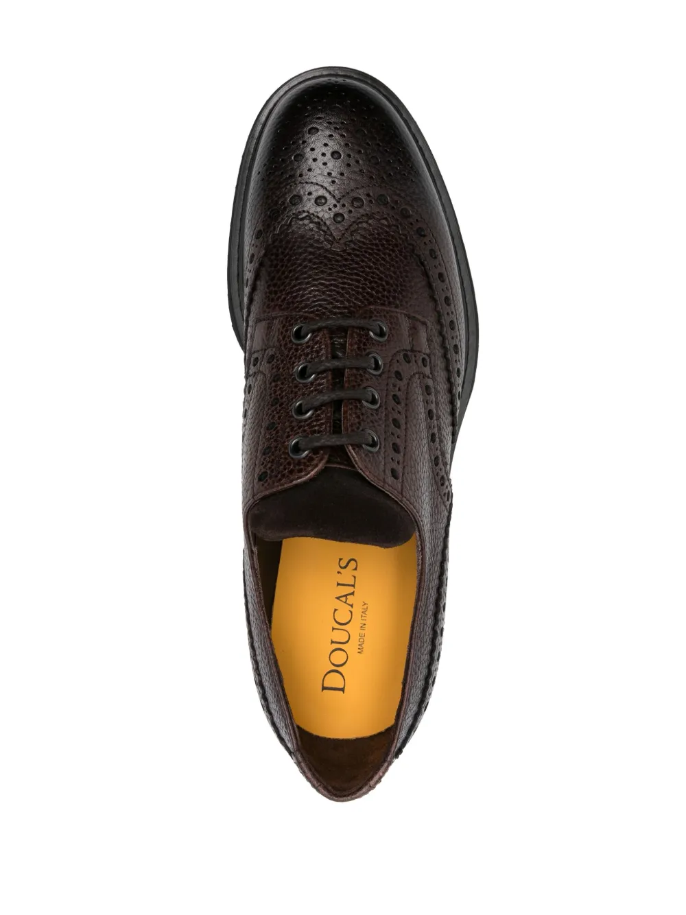 Pantofi Doucal’s Leather Derby maro, din piele, cu profil jos, inchidere cu sireturi, volum sculptural in partea de sus, captuseala din piele, talpa chunky si bot rotund. 100% piele de vitel; 100% cauciuc;100% piele de vitel.