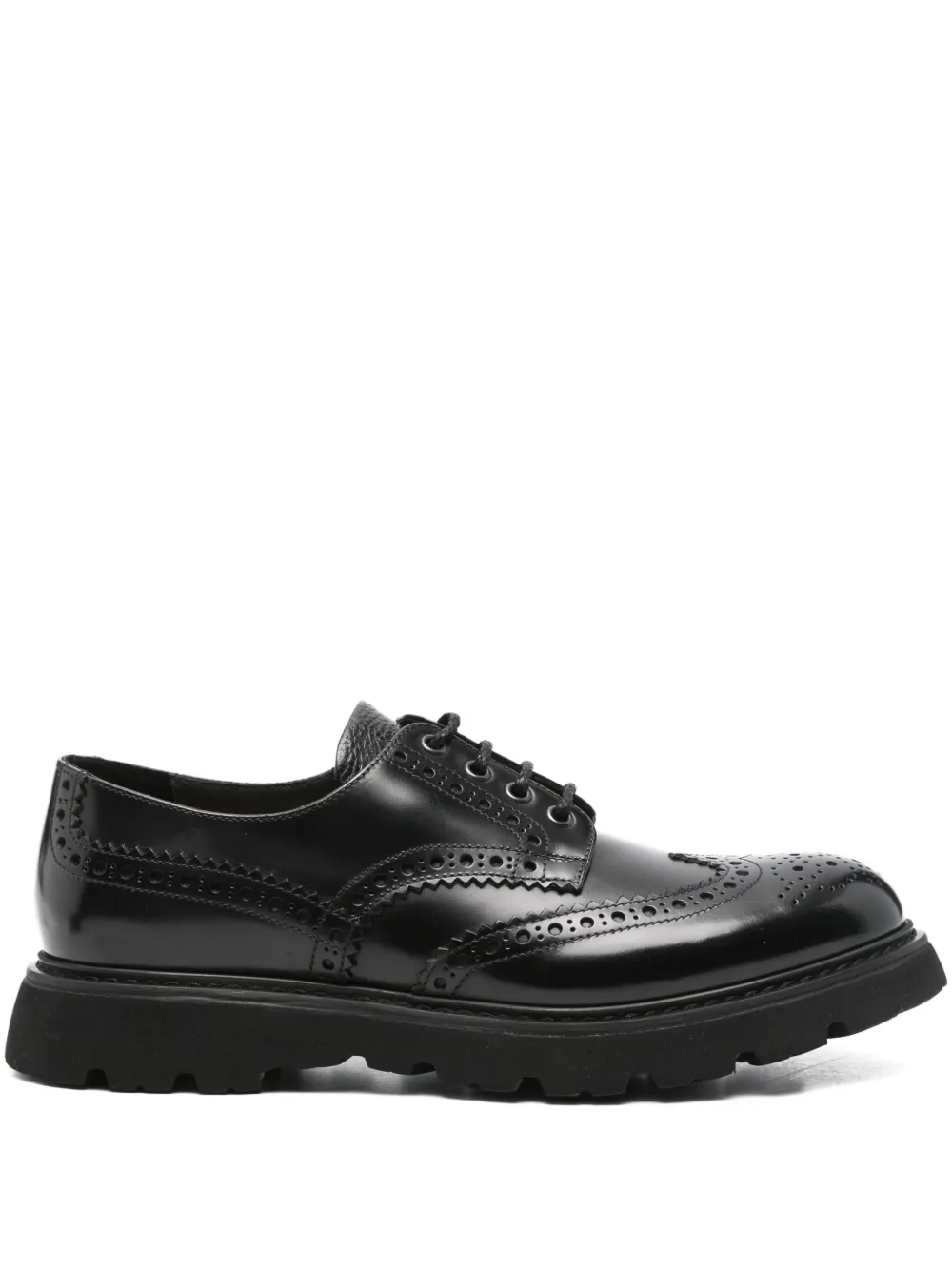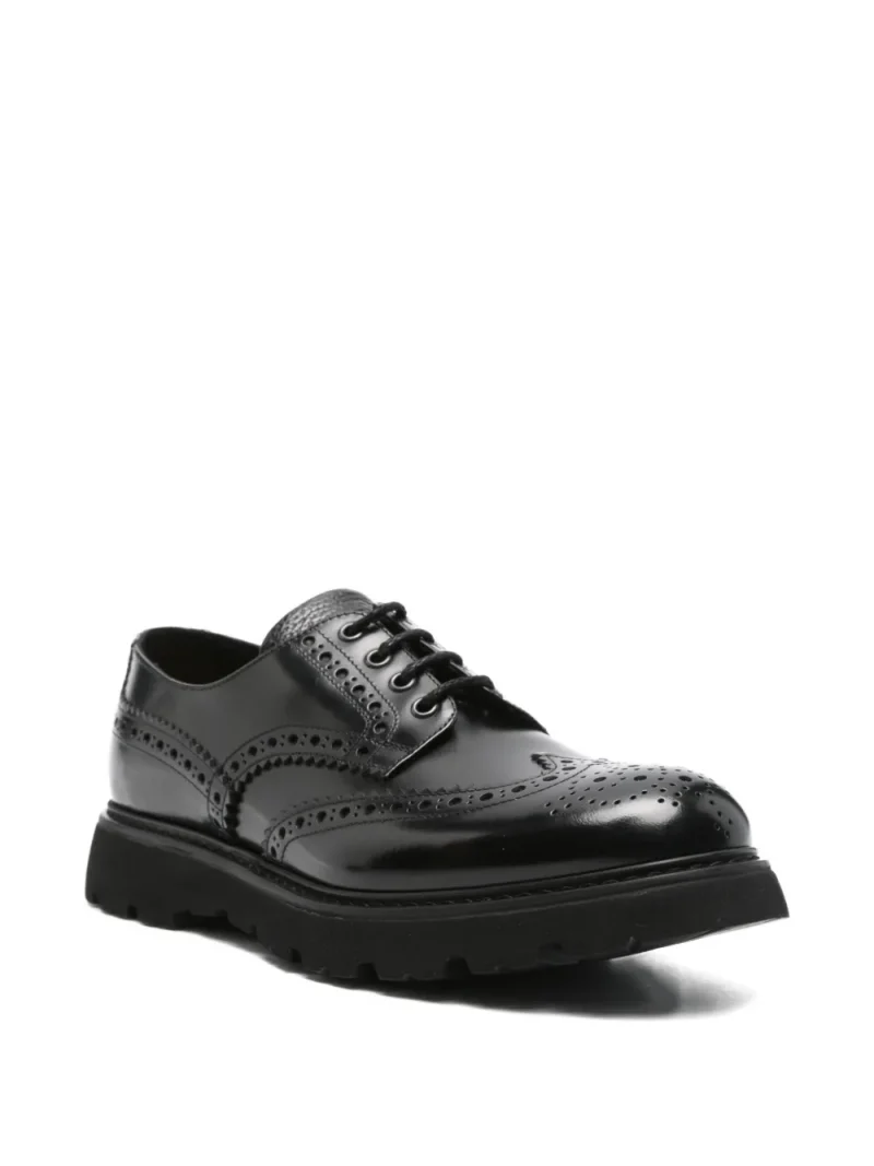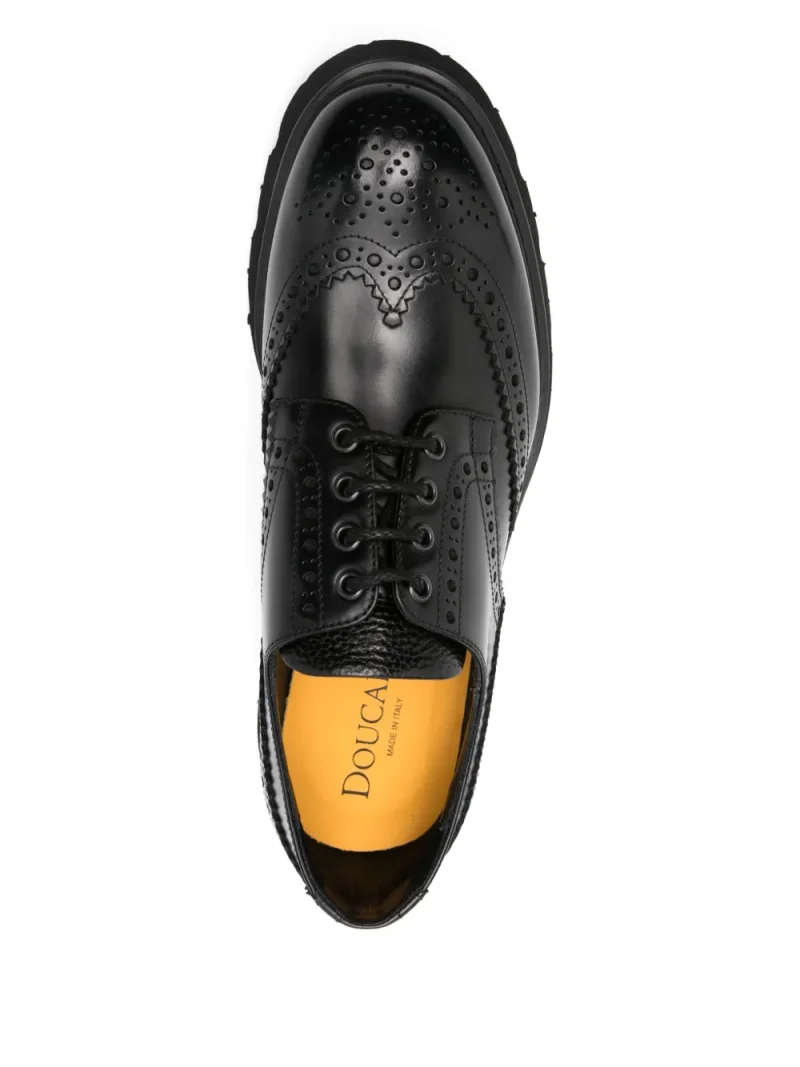 Pantofi Doucal’s Leather Oxford negru, din piele, cu profil jos, inchidere cu sireturi, volum sculptural in partea de sus, captuseala din piele, talpa chunky si bot rotund. 100% piele de vitel; 100% cauciuc;100% piele de vitel.