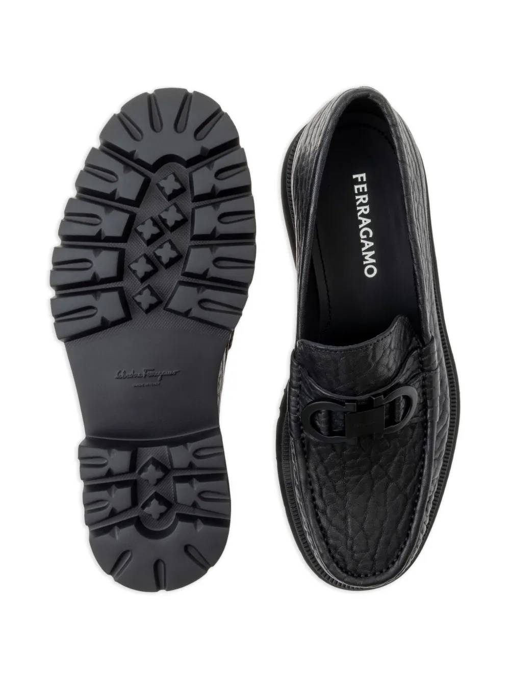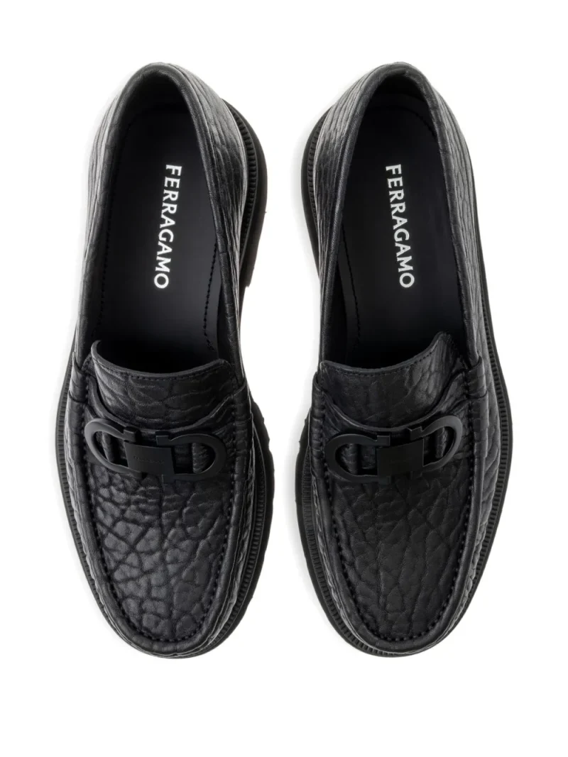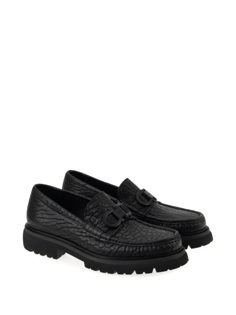 Pantofi Ferragamo Buckle-Detail Textured Loafers negru