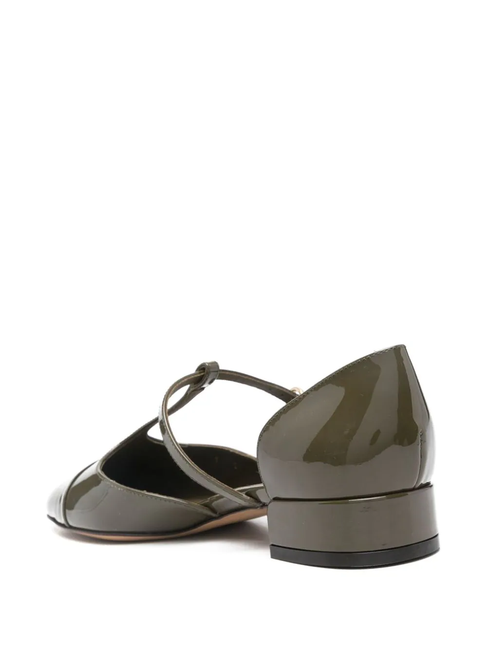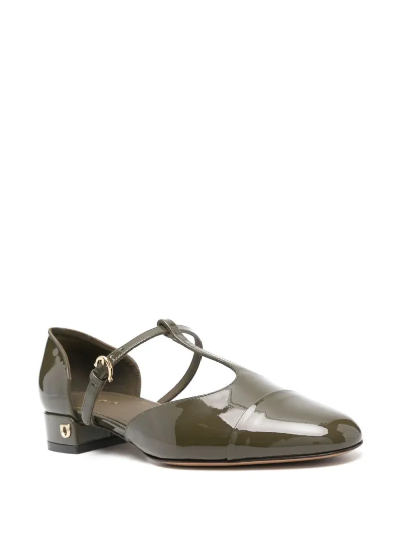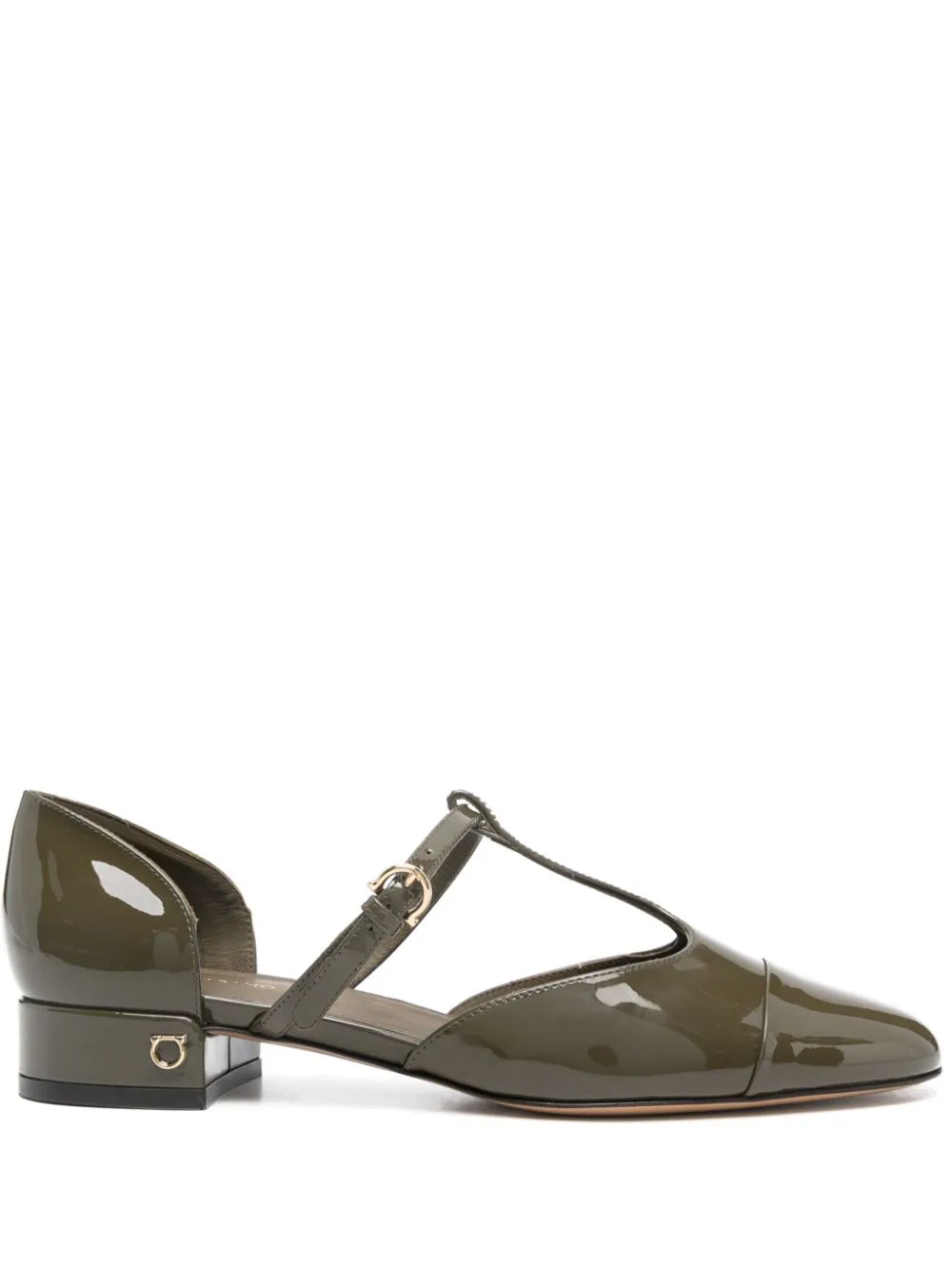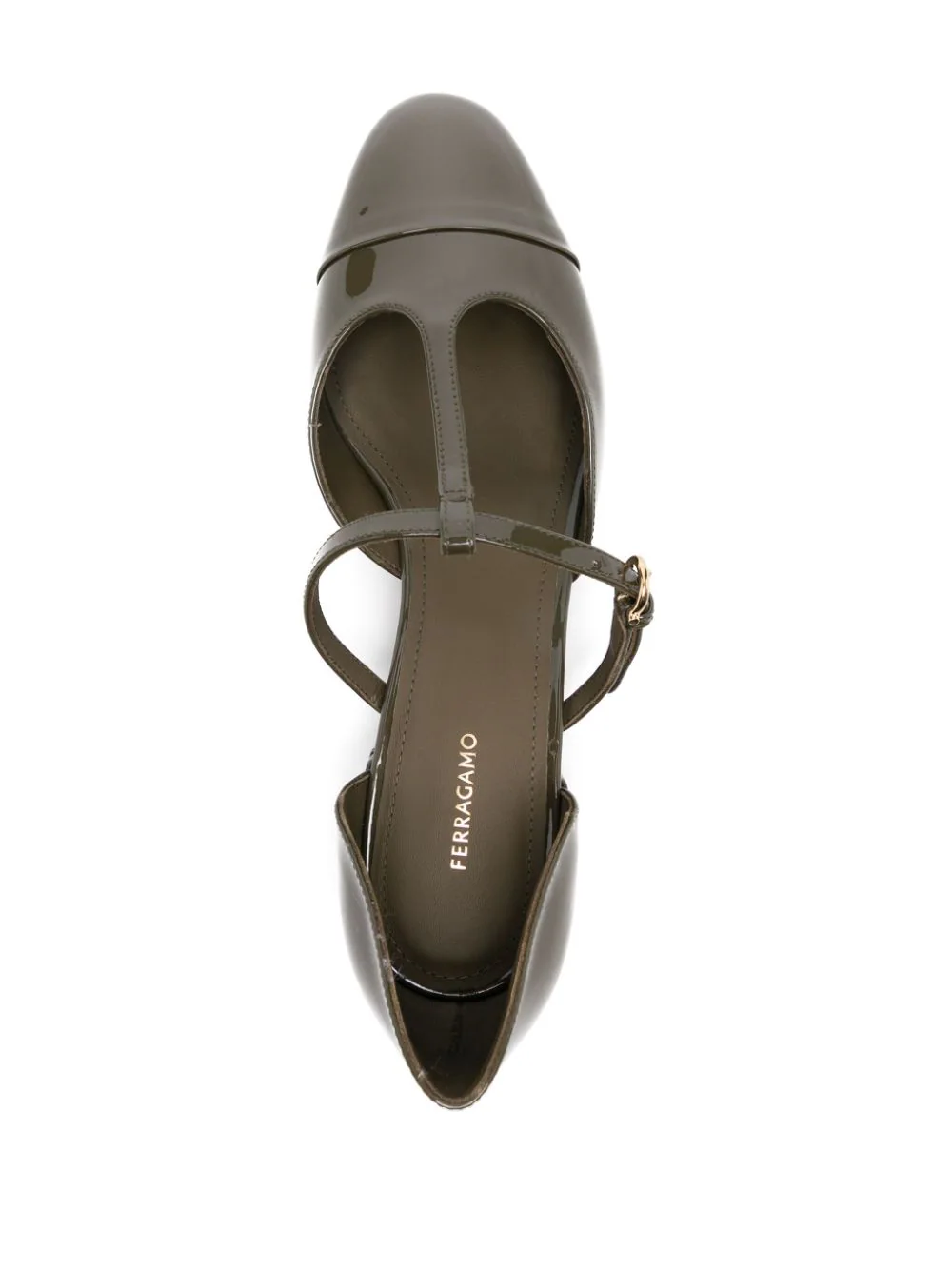 Pantofi FERRAGAMO Leather Ballerina khaki, din piele de vitel, cu inchidere curea si catarama, decoratiune curea in forma T pe partea superioara, captuseala din piele, talpa usor inclinata din piele, captuseala din piele, bot rotund si toc mini cu logo metalic aplicat. 100% piele de vitel; 100% piele de vitel; 100% piele de vitel.