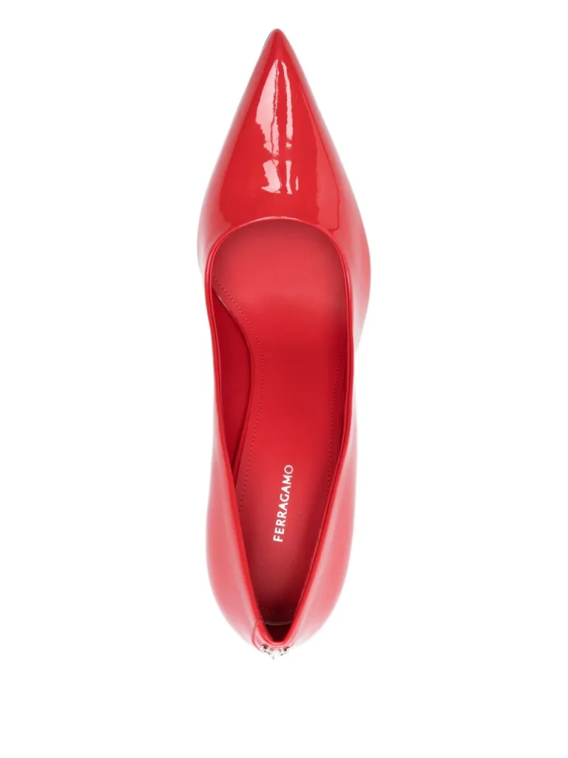 Pantofi Ferragamo stiletto pointed-toe 110mm rosu, brant cu logo, model cu piele lacuita.100% piele