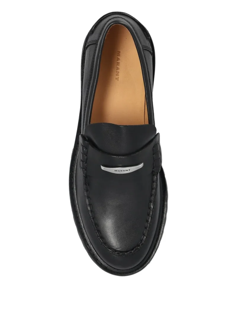 Pantofi loafers Marant Logo-Plaque negru, din piele, cu profil jos, fara inchidere, curea decorativa pe partea din fata cu logo metalic aplicat, cusaturi in relief, captuseala din piele, bot rotunjit si talpa din cauciuc. 100% cauciuc; 100% piele bovina; 100% piele de vitel.