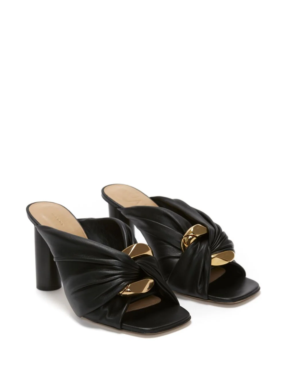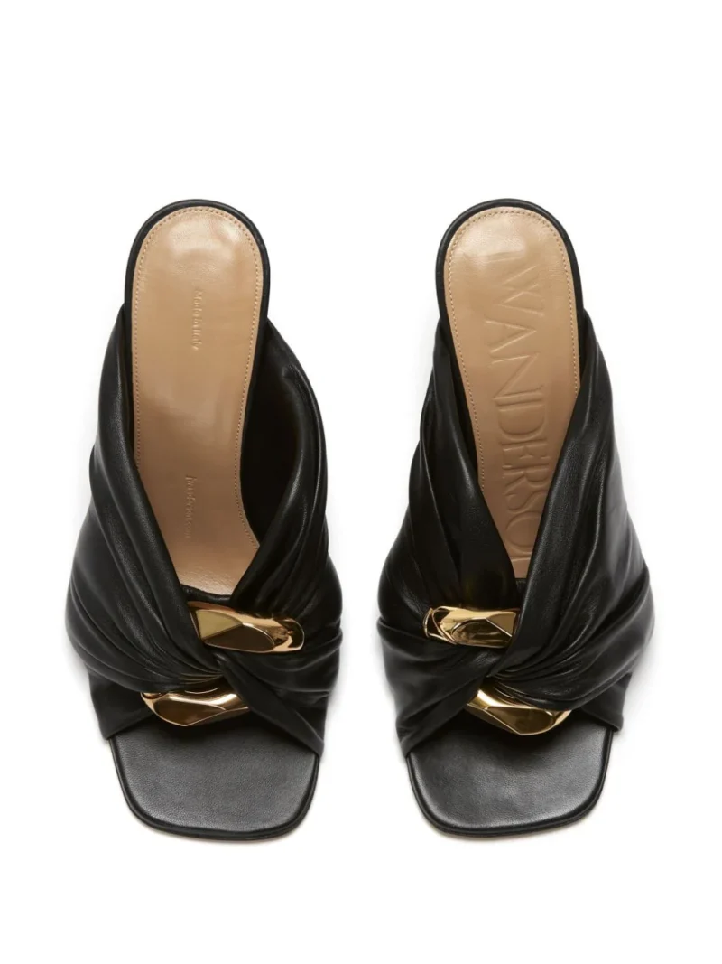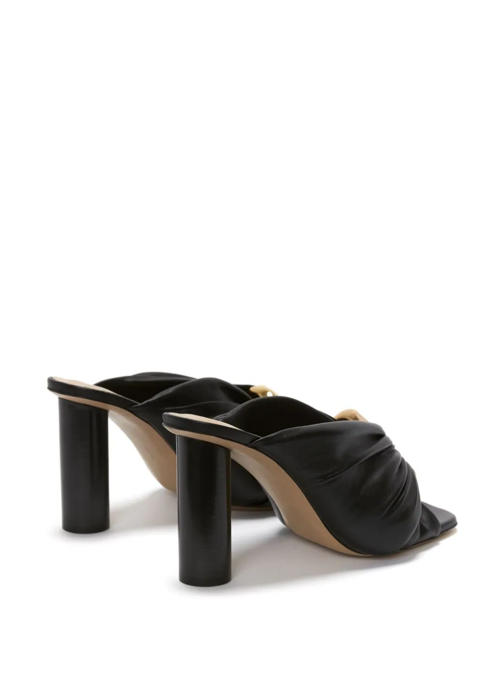 Pantofi mules negri din piele de miel, fara inchidere, cu toc, logo in adancime pe talpa, captuseala din piele, bot drept si talpa inclinata din piele. 100% piele de miel; 100% piele de oaie; 100% piele de vitel.