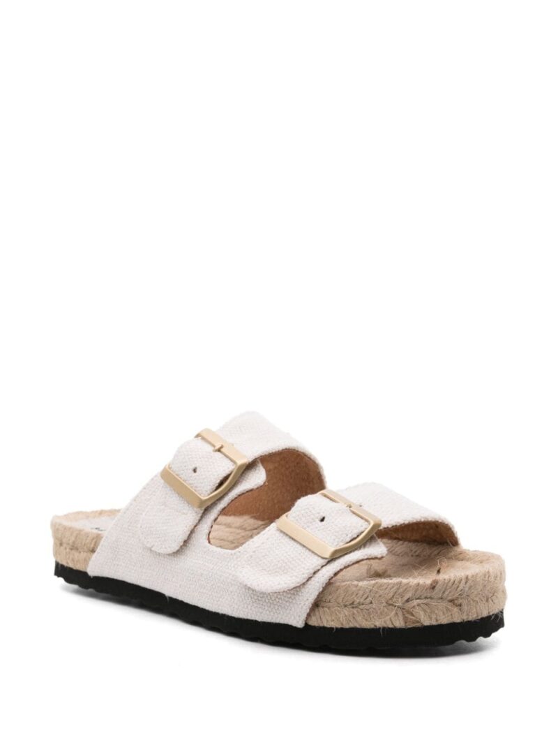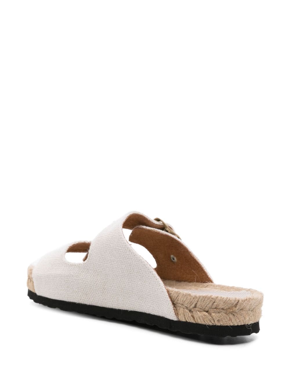 Papuci bej din piele, cu inchidere ajustabila, logo Manebi imprimat pe talpa, captuseala din iuta si talpa dreapta din cauciuc. 100% rafie; 100% textil; 100% iuta; 100% piele de vitel.