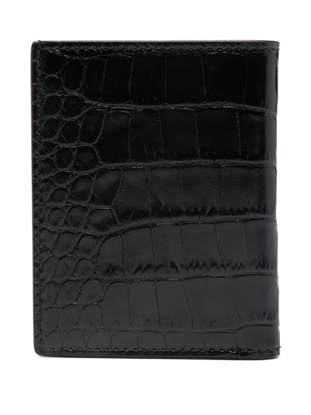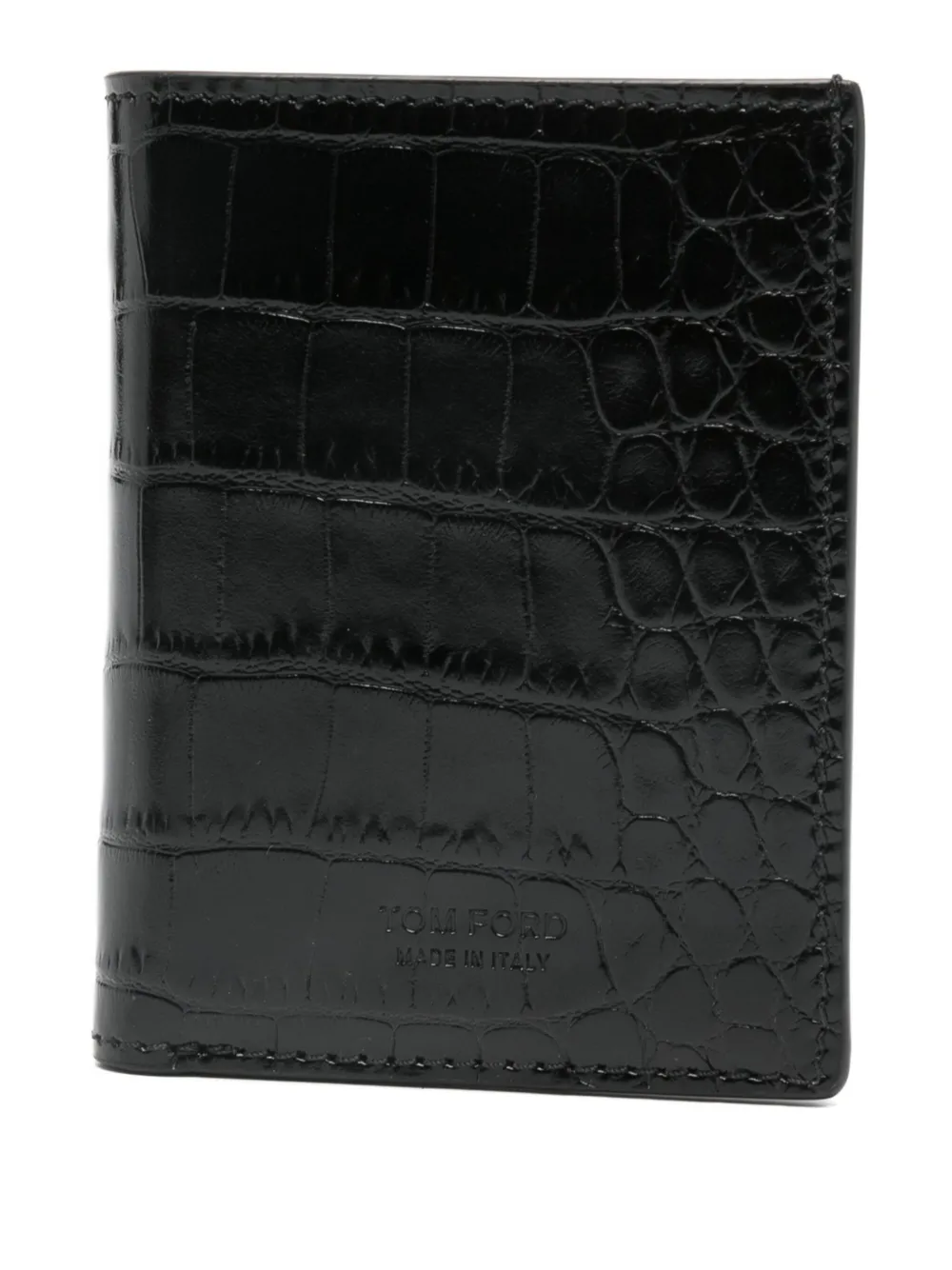 Portcard Tom Ford Crocodile-Embossed negru, din piele, cu forma dreptunghiulara, pliabil, sloturi pentru carduri la interior si logo imprimat. 100% piele.