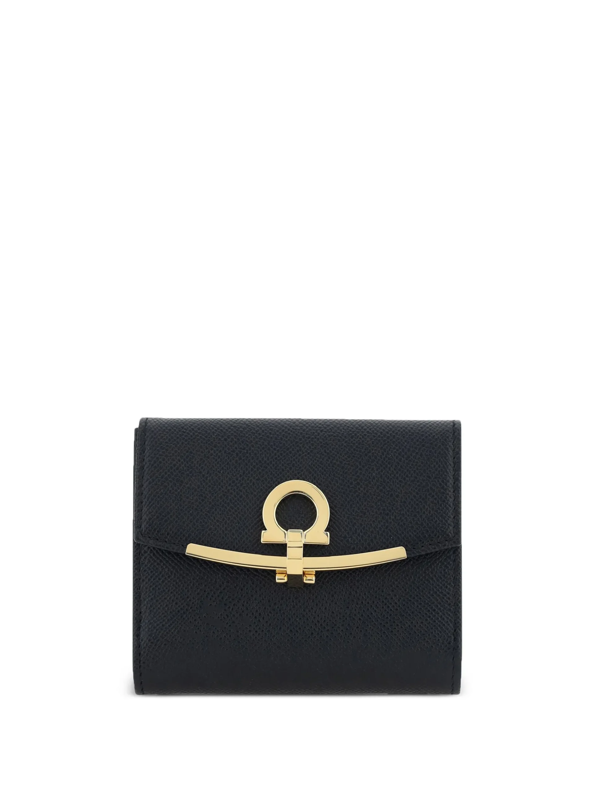 Portofel Ferragamo fold-over clasp negru, sloturi pentru carduri, inchidere clapeta, accesorii metalice.100% piele