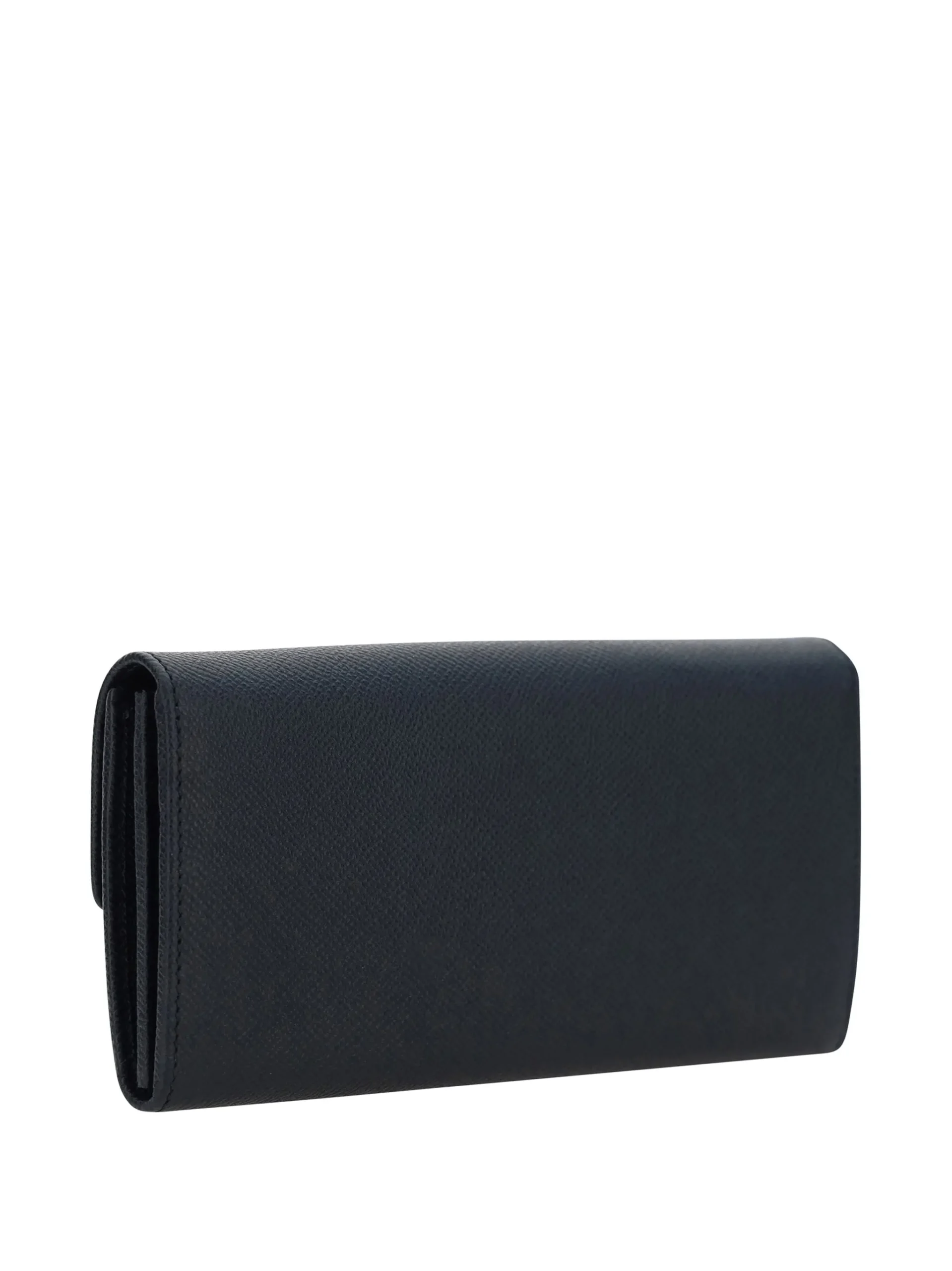 Portofel Ferragamo Gancini flip-lock negru, forma dreptunghiulara, buzunar interior cu fermoar, stampila cu logo, sloturi pentru card. 100% piele
