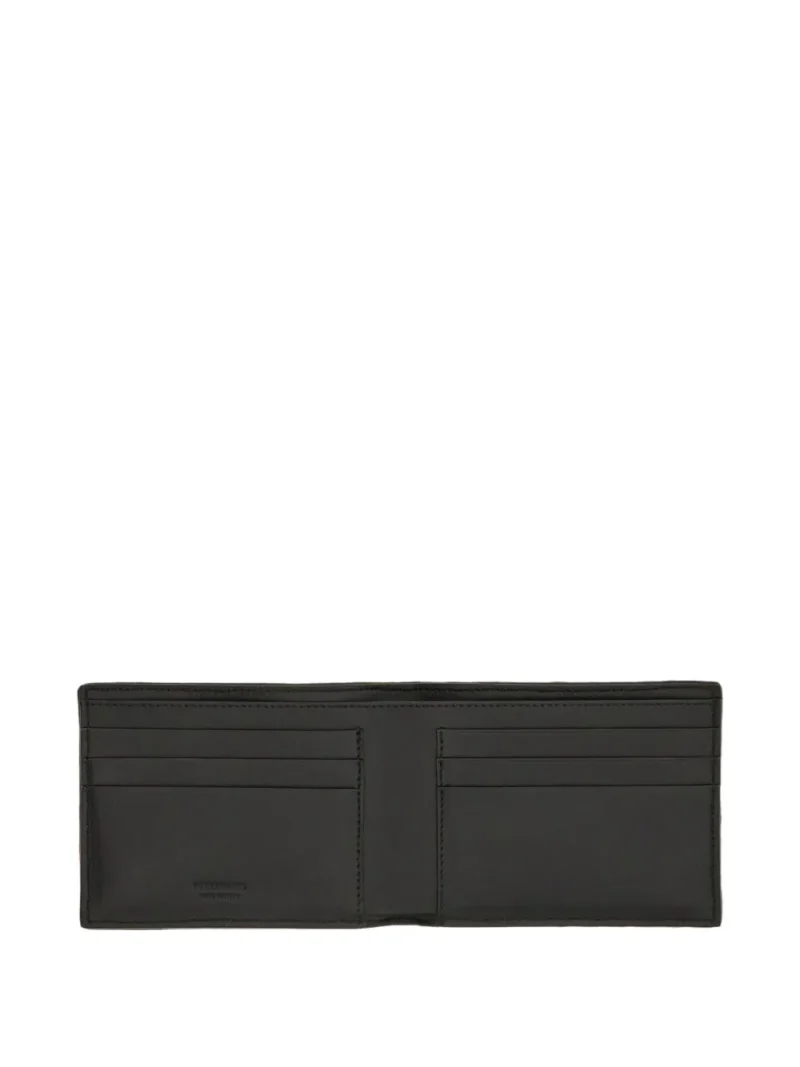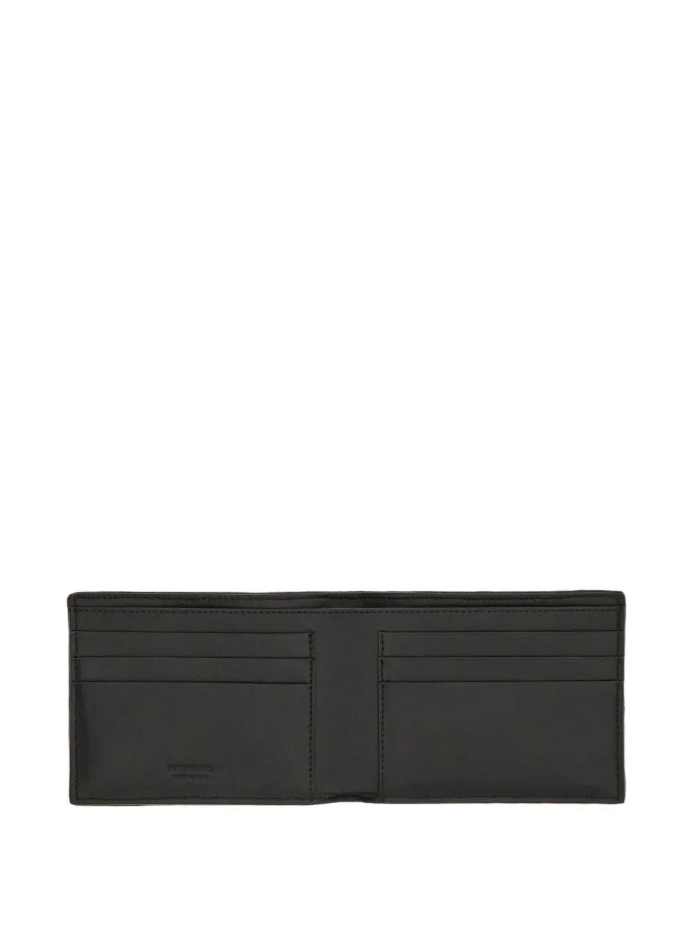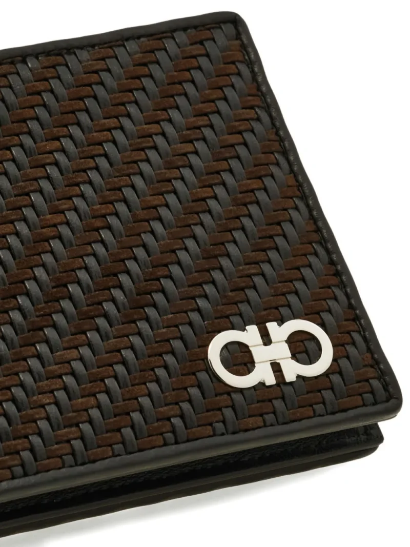 Portofel Ferragamo Woven maro, din piele, pliabil, design interconectat cu negru, logo metalic Gancini aplicat si sloturi multiple de carduri la interior. 100% piele de vitel.