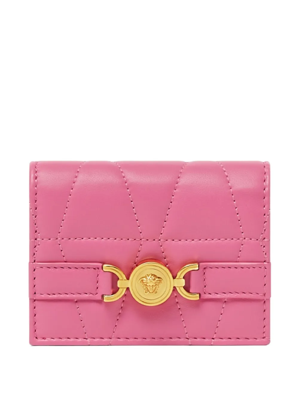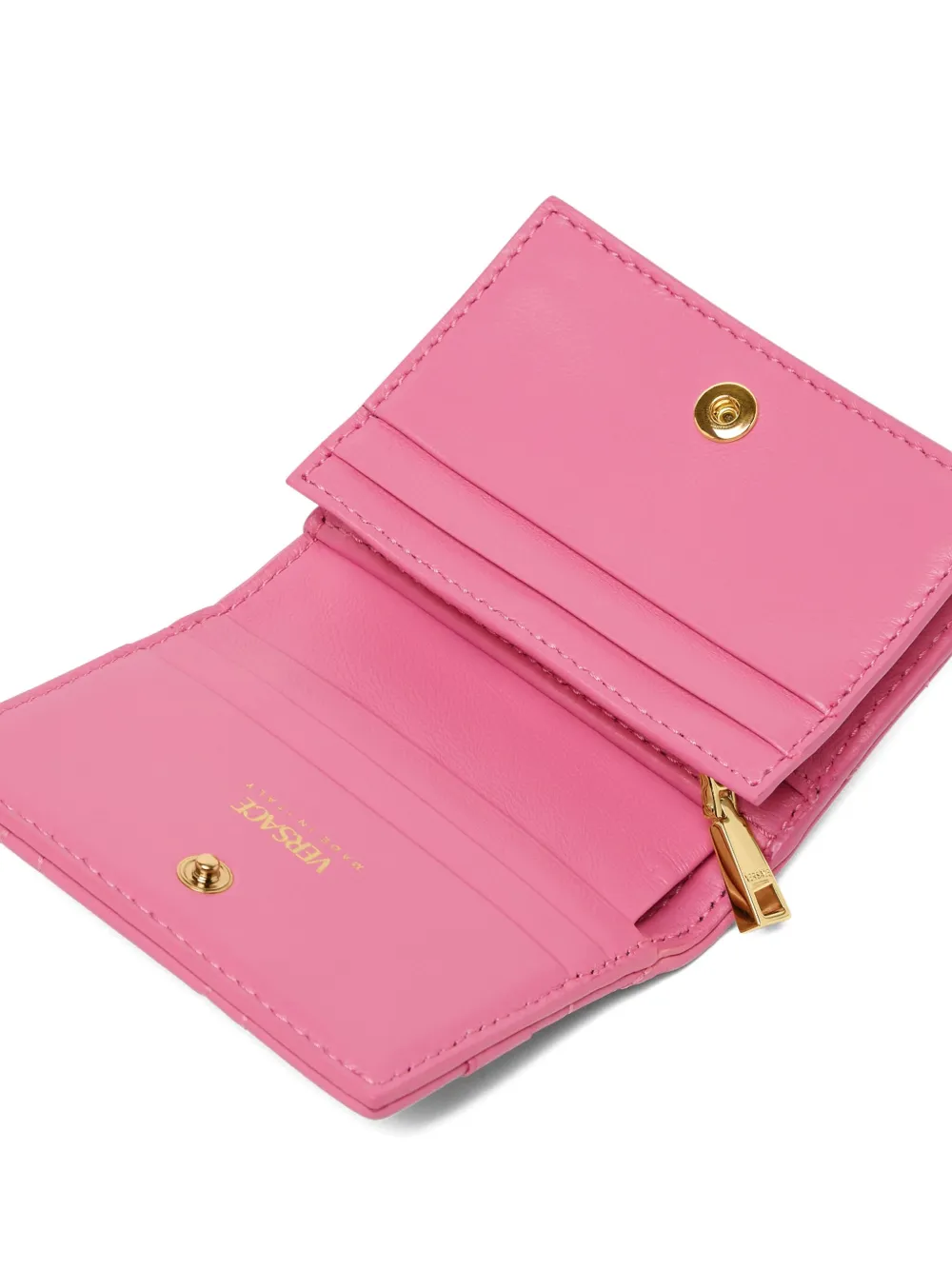Portofel Versace Medusa ’95 Quilted roz, din piele de miel, cu buzunar interior, sloturi pentru carduri, matlasat integral si decorat cu logo Medusa Versace. 100% piele de miel; 60% bumbac; 40% viscoza.