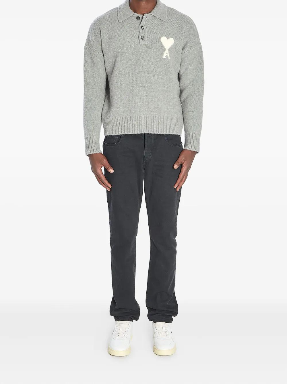 Pulover Ami Paris Ami de Coeur Intarsia Polo gri
