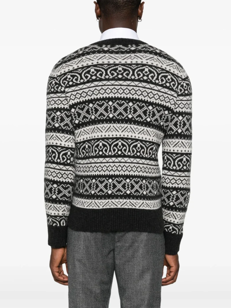 Pulover Eleventy fair isle-intarsia, maneci lungi, mansete elastice si tiv drept. 71% casmir 19% casmir 10% poliester