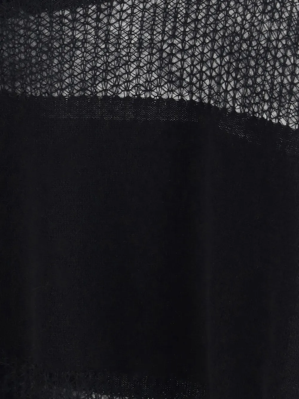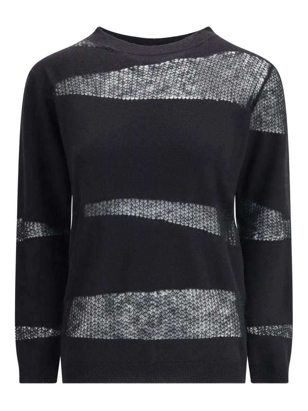 Pulover Fabiana Filippi Mesh-Inserts negru, cu design in panouri mesh din mix de materiale, guler crewneck, maneci lungi si terminatii ribbed. Potrivit pentru sezonul toamna/iarna. 75% lana; 15% matase; 10% casmir.