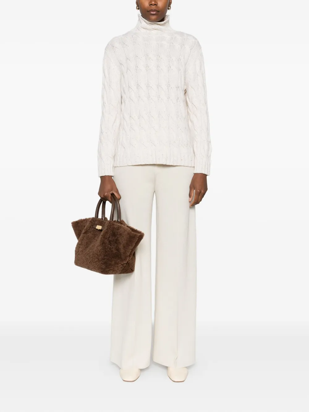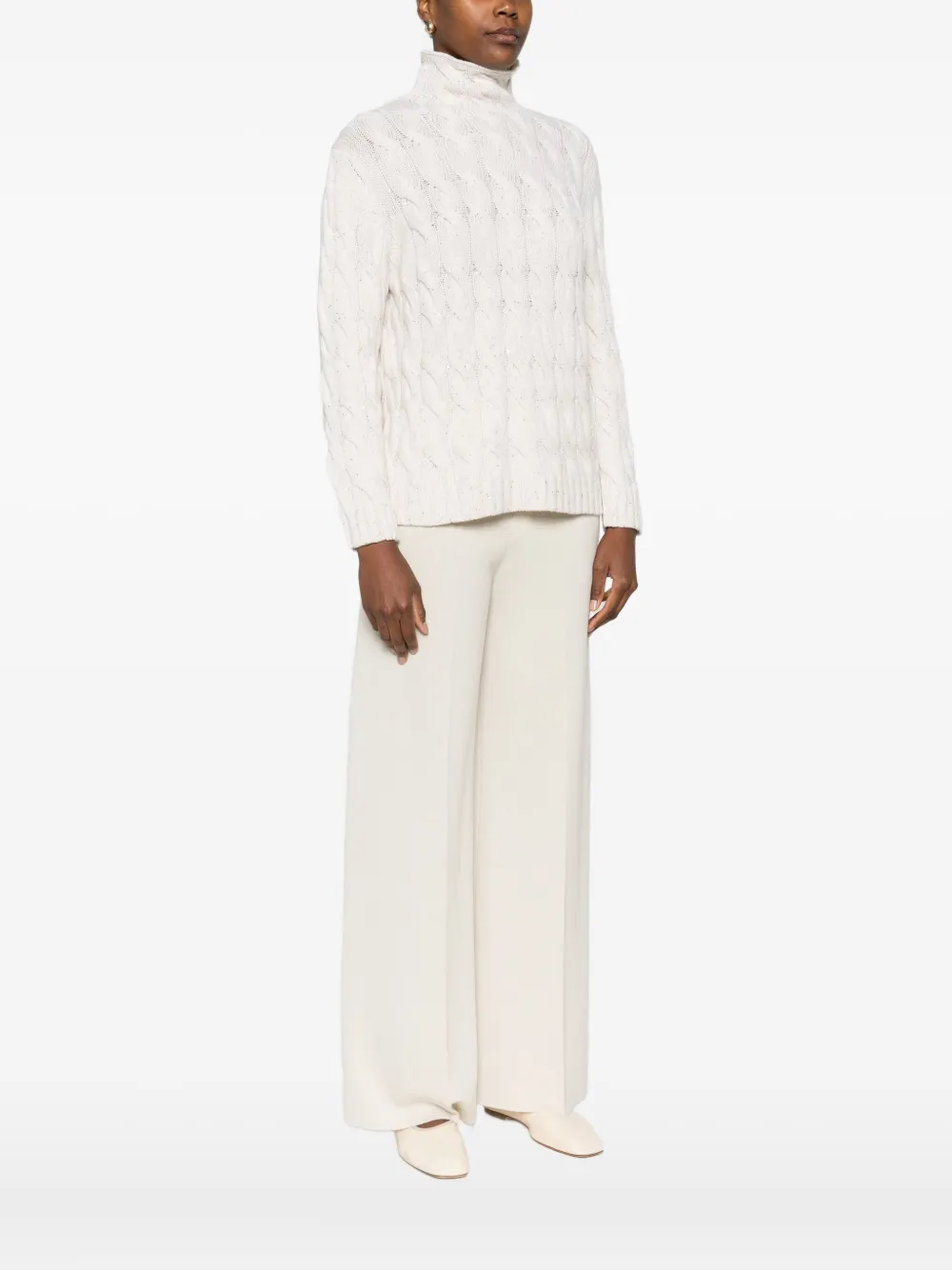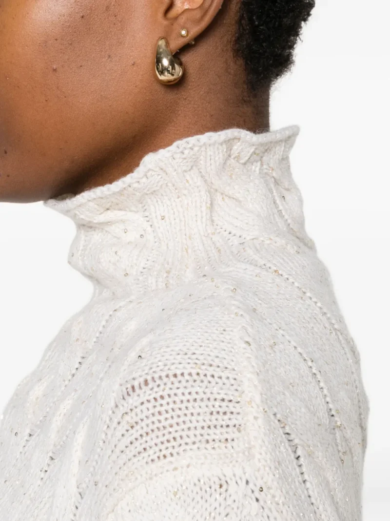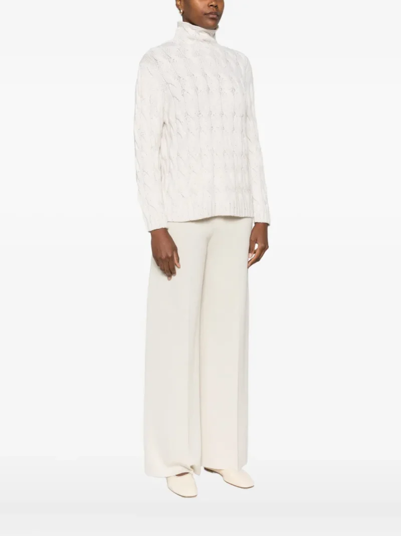 Pulover Gran Sasso Cable-Knit High-Neck ecru