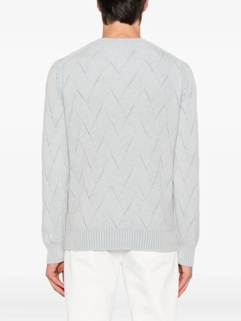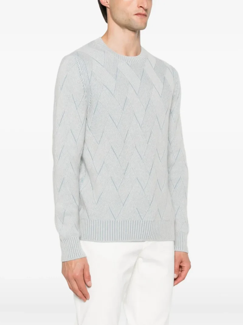 Pulover Gran Sasso chevron-pattern albastru din casmir premium, maneci lungi, tiv elastic. Potrivit pentru sezonul toamna/iarna.100% casmir