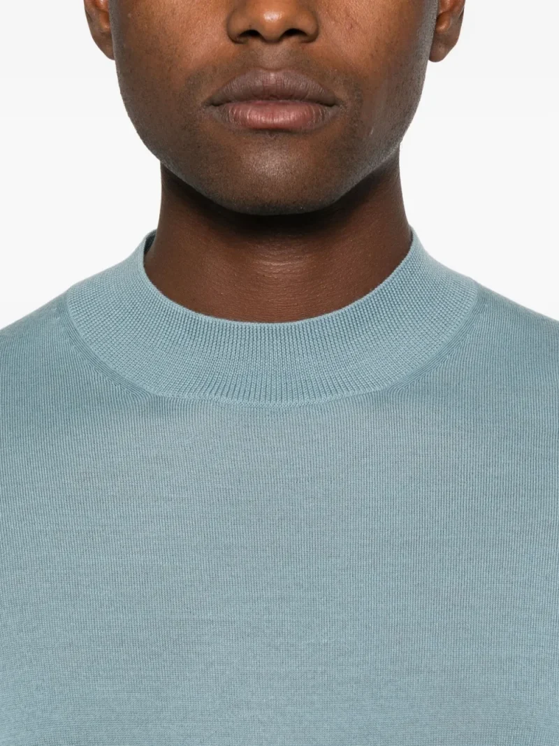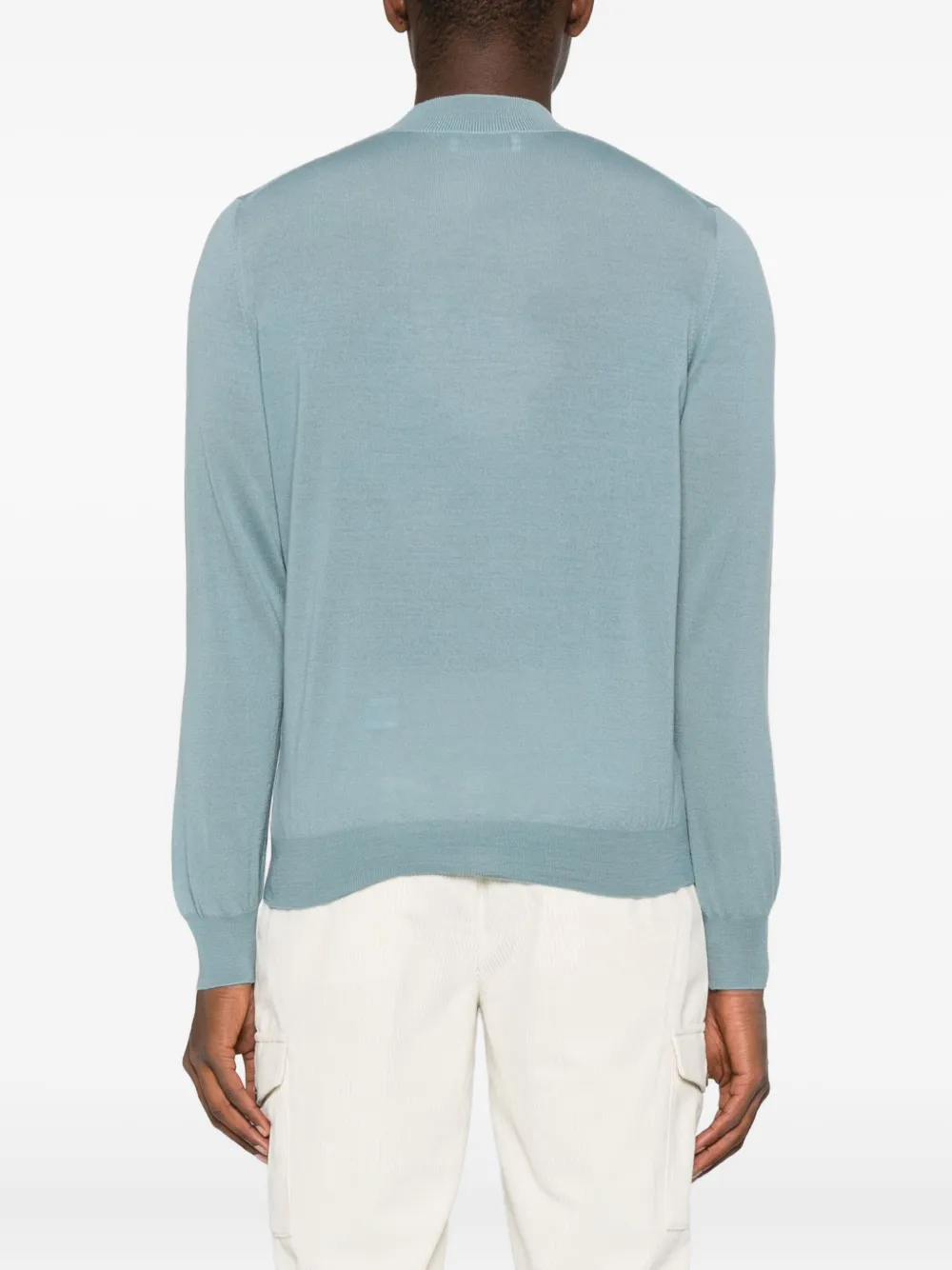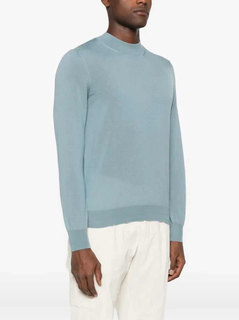Pulover Gran Sasso Crew-Neck albastru, relizat din lana premium, cu guler crewneck, maneci lungi, tesatura fina si terminatii ribbed. Potrivit pentru sezonul toamna/iarna. 100% lana.