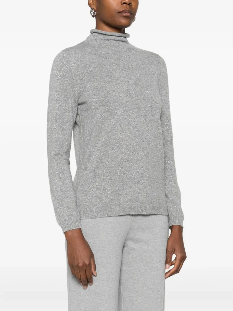 Pulover Gran Sasso Roll-Neck gri, tricotat din lana, cu gule inalt rulat, maneci lungi si tiv drept. Potrivit pentru sezonul toamna/iarna. 66% lana; 28% casmir; 6% poliester.