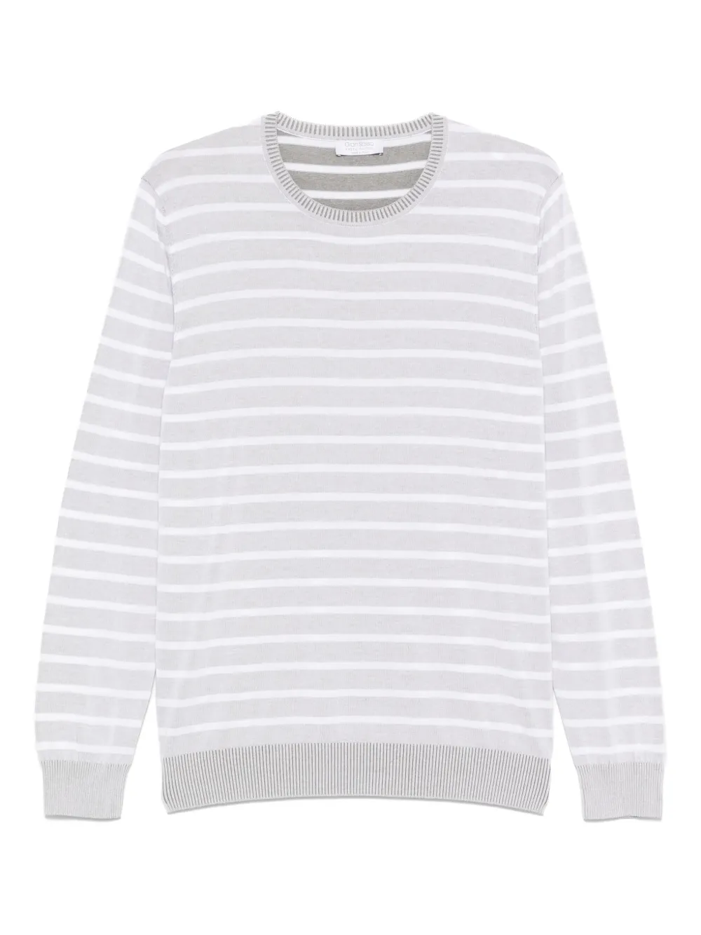 Pulover Gran Sasso Striped Cotton verde, cu guler crewneck, maneci lungi, mansete elastice, grafica cu dungi in tesatura si tiv elastic drept. Potrivit pentru sezonul toamna/iarna. 100% bumbac.