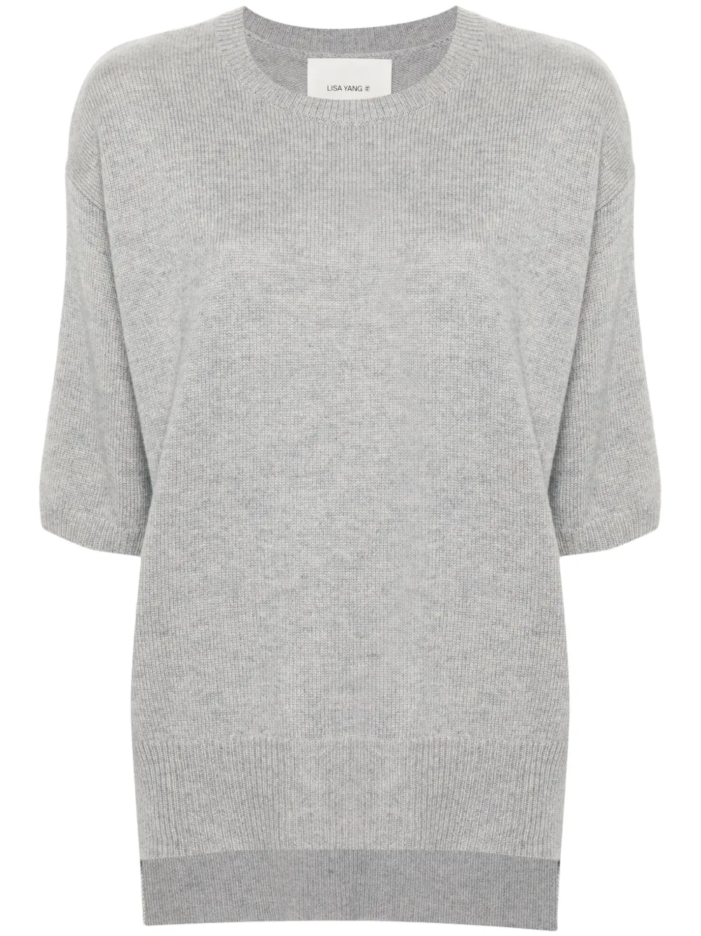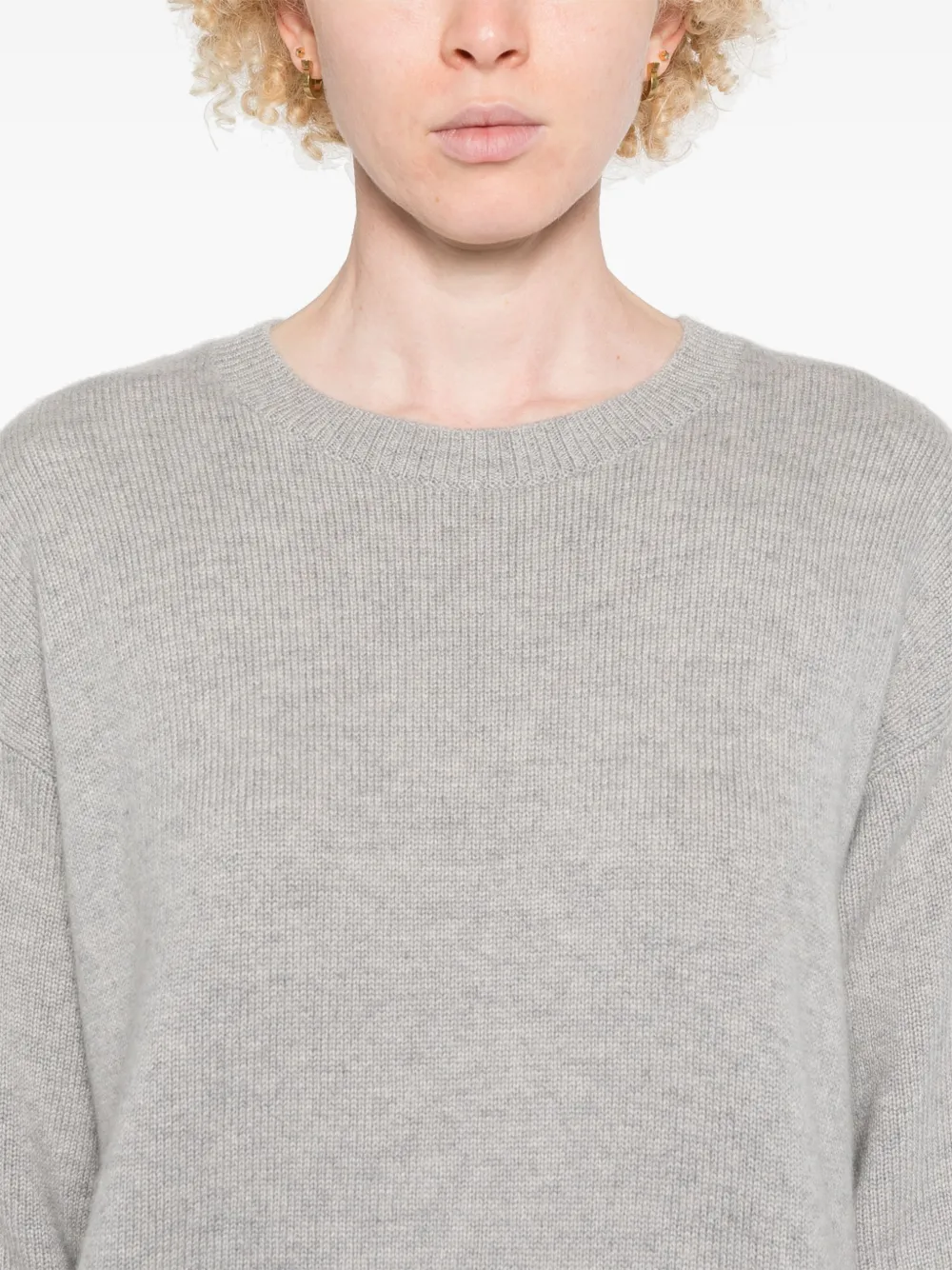 Pulover Lisa Yang Camille gri, din casmir, cu guler crewneck, umeri cazuti, maneci medii, tesatura ribbed si tiv drept. Potrivit pentru sezonul toamna/iarna. 100% casmir.