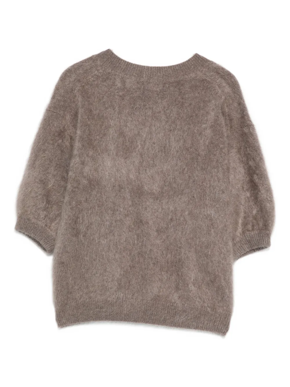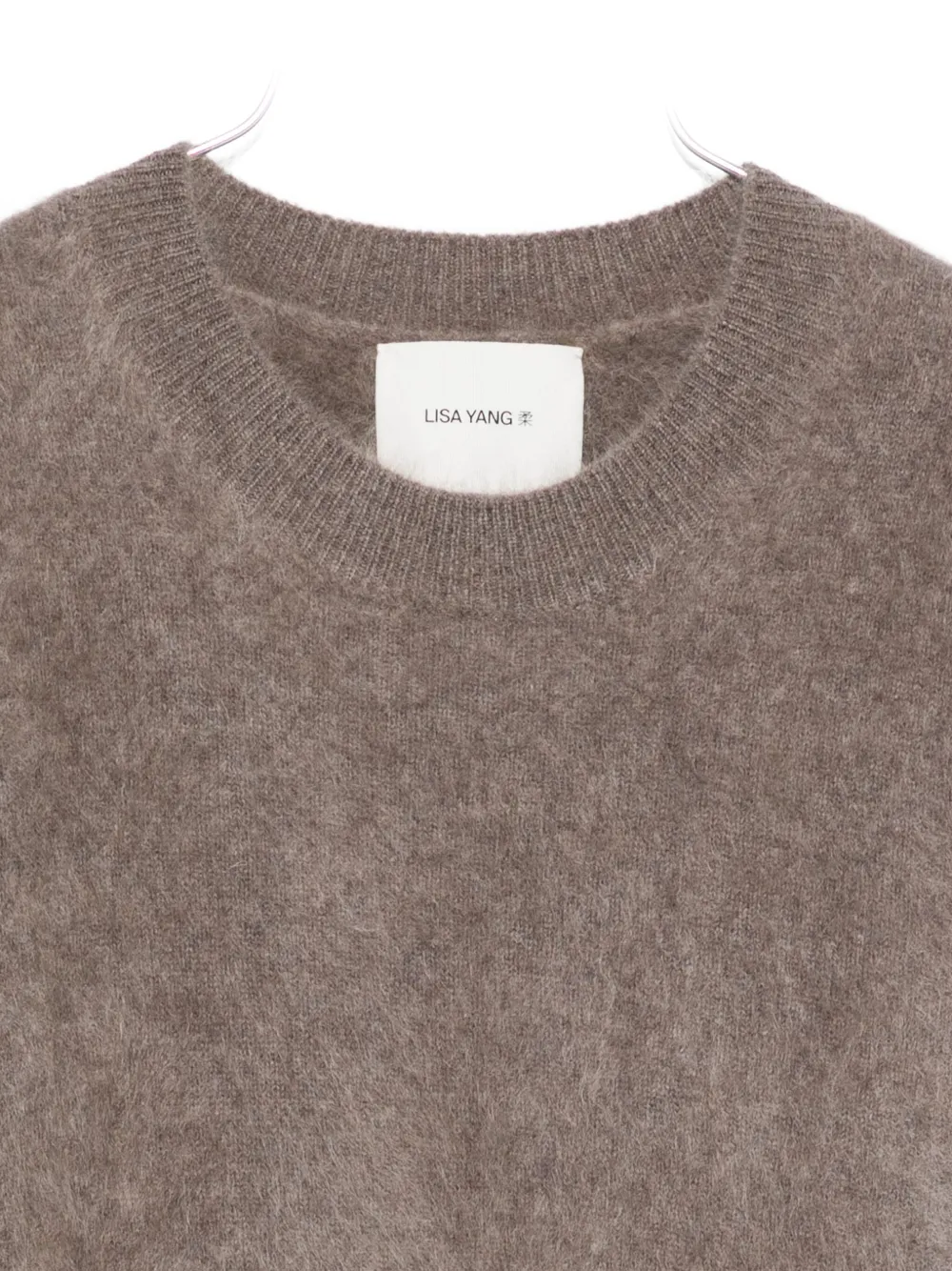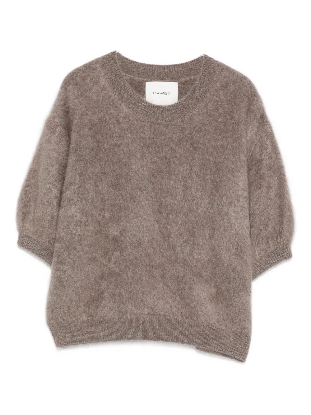 Pulover Lisa Yang Crew-Neck bej, din casmir, cu guler crewneck, maneci scurte, efect brushed si terminatii ribbed. Potrivit pentru sezonul toamna/iarna. 100% casmir.