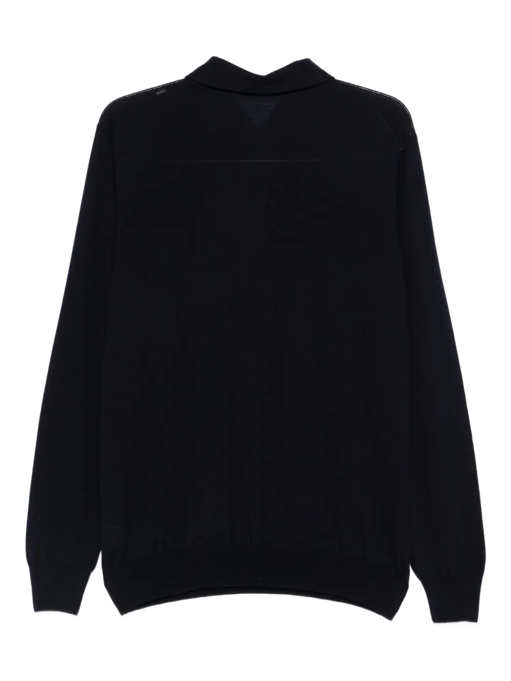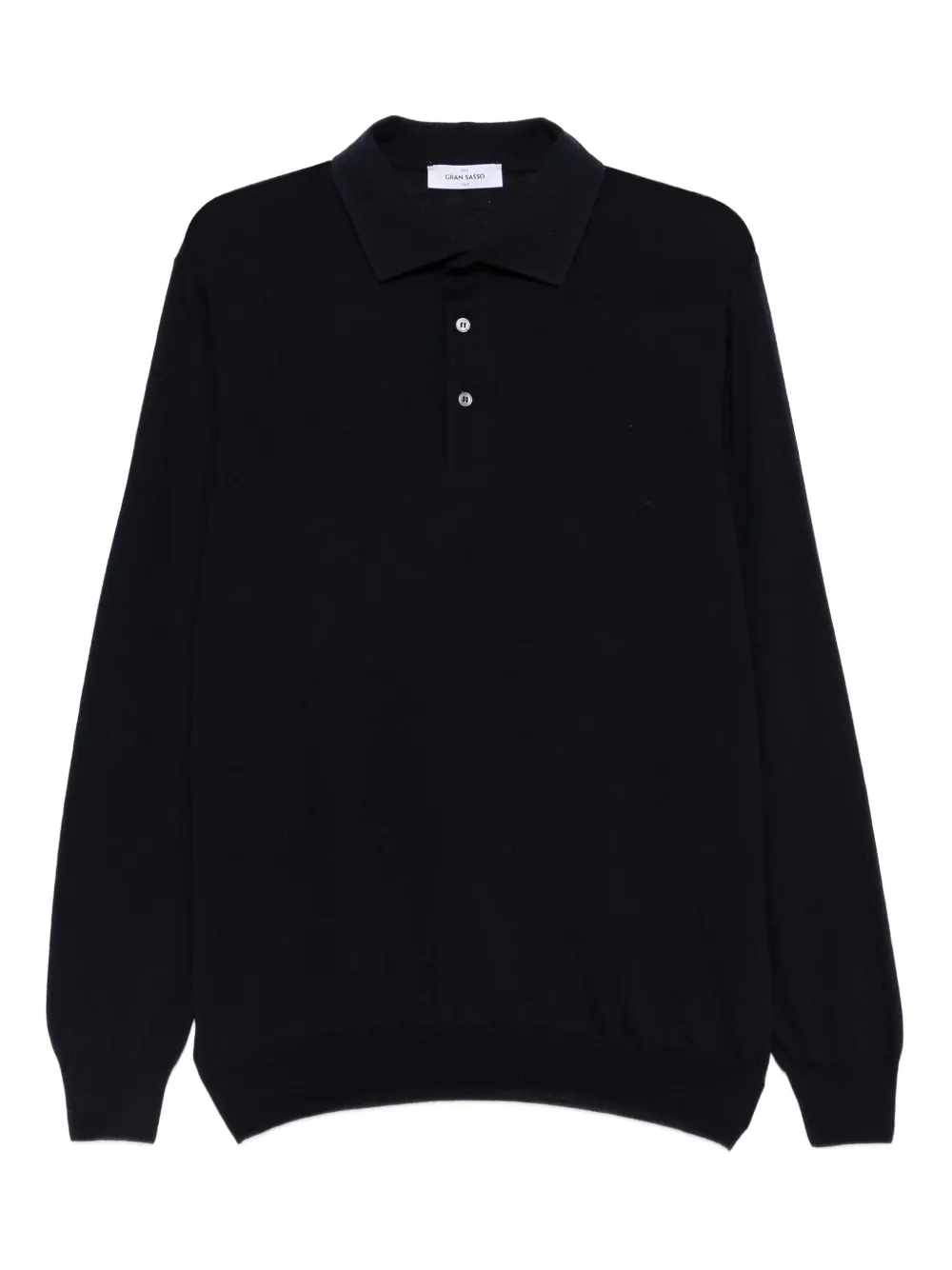 Pulover Polo Gran Sasso Virgin Wool bleumarin, din lana premium, cu guler polo, inchidere partiala cu nasturi, maneci lungi, mansete si tiv ribbed. Potrivit pentru sezonul toamna/iarna. 100% lana.