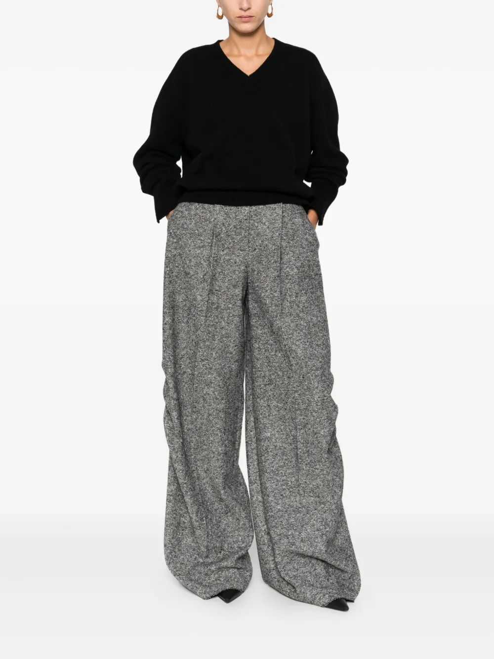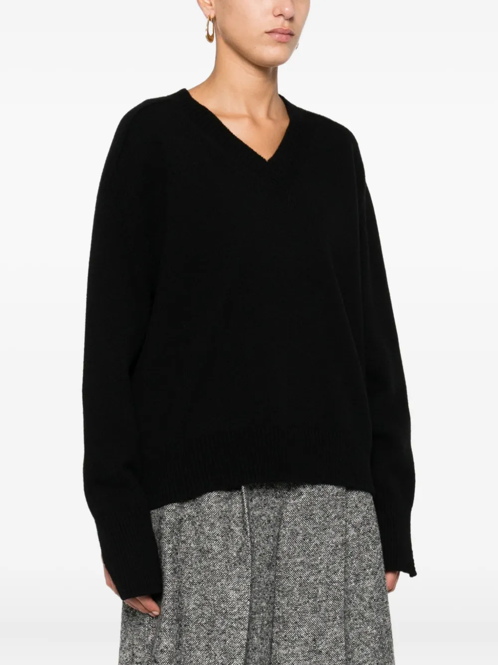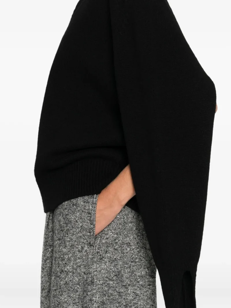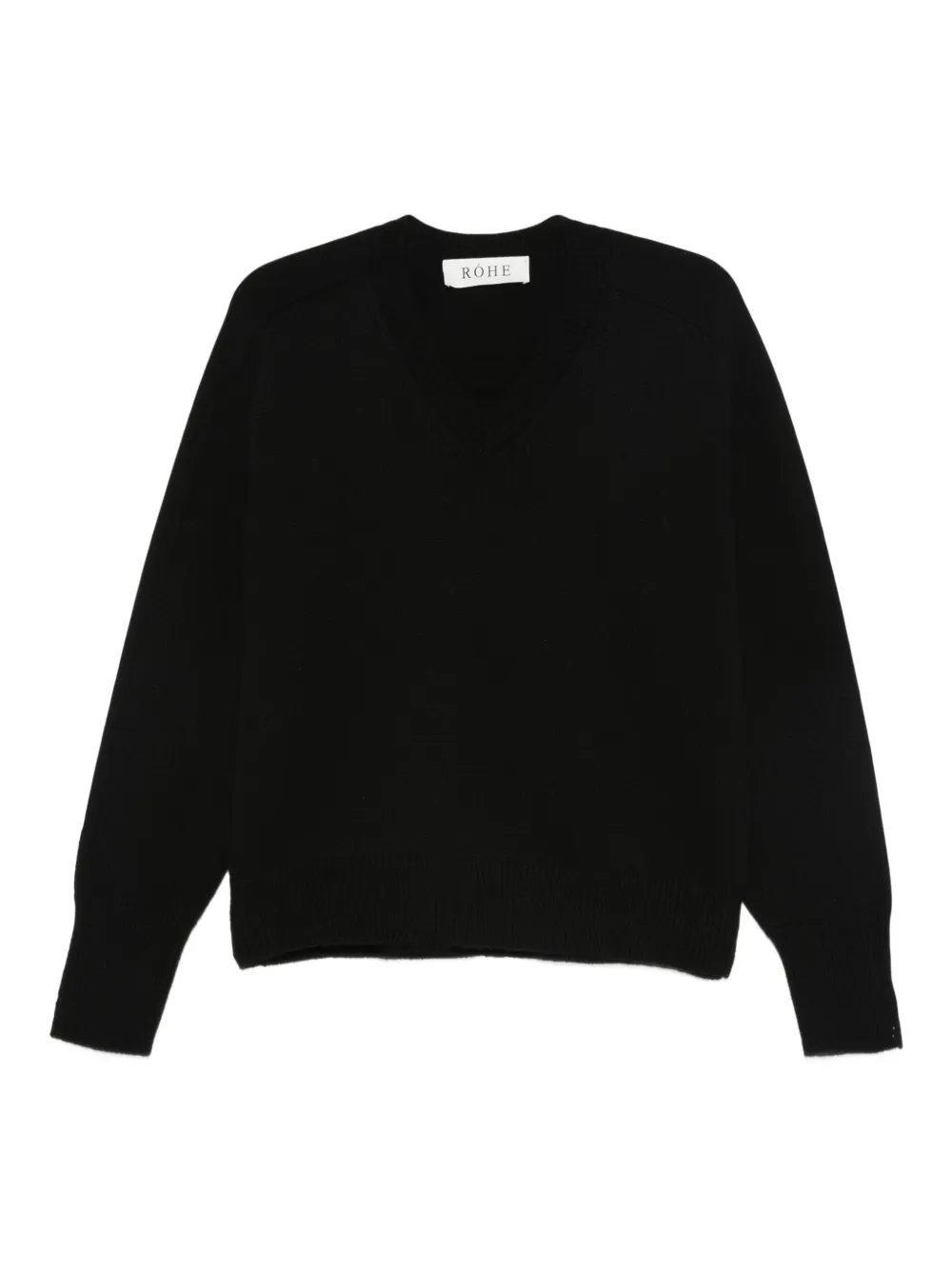 Pulover Rohe V-Neck negru, realizat din lana si casmir, cu decolteu in V, maneci lungi decupate si terminatii ribbed. Potrivit pentru sezonul toamna/iarna. 70% lana; 30% casmir.