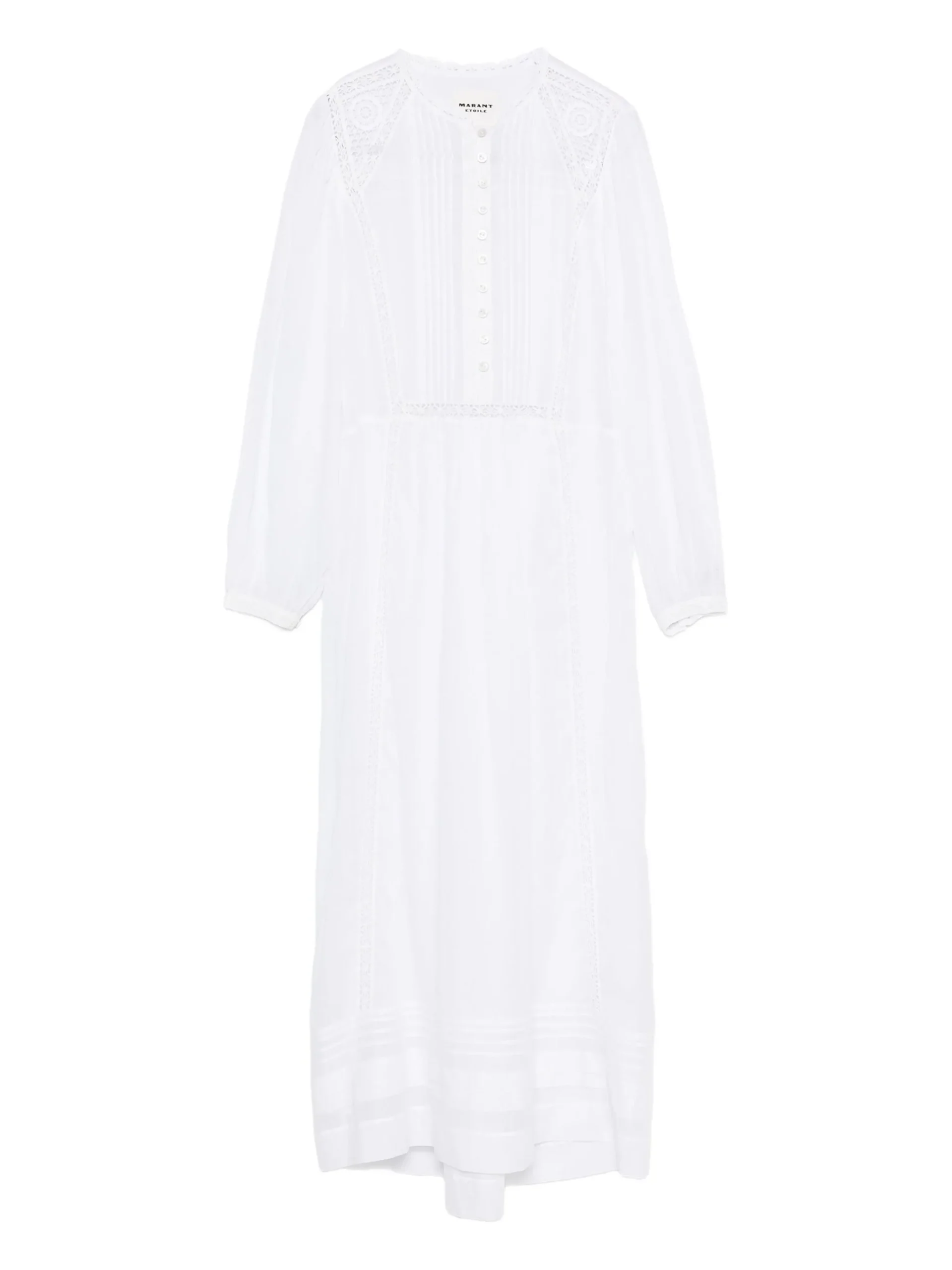 Rochie Marant Etoile long-sleeved alb, inchidere cu nasturi, maneci lungi, dantela aplicata, talie incretita. 100% bumbac