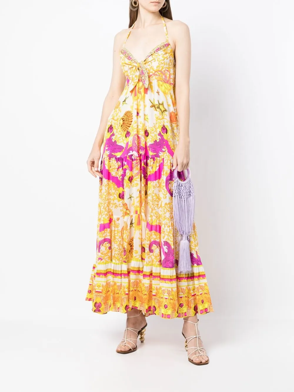 Rochie maxi Camilla Graphic-Print Halterneck multicolor
