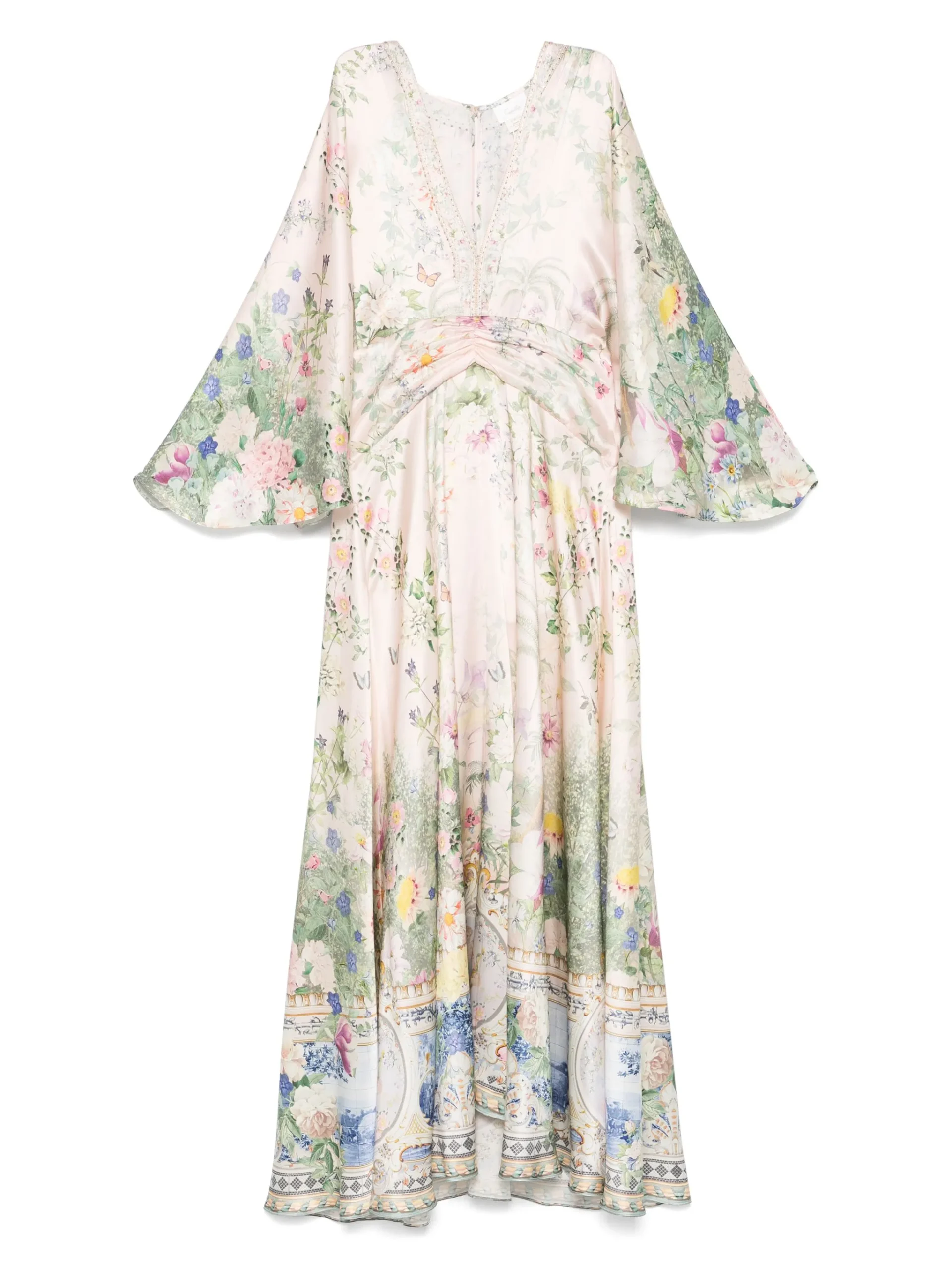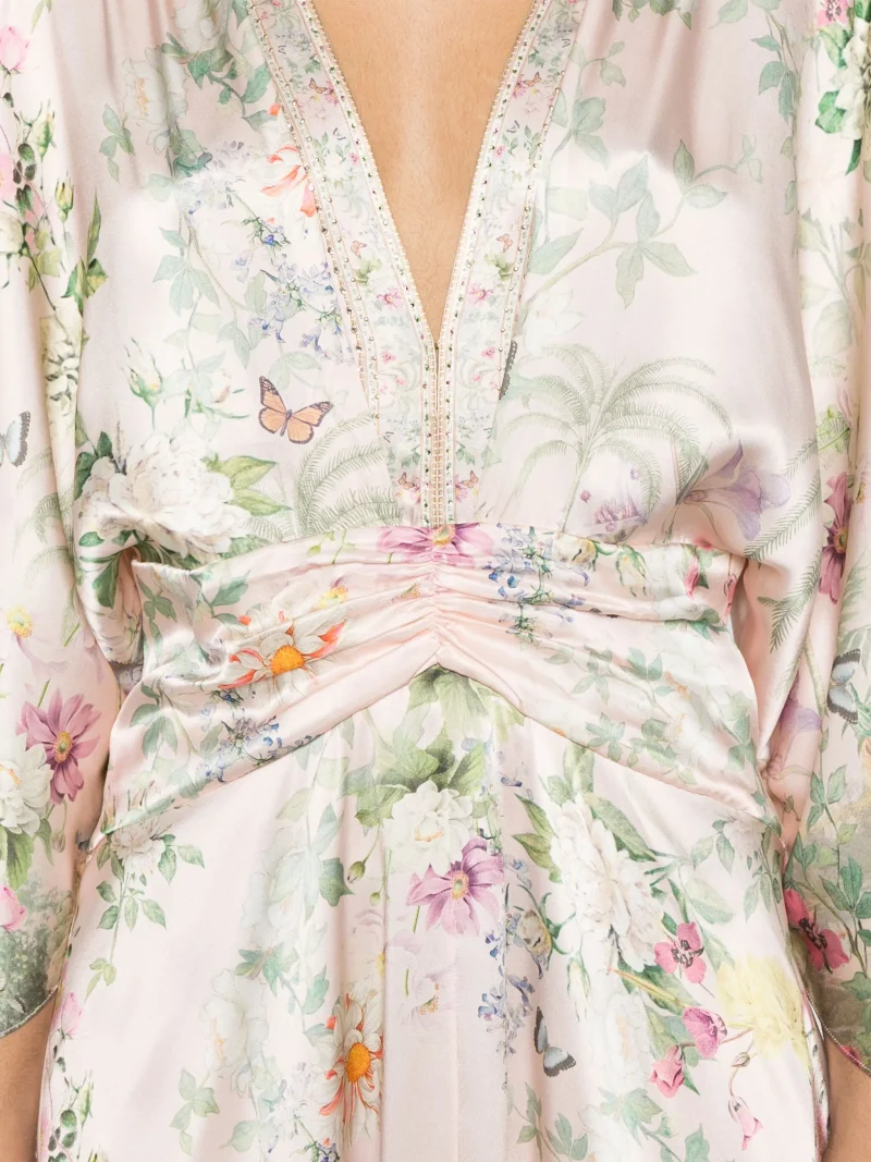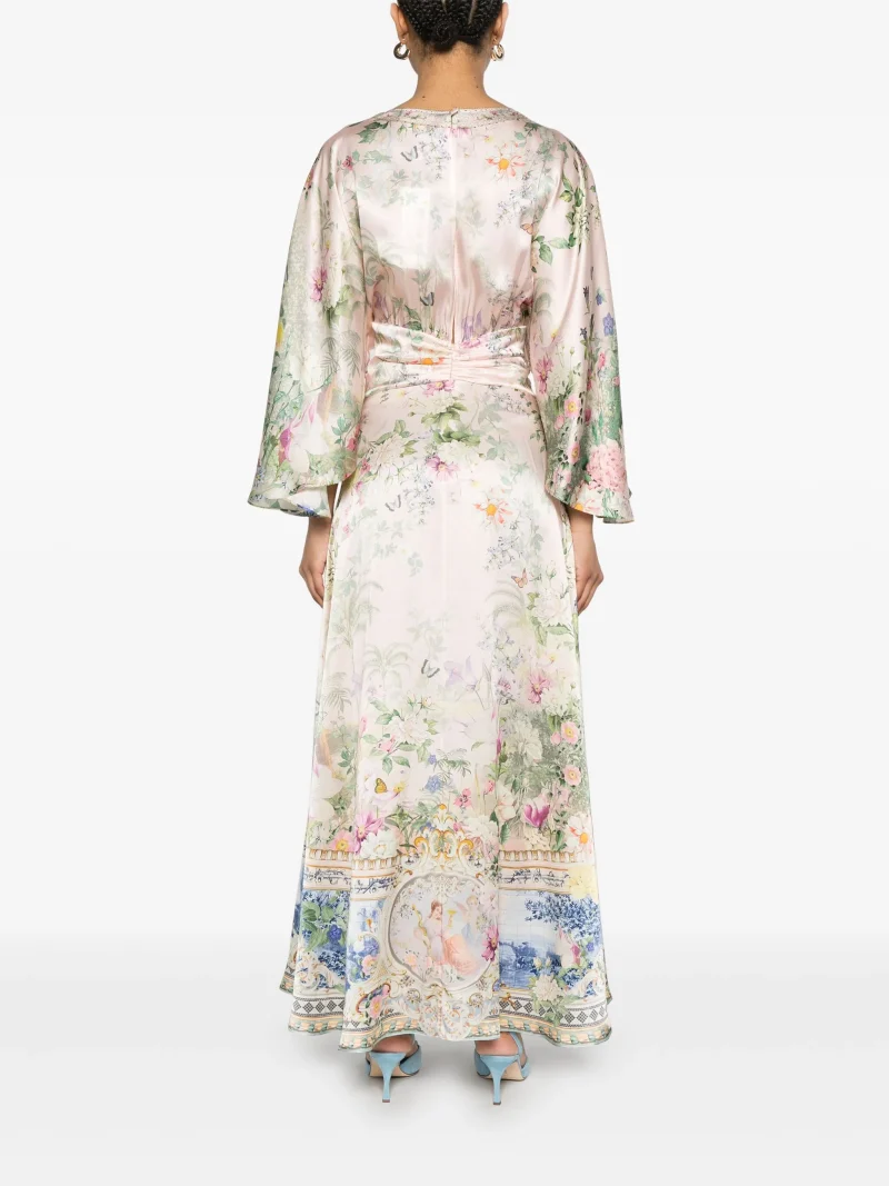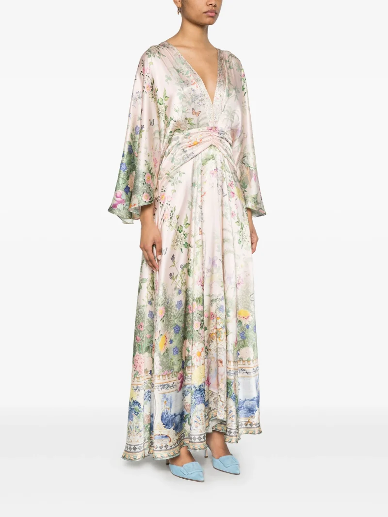 Rochie maxi Camilla Palacio Playground multicolor, decolteu in V, maneci lungi, inchidere cu fermoar la spate. Potrivita pentru sezonul primavara/vara.100% matase