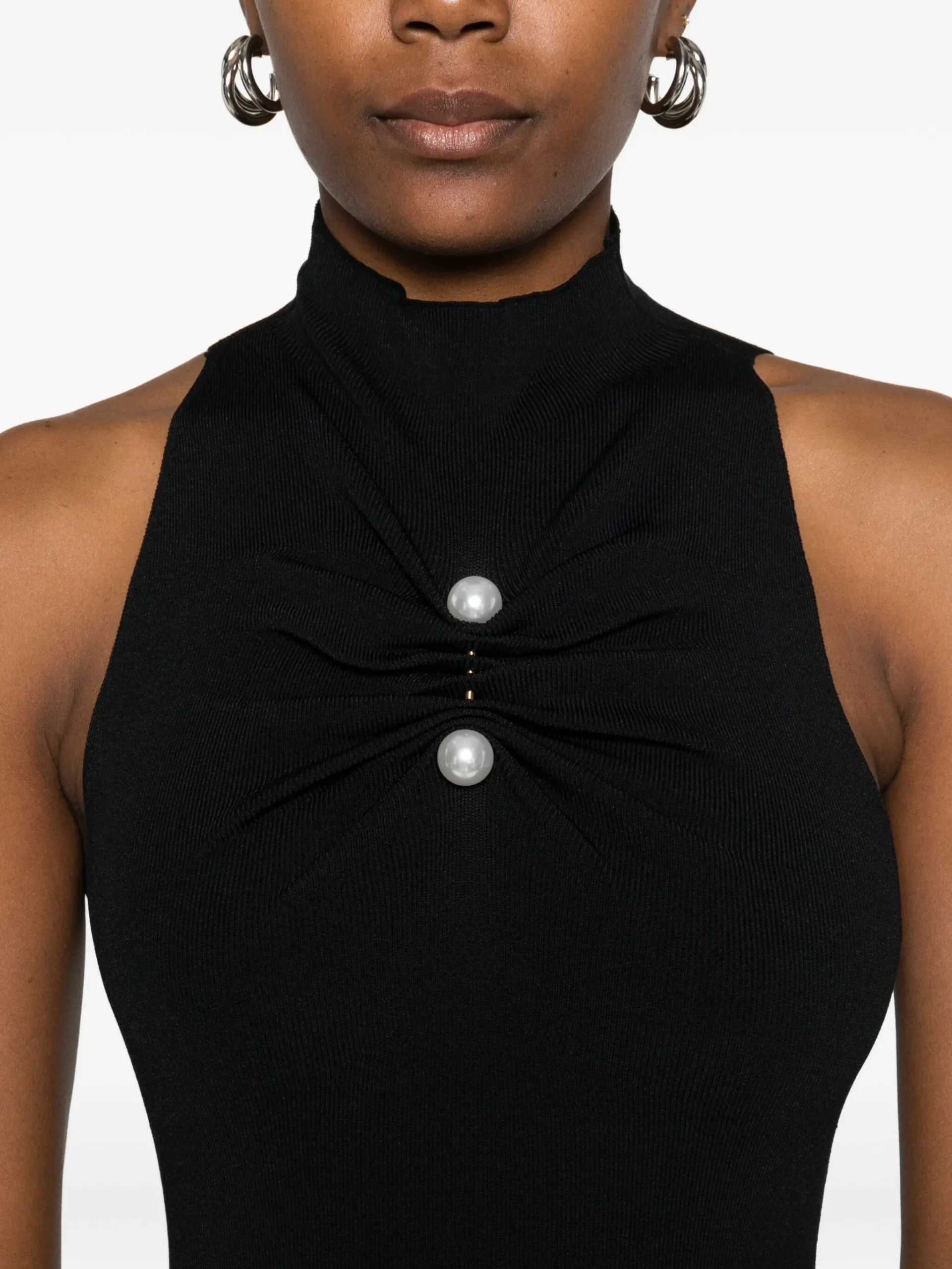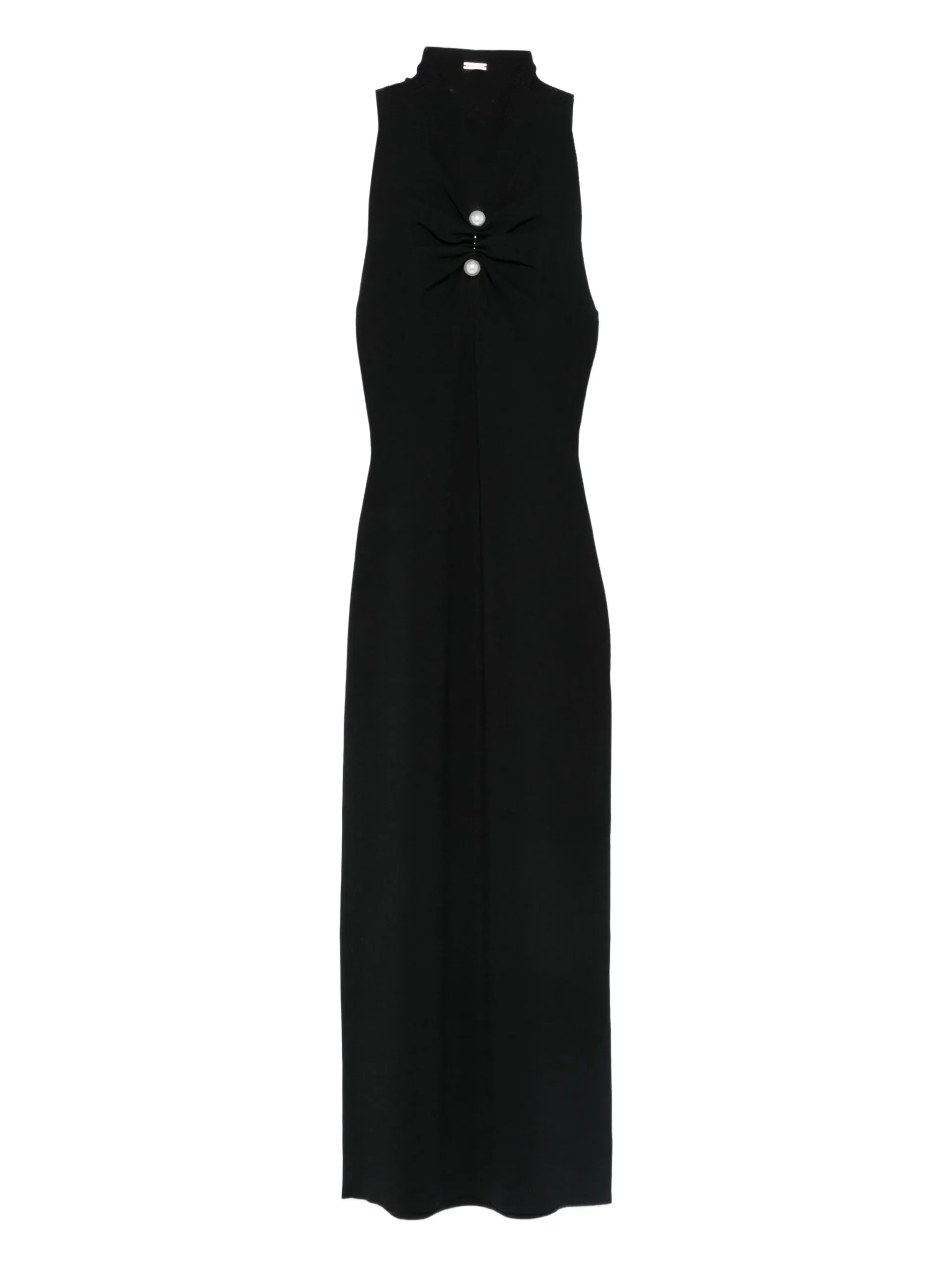 Rochie maxi Cult Gaia Collin negru, cu guler inalt, aplicatii cu perle, fara maneci, inchidere ascunsa cu fermoar si deschidere la spate. 65% vascoza 35% nylon