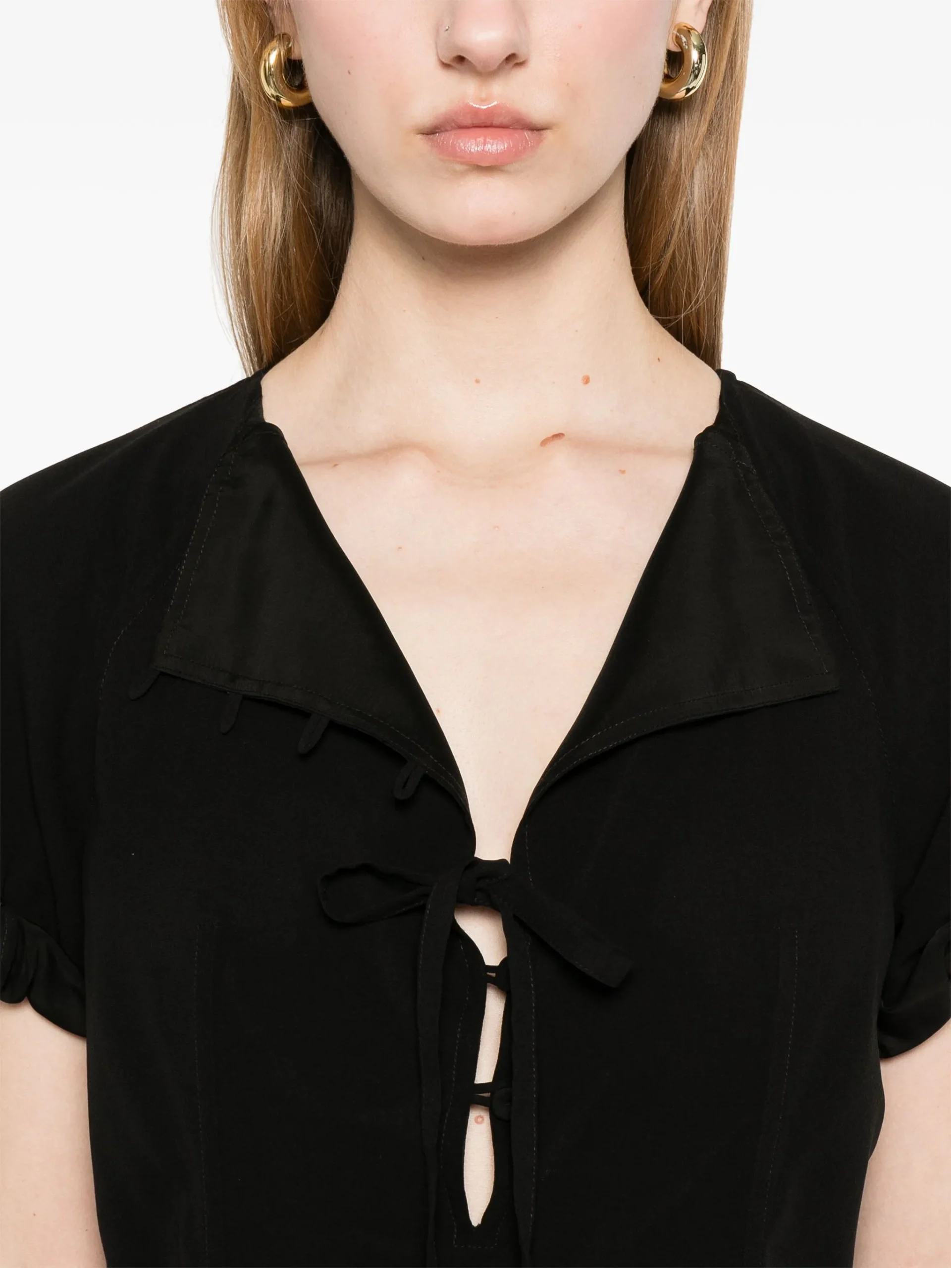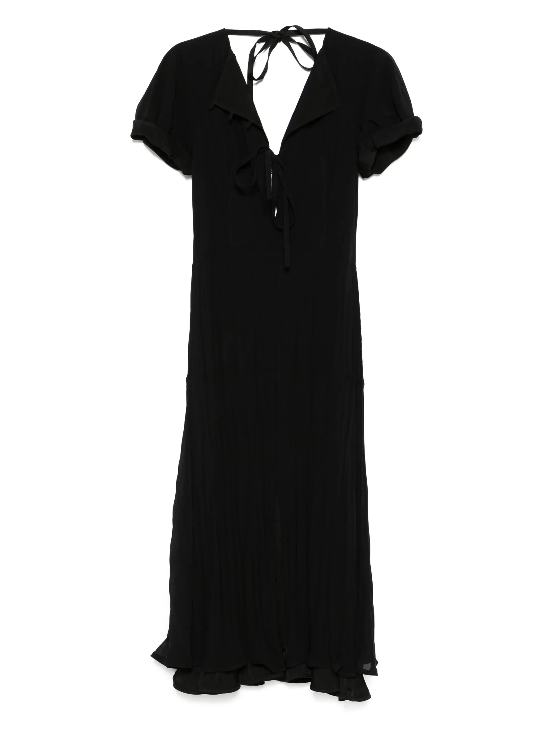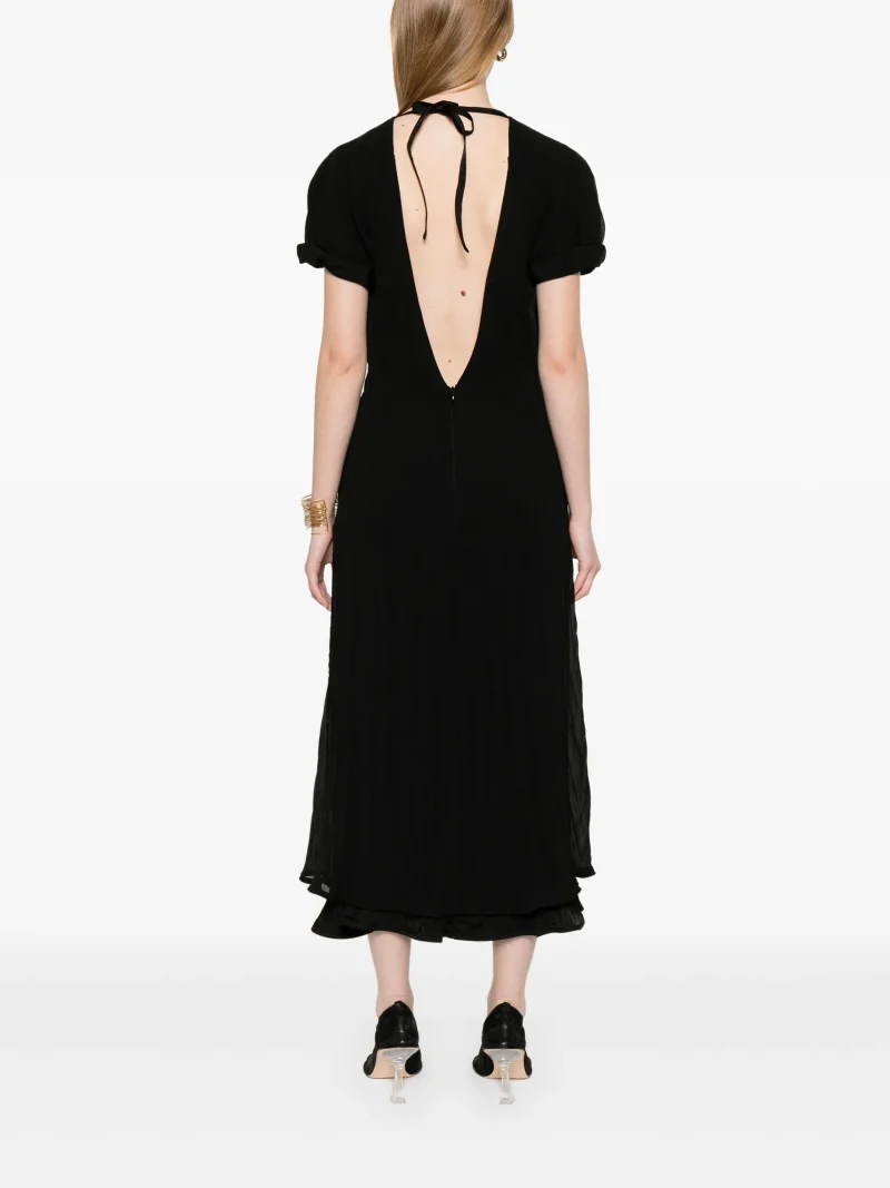 Rochie maxi Jil Sander Layered negru, cu inchidere ascunsa cu fermoar la spate, prindere cu snur la spate, inchidere frontala cu nasturi si decupaj adanc la spate. 100% matase