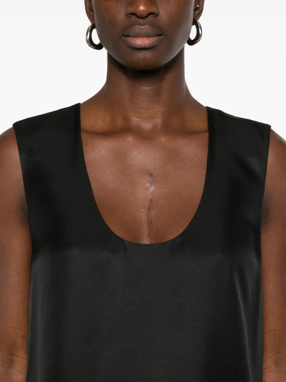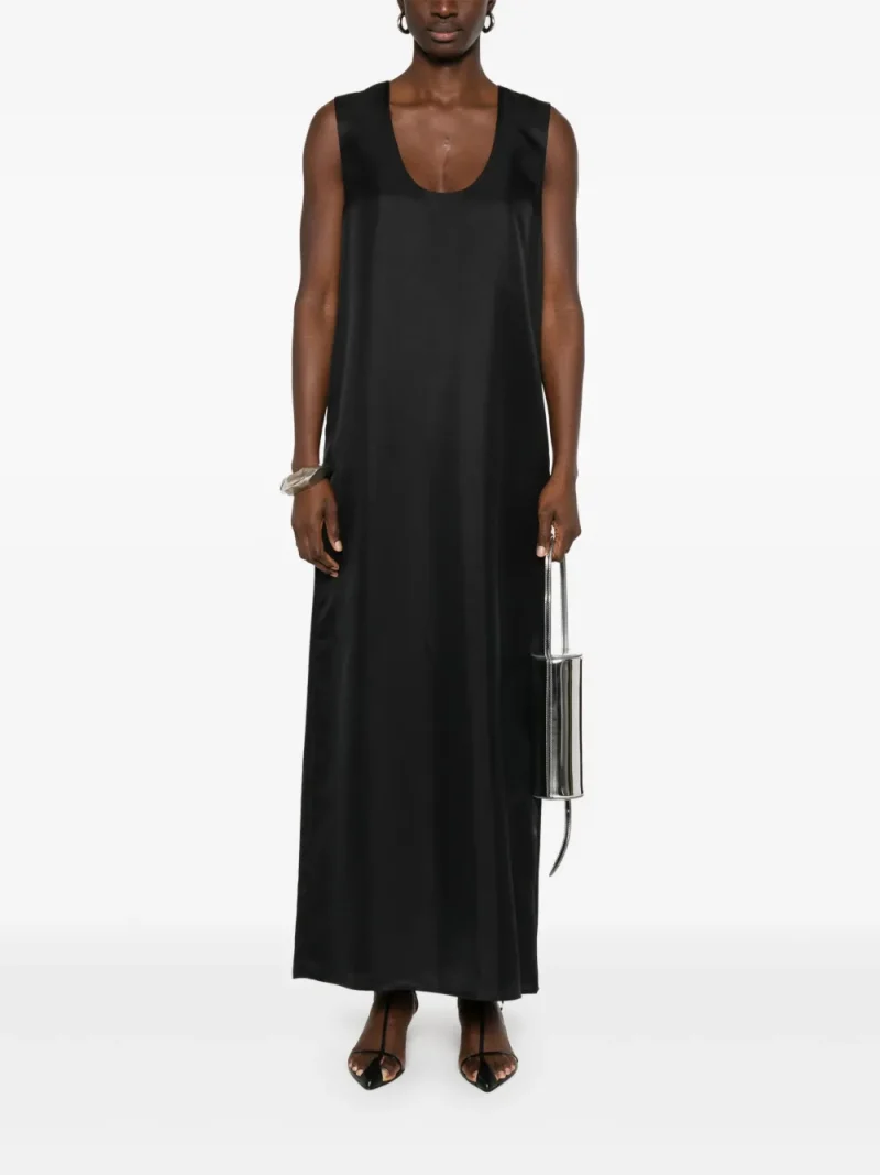 Rochie maxi Róhe Scoop-Neck Silk, din matase, cu barete late pentru umeri, decolteu, inchidere cu fermoar la spate, slit la spate si tiv drept. Potrivita pentru sezonul primavara/vara. 100% matase.