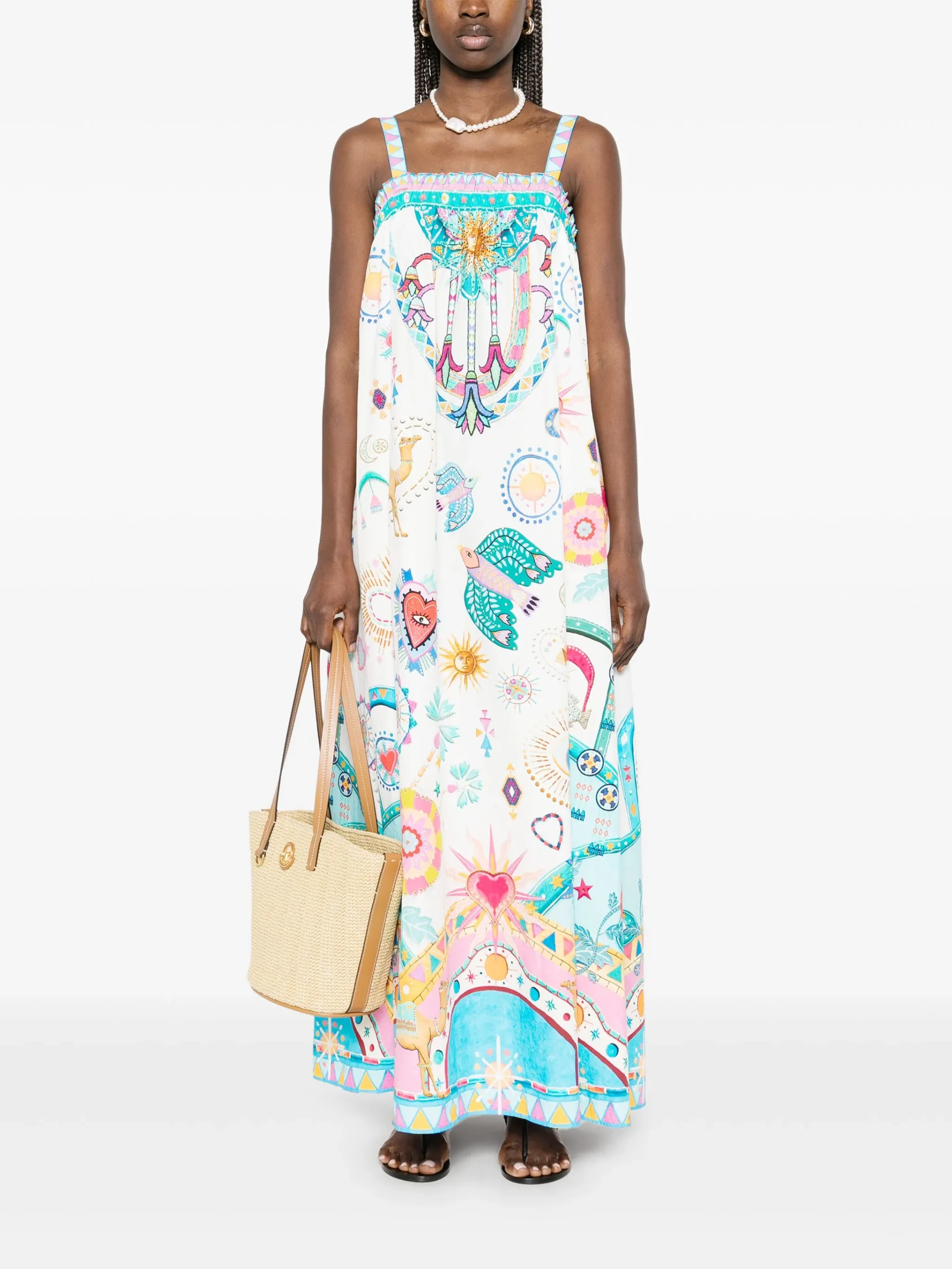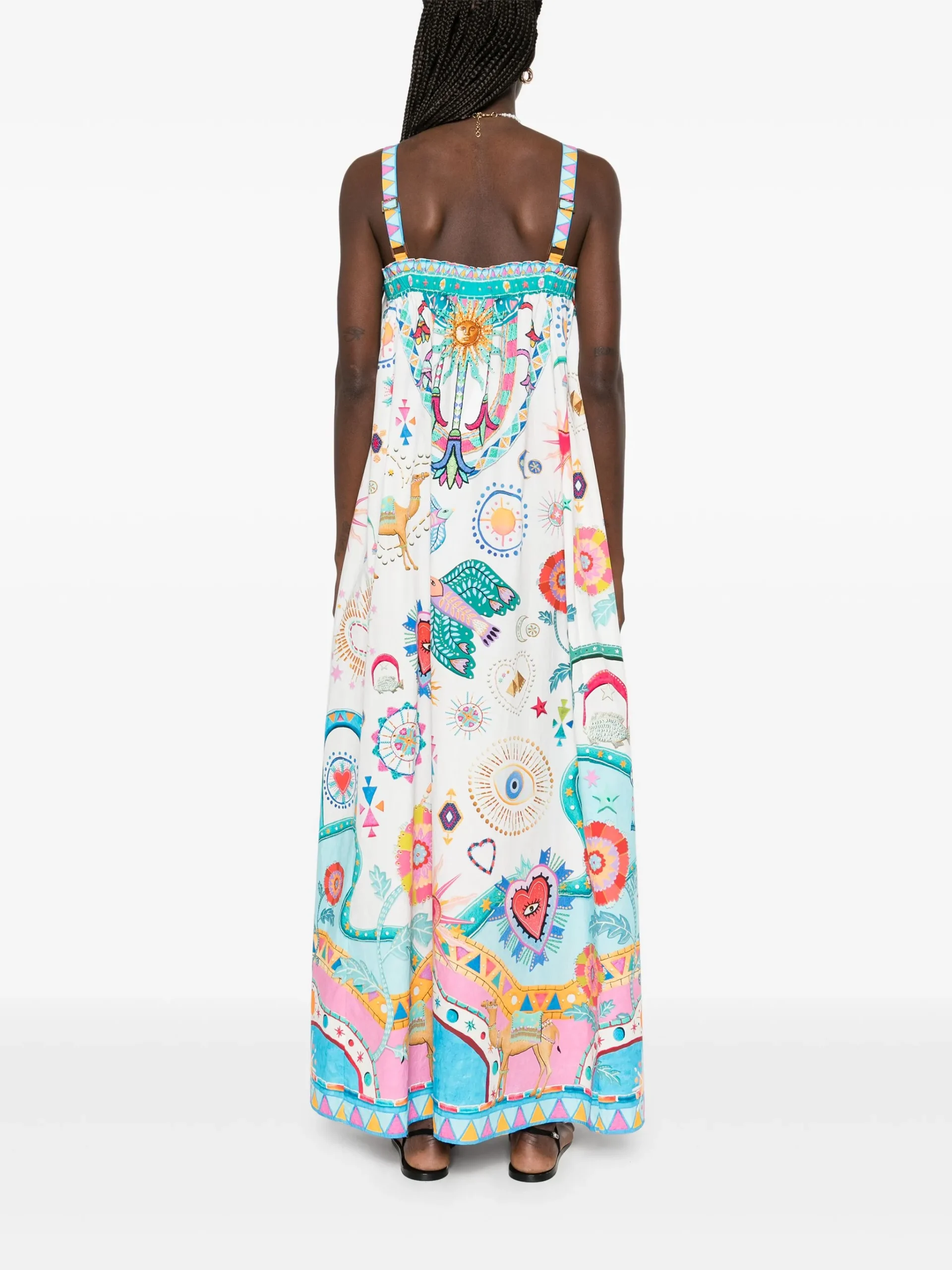 Rochie maxi wide-strap Camilla multicolor, bretele reglabile, buzunare laterale, detaliu ciufulit. Potrivita pentru sezonul primavara/vara.100% bumbac