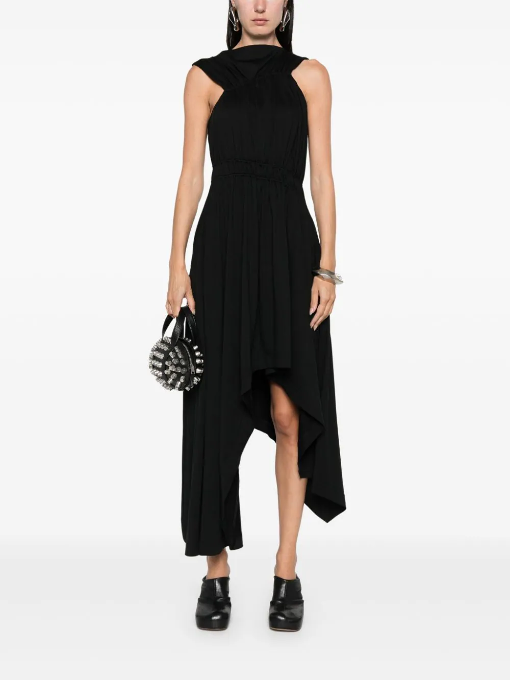 Rochie midi Alexander McQueen Asymmetric Gathered negru