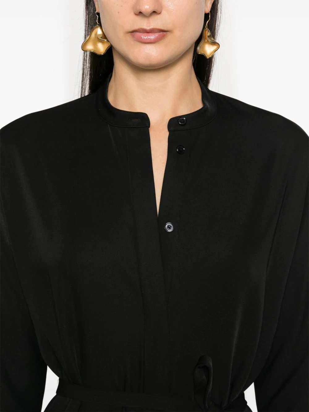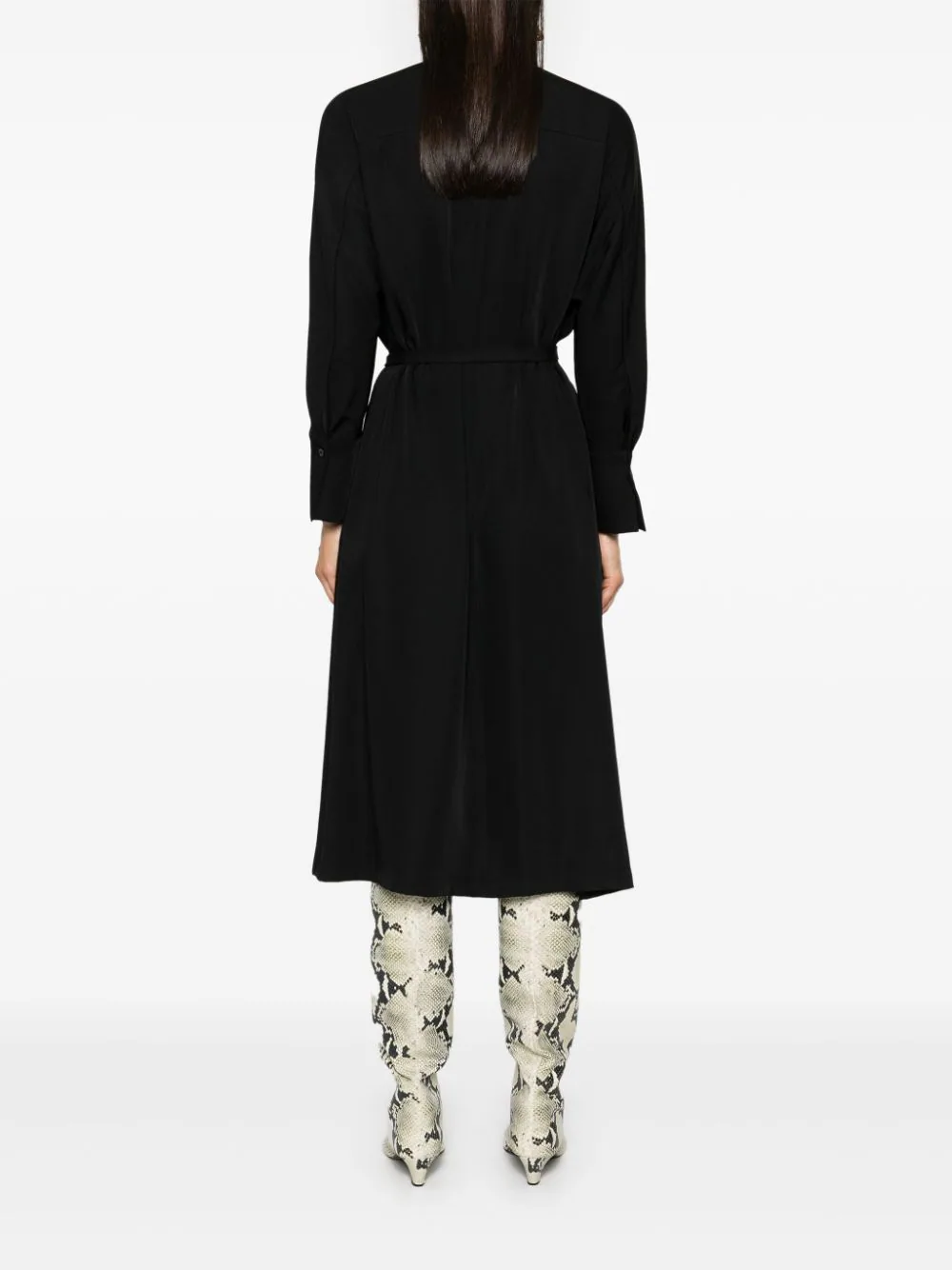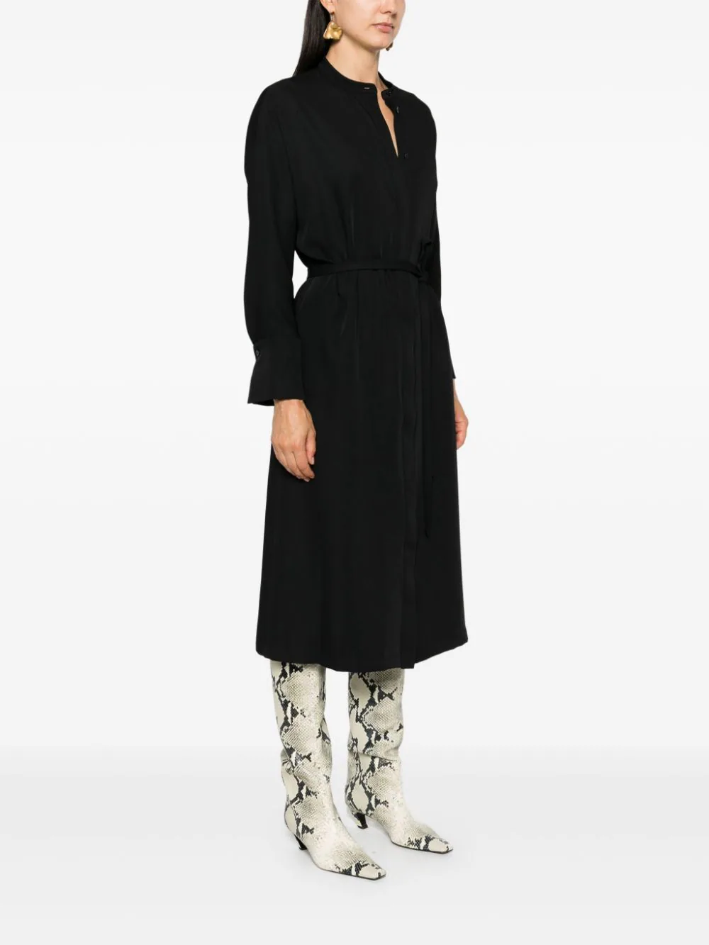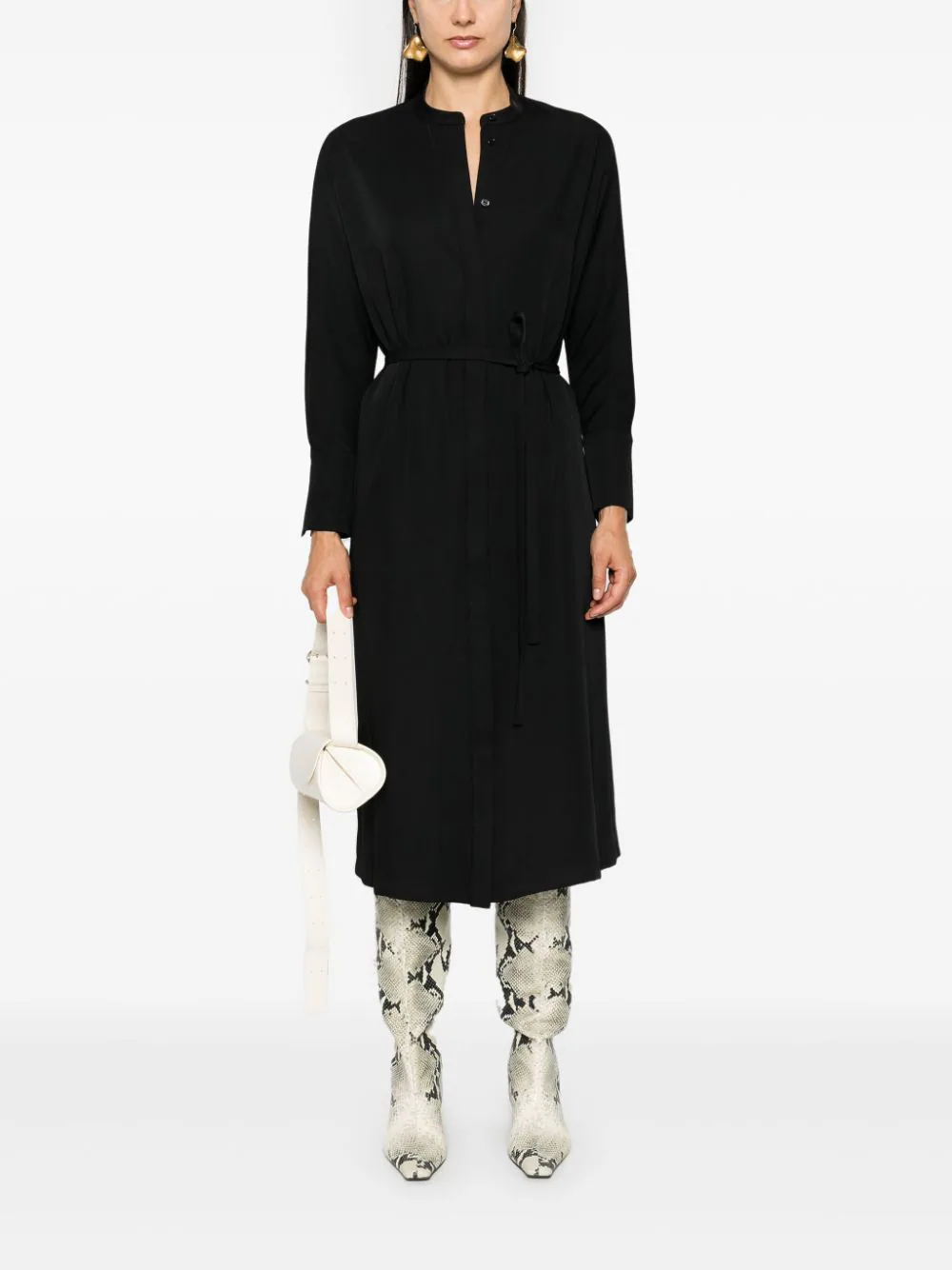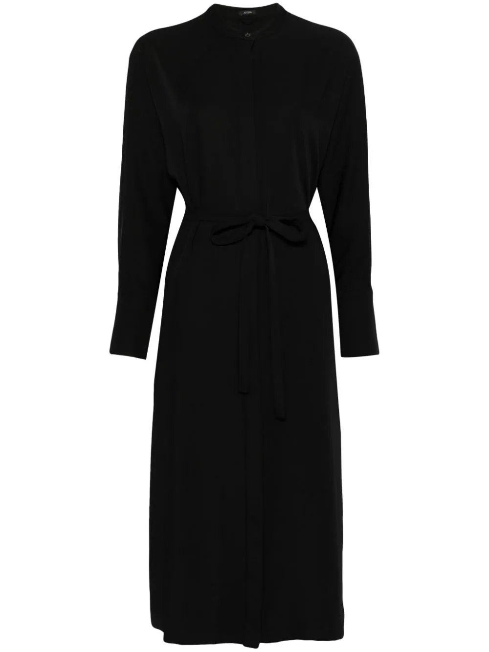 Rochie midi JOSEPH Dada negru, din poliester, cu guler rotund, inchidere cu nasturi ascunsi, maneci lungi, mansete cu nasturi, cordon textil si detasabil in jurul taliei, buzunare laterale, dungi in tesatura si tiv drept. Potrivita pentru sezonul toamna/iarna. 100% poliester.