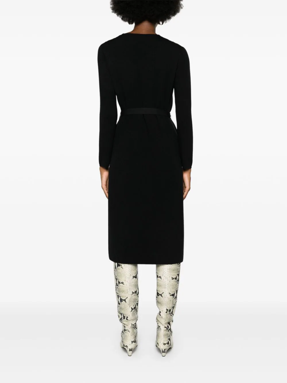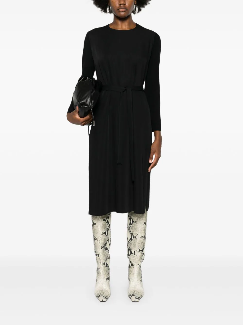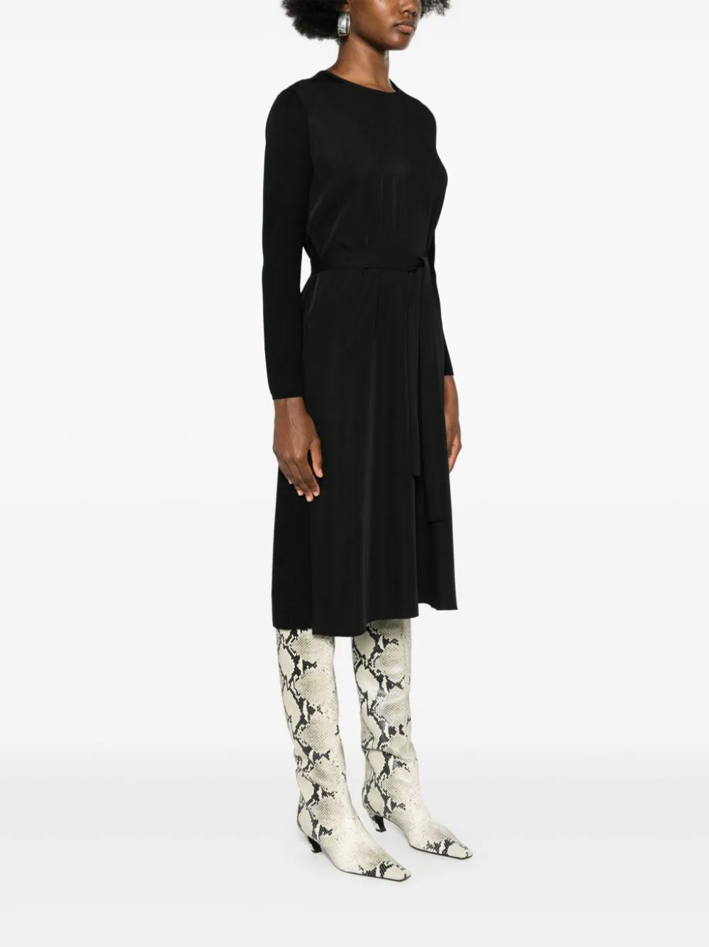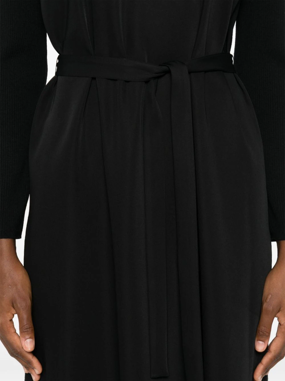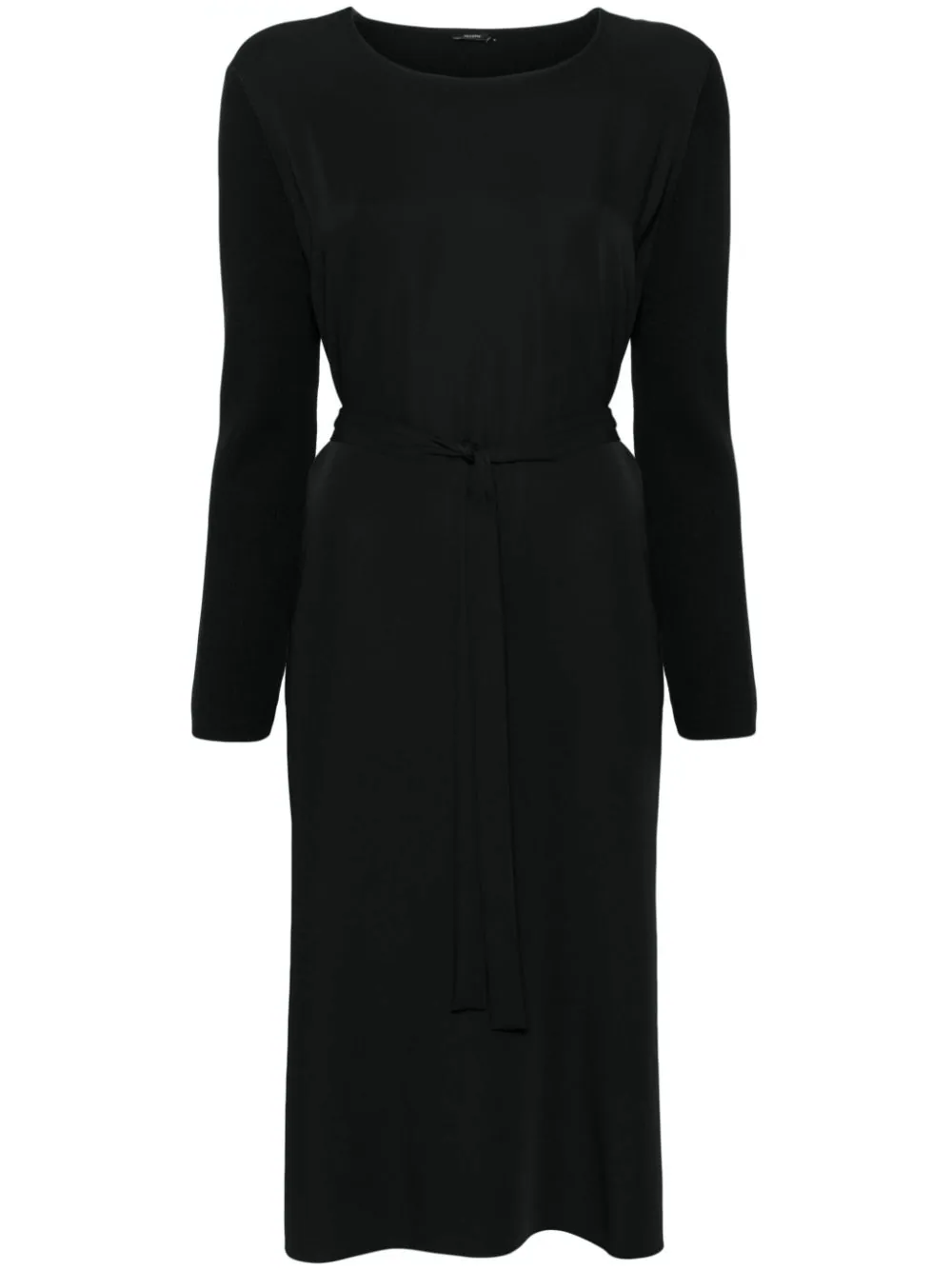 Rochie midi JOSEPH Didot negru, din mix de materiale, cu guler rotund, maneci lungi, cordon textil in jurul taliei, tesatura ribbed cu textura cady si tiv drept. Potrivita pentru sezonul toamna/iarna. 100% lana merino; 100% poliester.