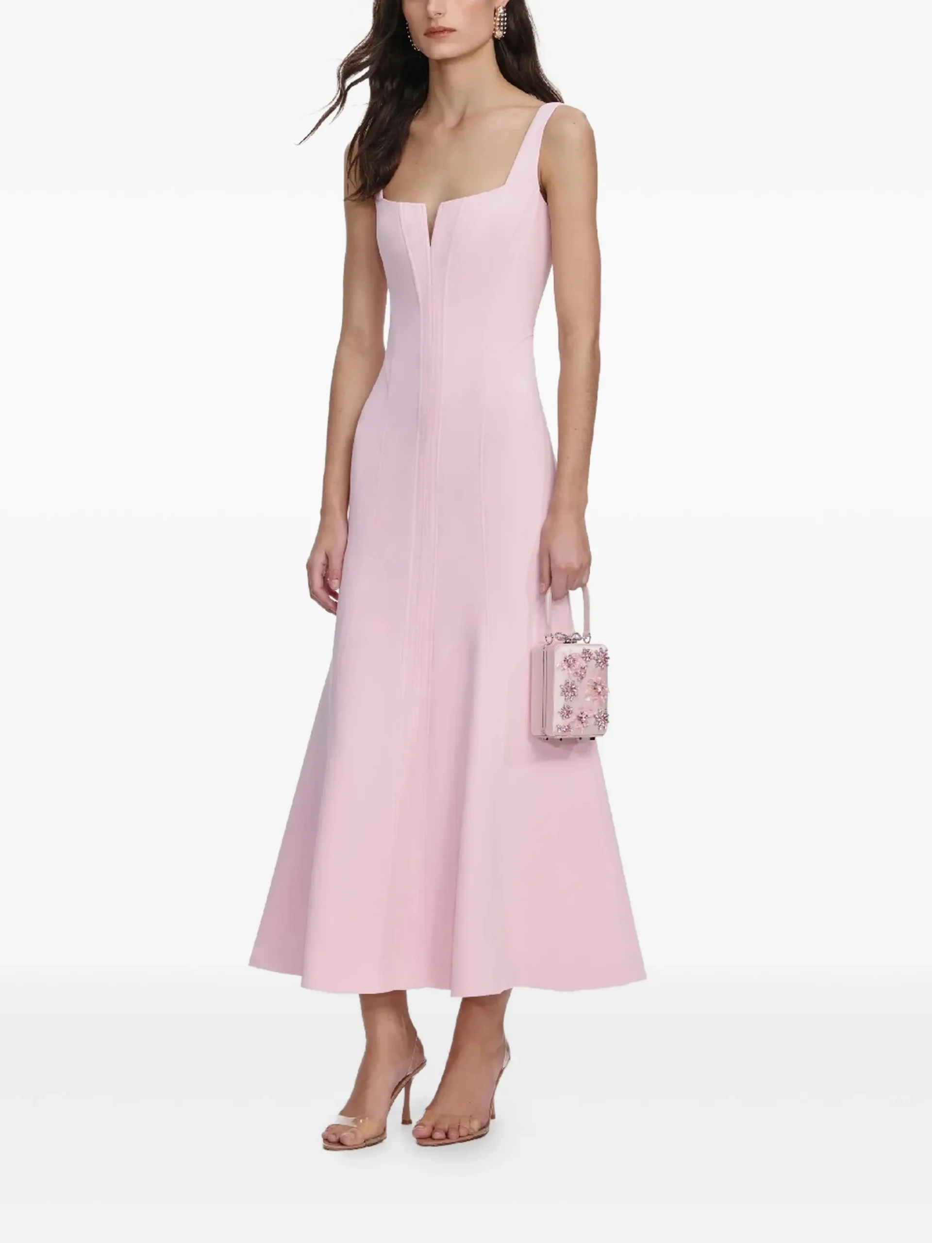 Rochie midi Self-Portrait square-neck roz, cu decolteu patrat in V, bretele late, inchidere ascunsa cu fermoar la spate si fusta tip sirena.100% poliester